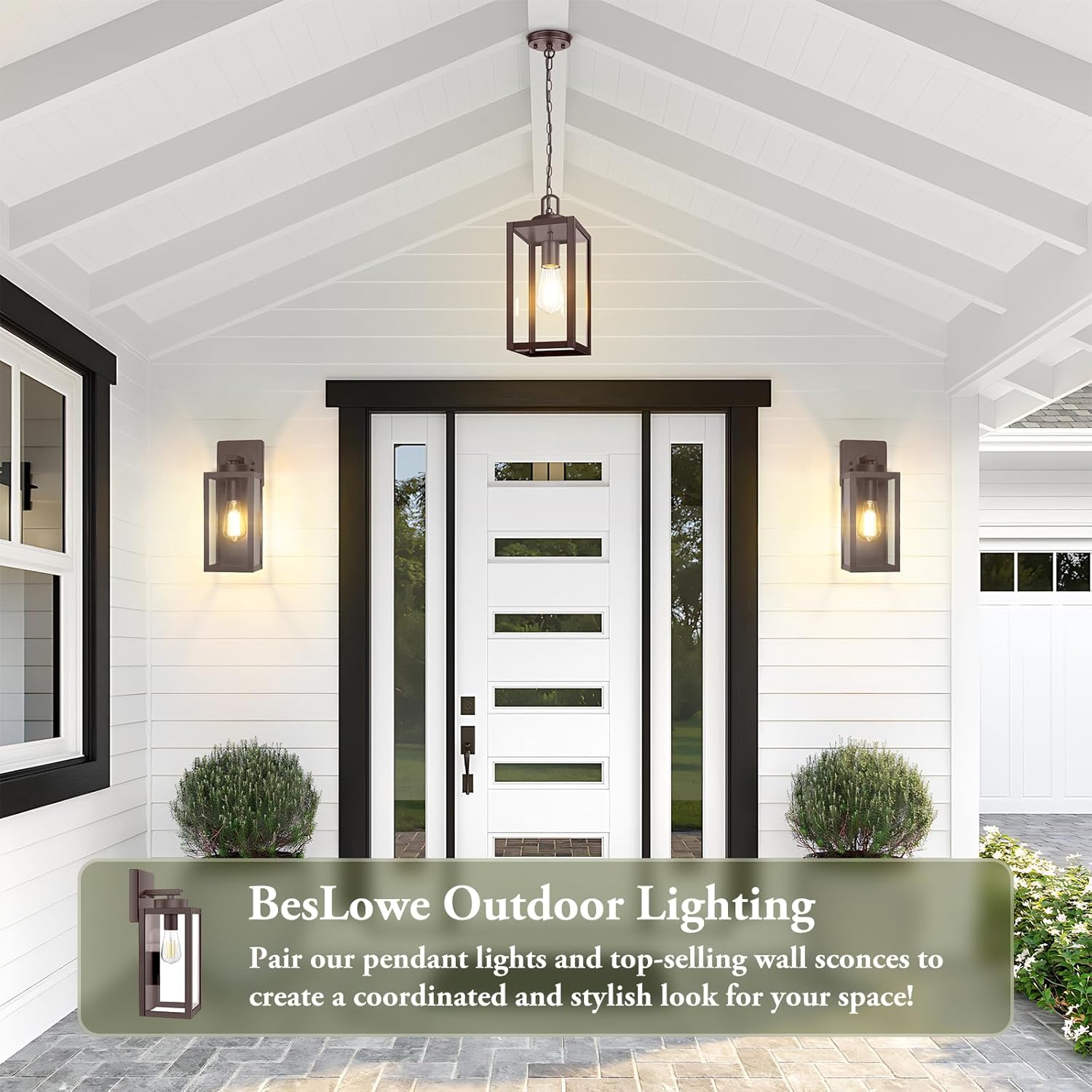 Outdoor Lighting: is a brand dedicated to exterior lighting fixtures. This outdoor pendant light fixture is paired with our top-selling outdoor wall sconces, creating a cohesive and stylish outdoor lighting scheme. Ideal for porches, entryways, or gardens, this combination delivers a harmonious and modern look that enhances your home’s curb appeal