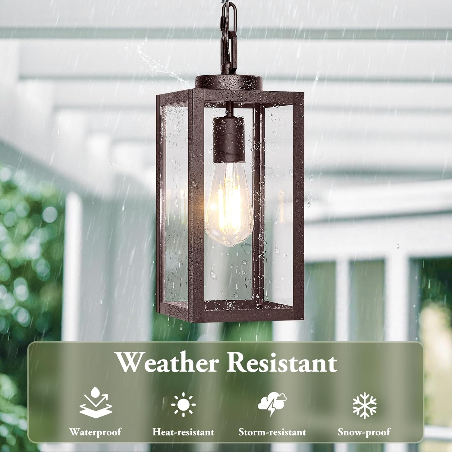 All-Weather Outdoor Chandelier: Crafted from premium metal and durable glass, this hanging porch light is designed to brave the elements. Its rustproof and corrosion-resistant construction ensures long-lasting performance, making it a dependable and stylish choice for year-round outdoor use—rain or shine