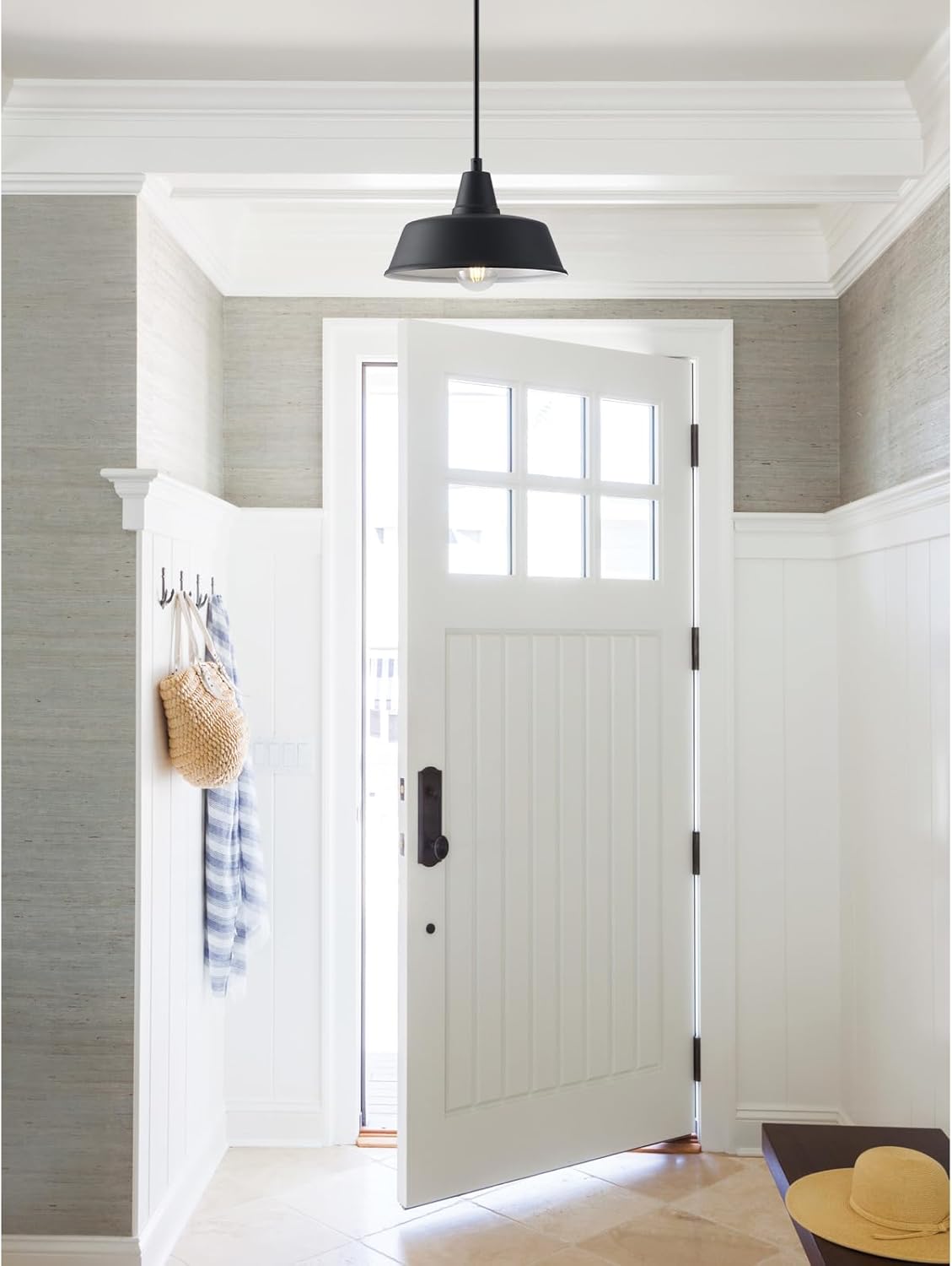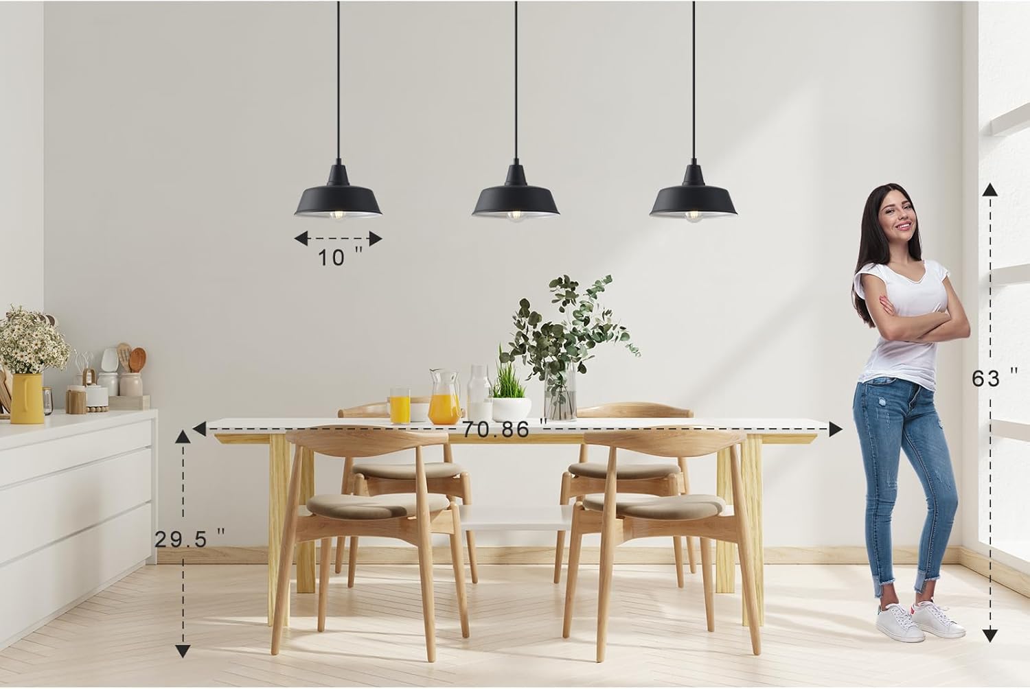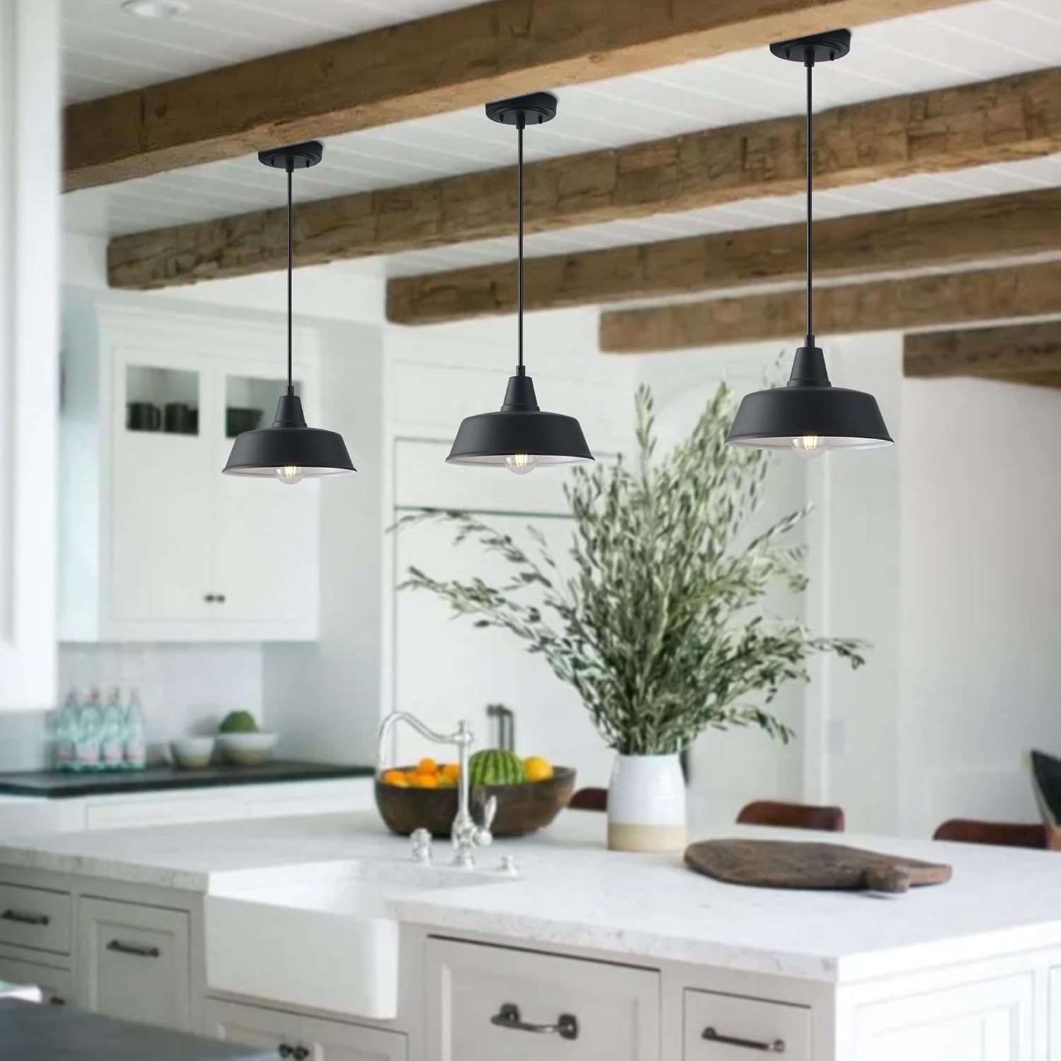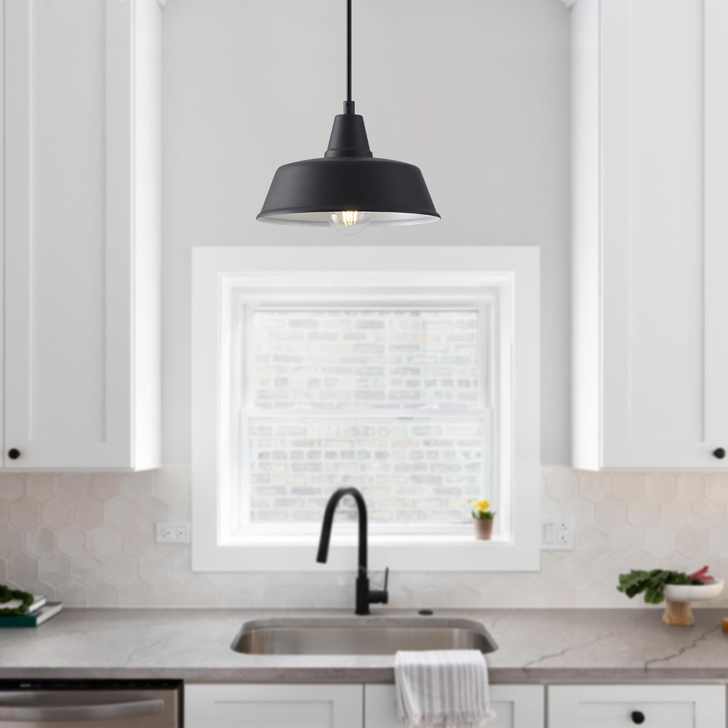 Requires an E26/Medium Base Bulb, NOTE: bulb NOT included: This barn-style hanging light fixture is compatible with incandescent, CFL, or LED bulb, max 60 watt, 120 Volt. Hard Wired, Easy to Install: The island pendant light is hard-wired and come with all needed mounting hardware for quick and easy installation in a few min.