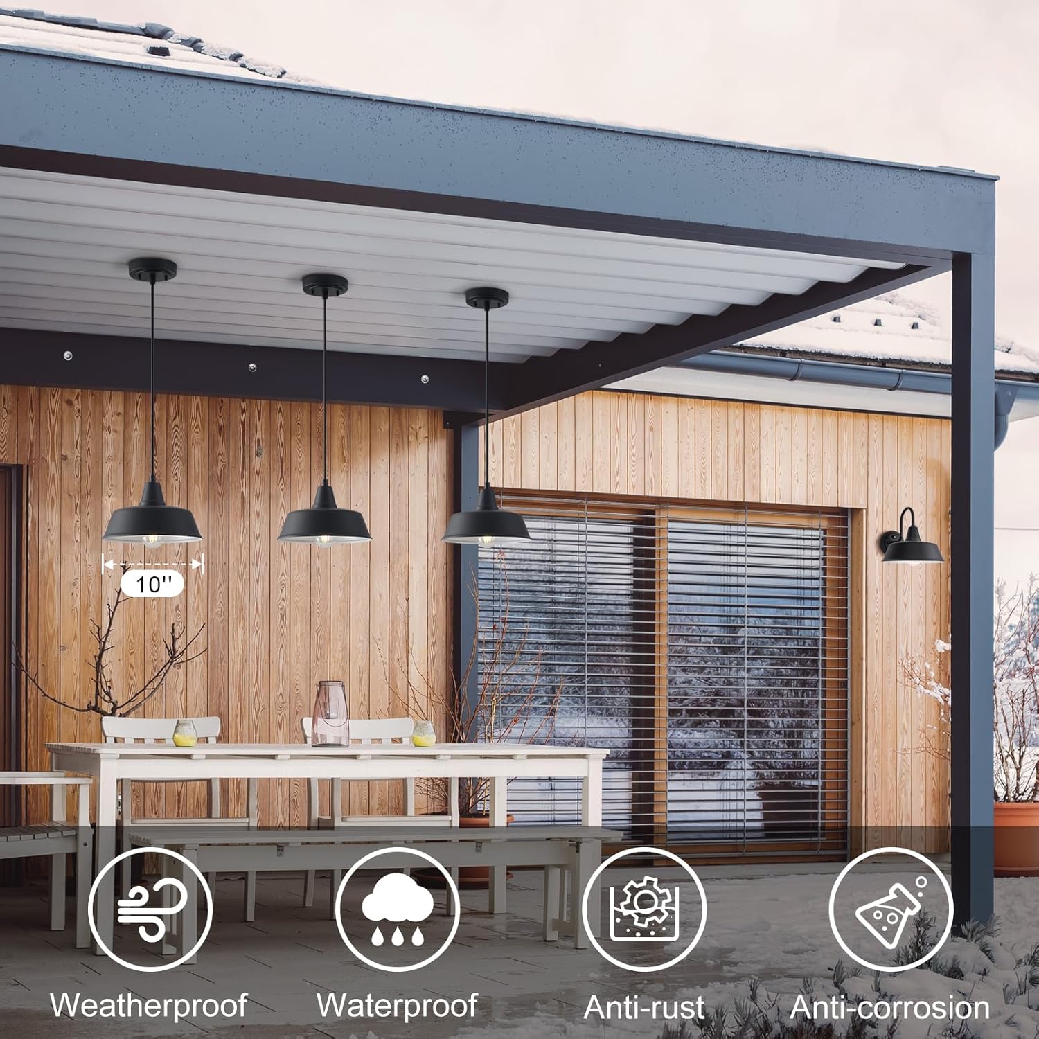 Outdoor Locations and Indoor Applicaitions Use: Featuring a water-resistant coating, resulting in anti-corrosion, and anti-rust. This industrial pendant light is perfect for the kitchen island, dining room, living room, cafe shop, bar, restaurant, porch, barn, warehouse, storage room, and other indoor/outdoor areas.