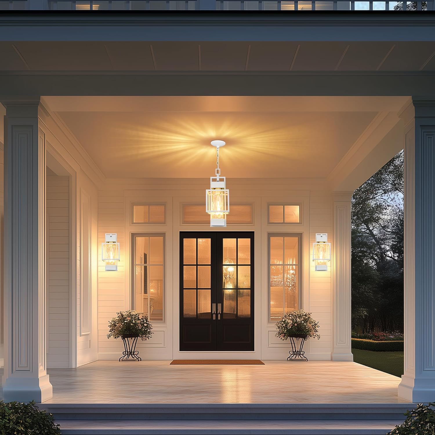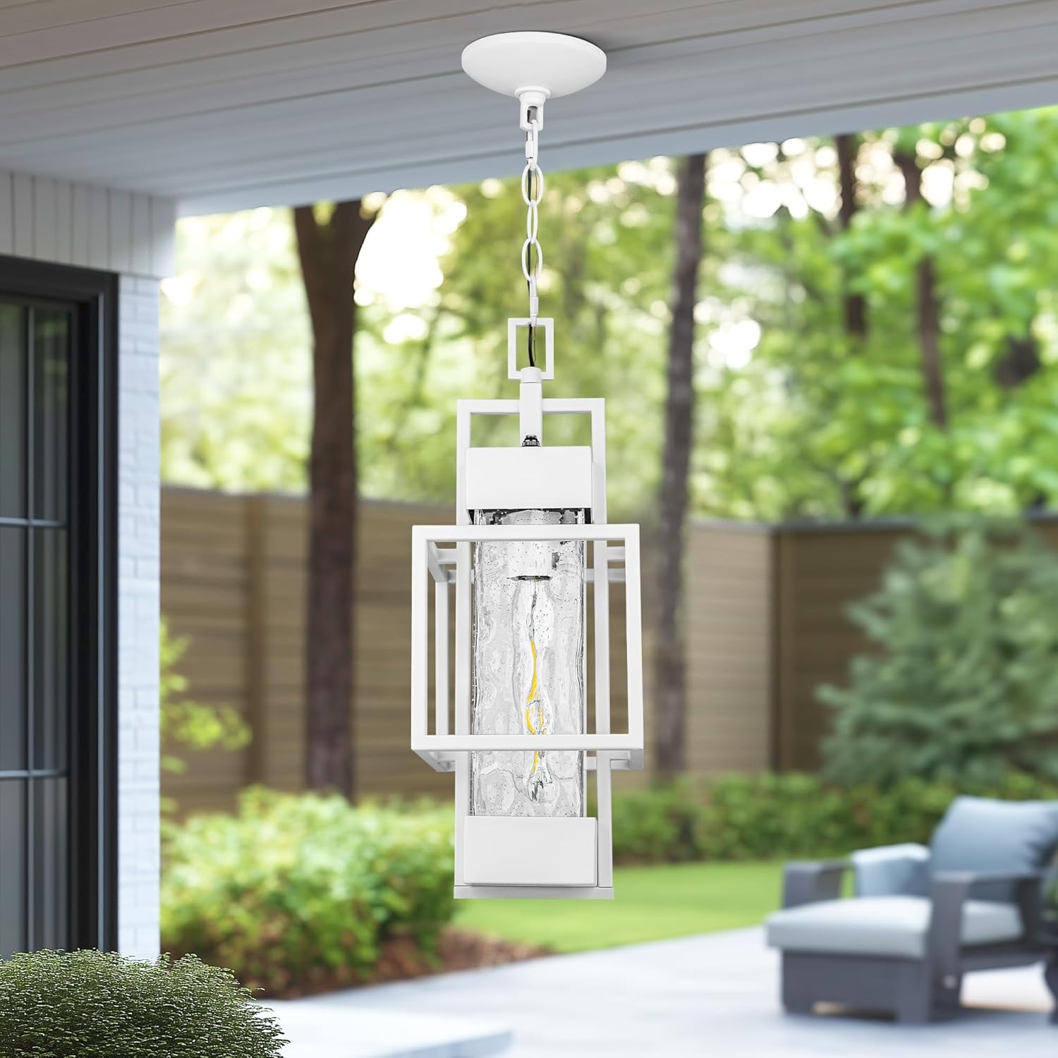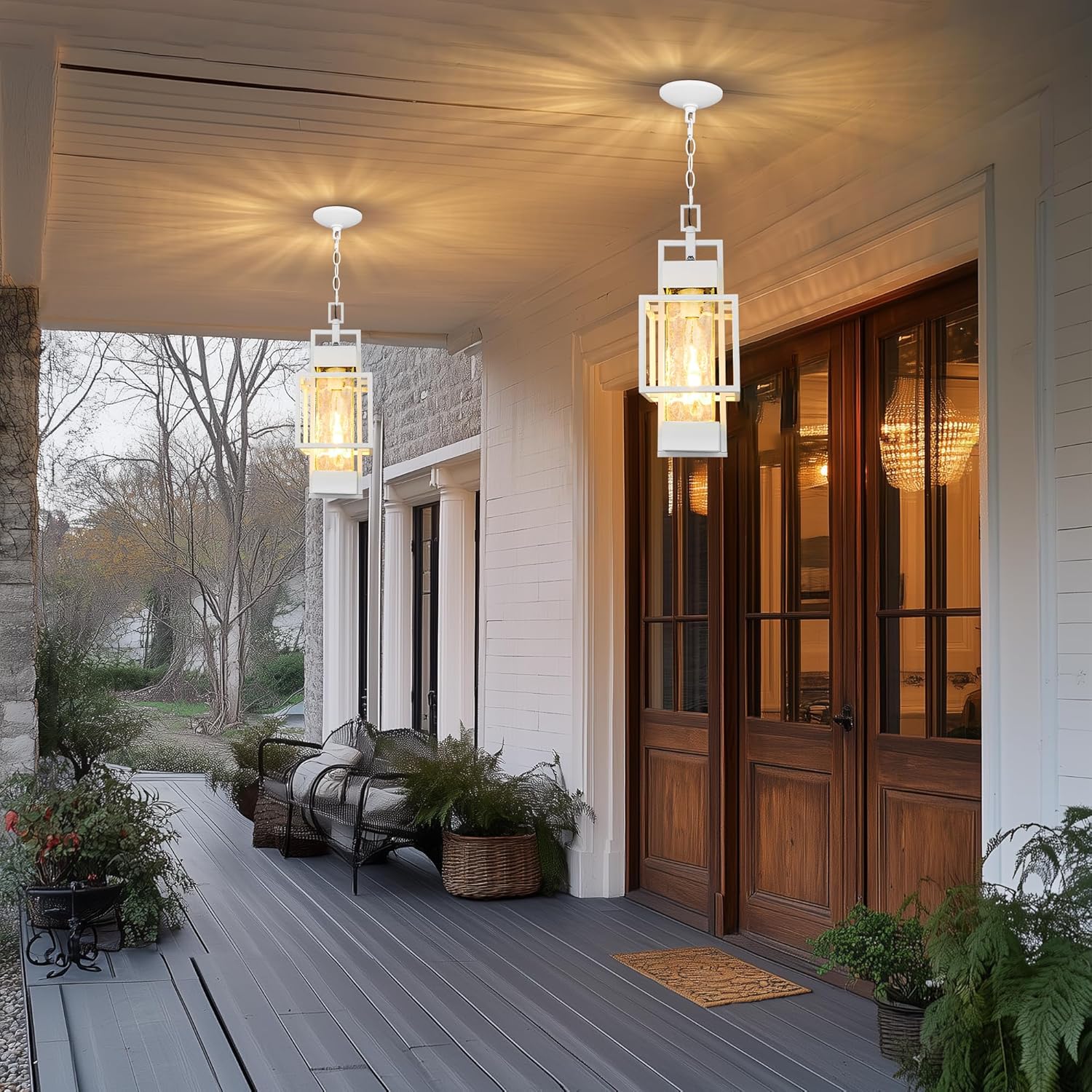 Beautiful shadow: this outdoor pendant light is crafted from metal cage design with water seeded glass that disperses the light to make an eye-caring soft and beautiful shadow for your outdoor and indoor house.