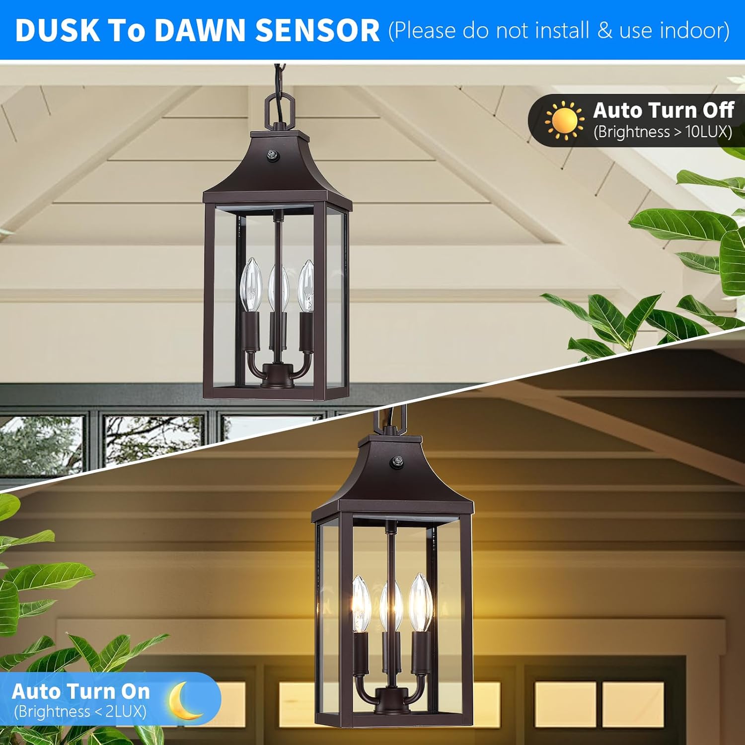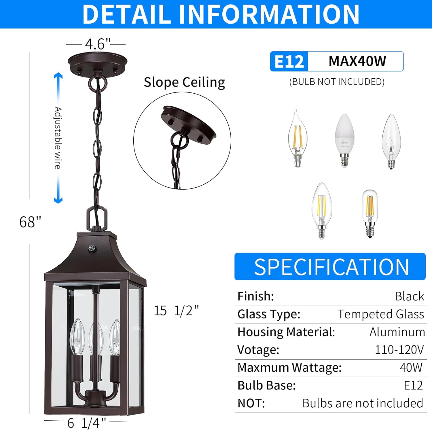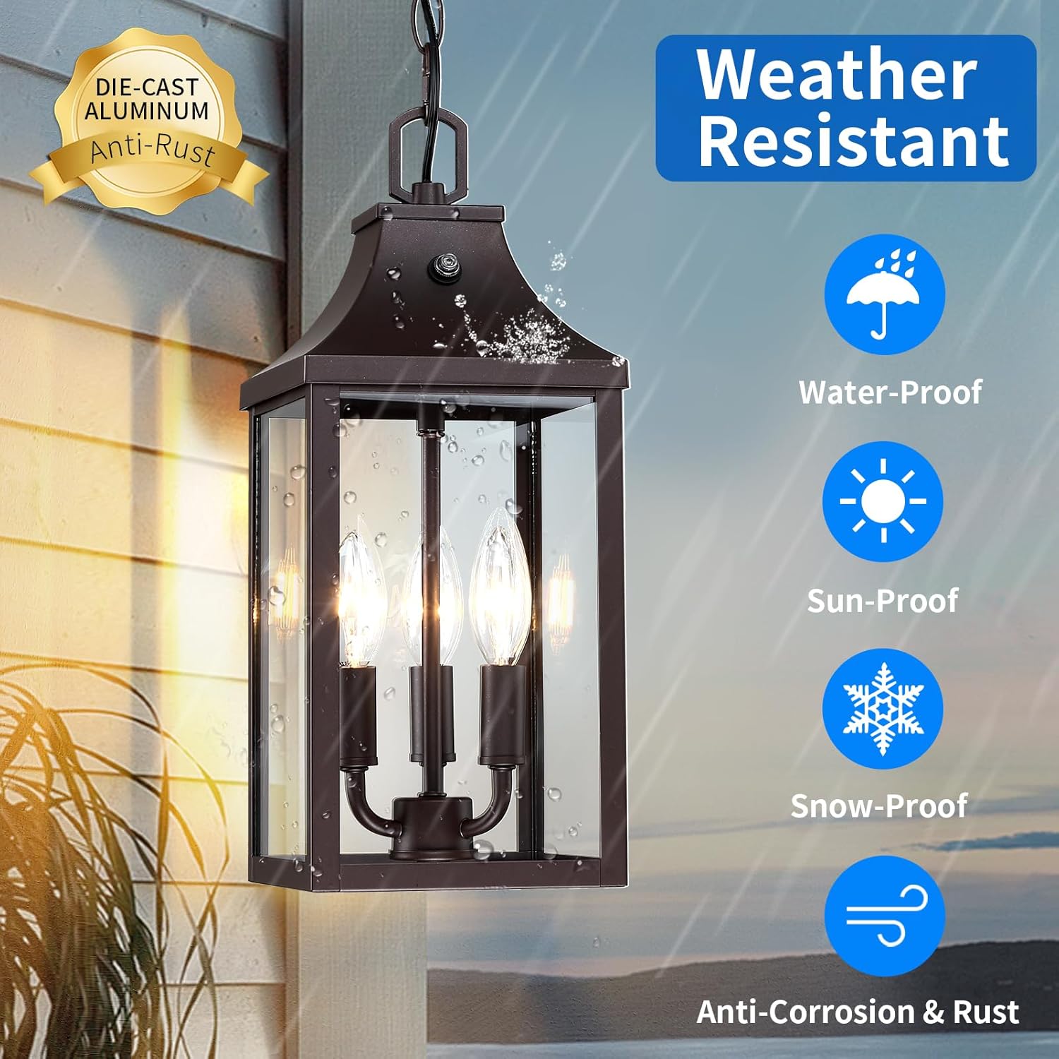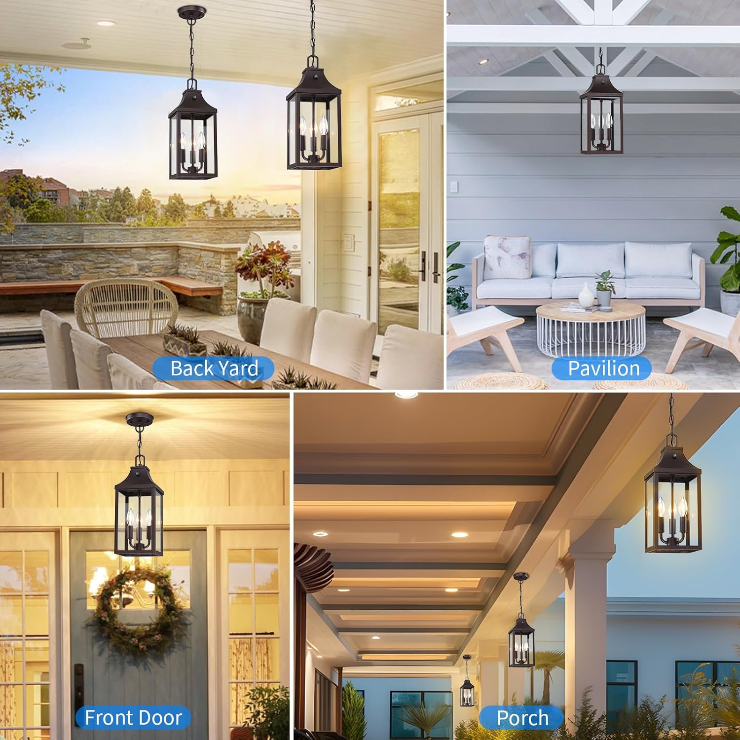 【Anti-rust & Waterproof & Wide Applications】Our outdoor chandelier are made of Die-cast aluminium, This outdoor lights pendant are waterproof, anti-rustic, anti-corrosion. With its superior weather-resistant capabilities, it can perfectly match your front porch, garden, backyard, patio and overnight security entryway welcome light, etc.