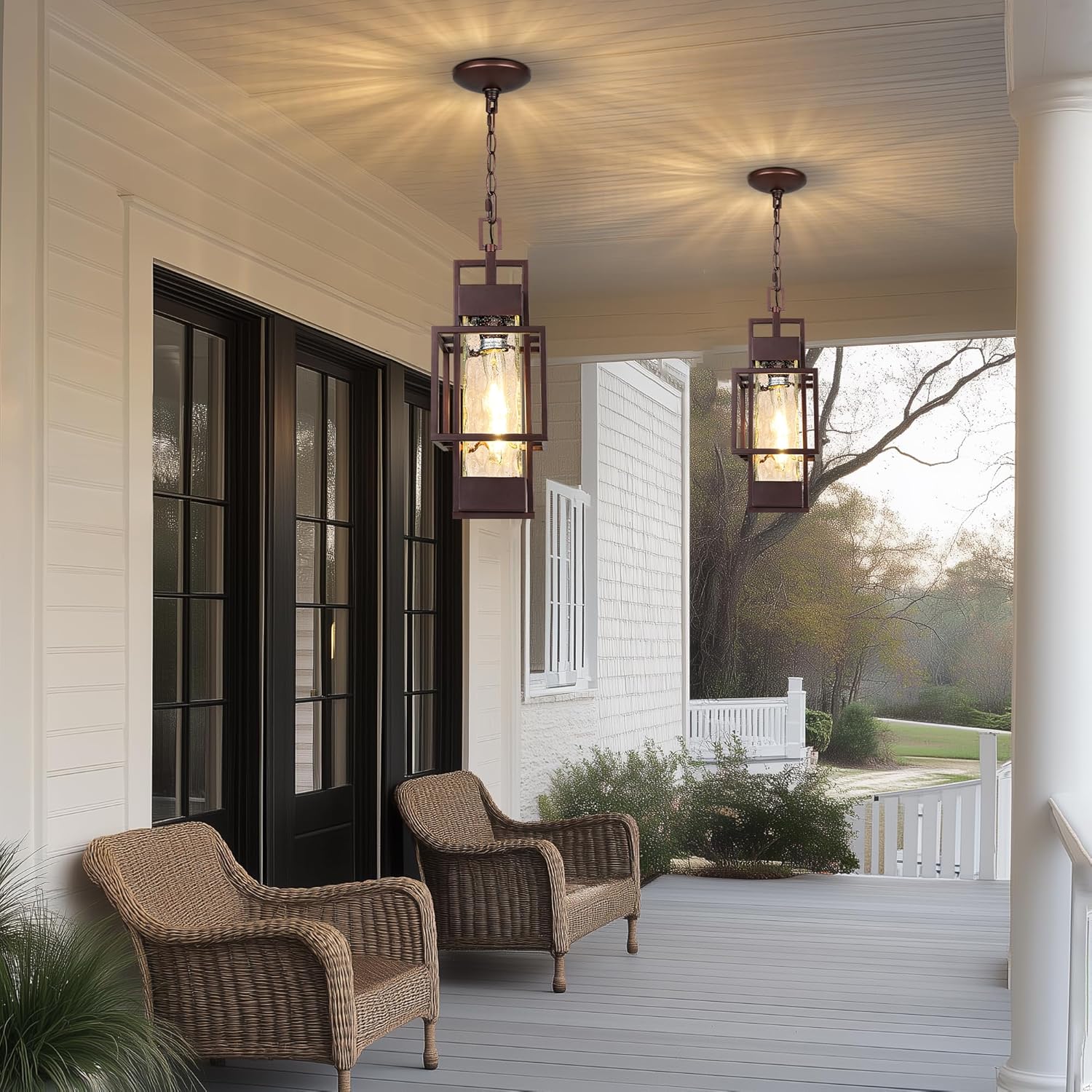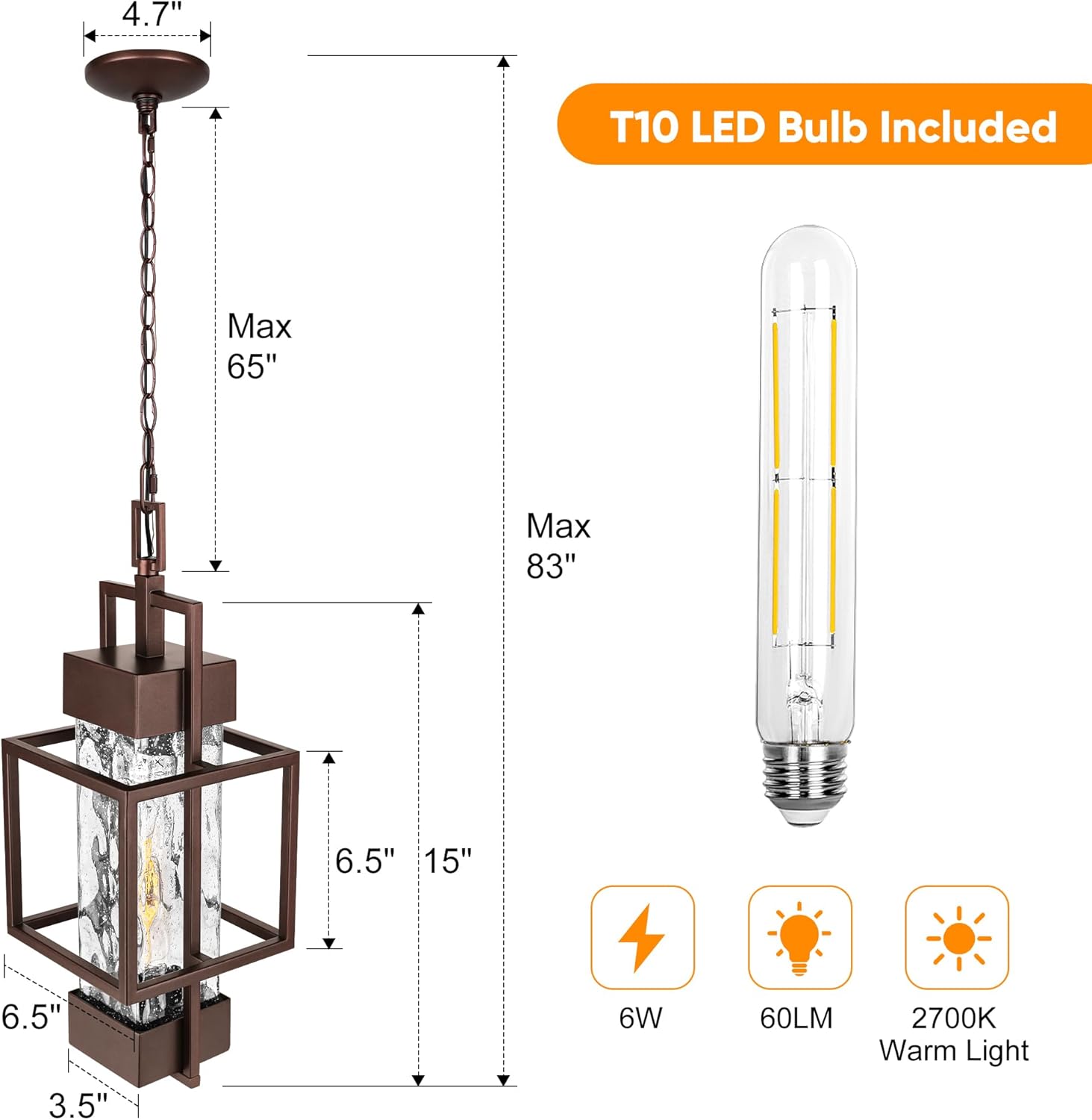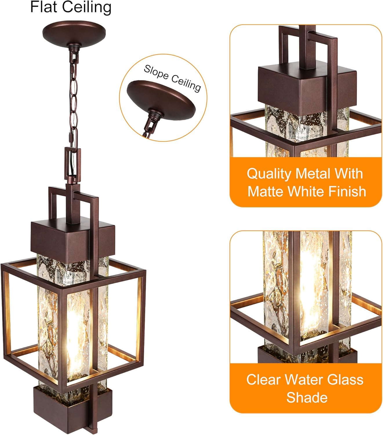 Gorgeous lighting effect: this outdoor pendant light is crafted from metal cage design with water seeded glass that disperses the light evenly to make an eye-caring soft and beautiful shadow for your outdoor and indoor house.