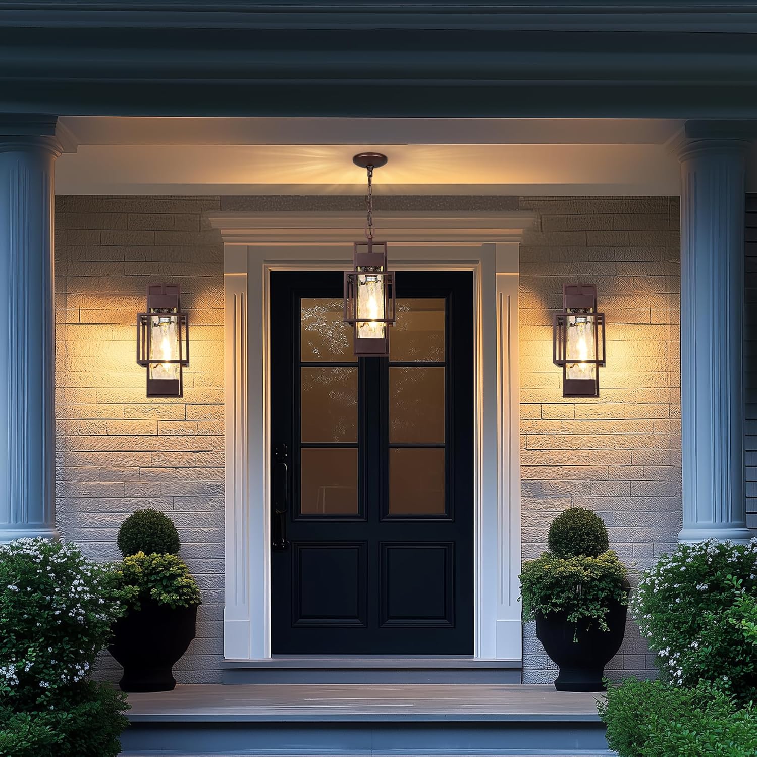 Easy to install: package includes all the mounting hardware for quick and easy installation. This outdoor pendant lantern is compatible with all ceiling types such as flat, sloped, slanted and vaulted ceilings. Perfect for porch, patio, gazebo, foyer, garage, hallway and entryway.