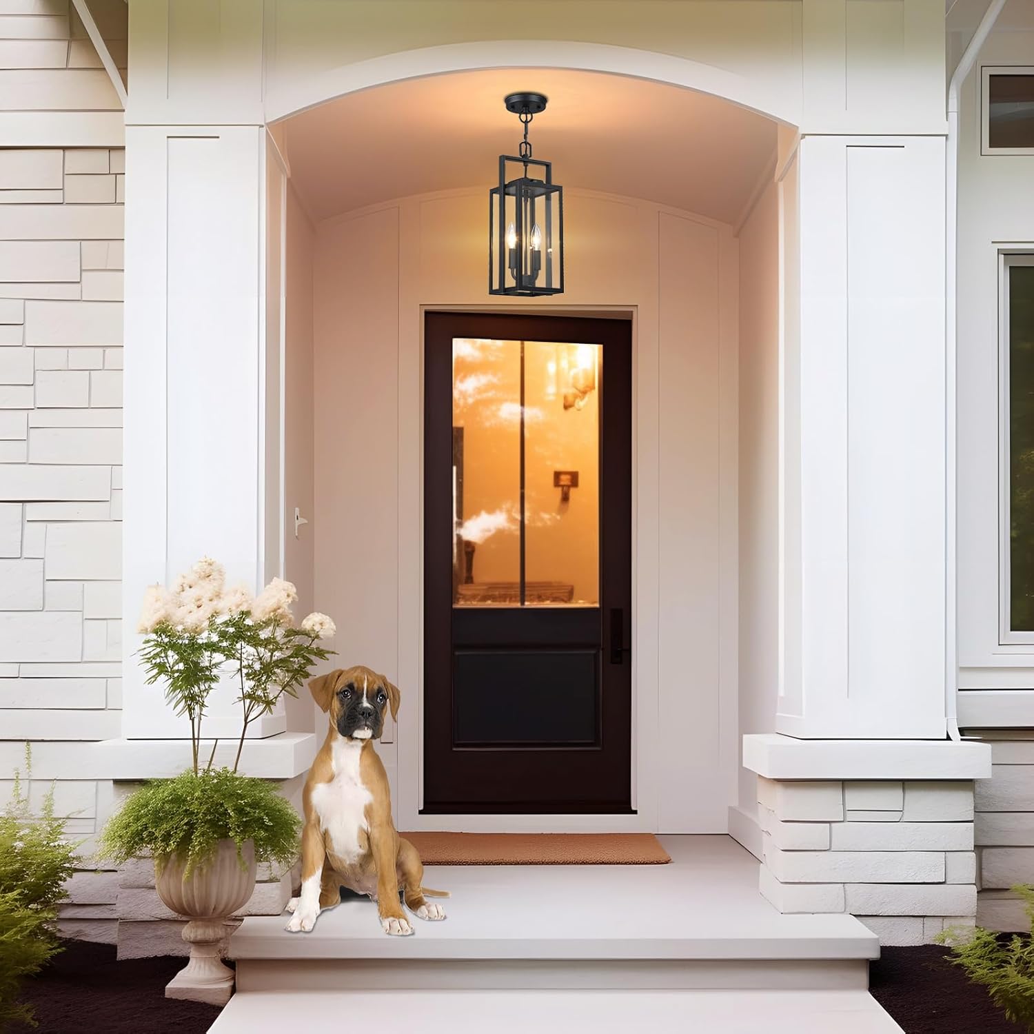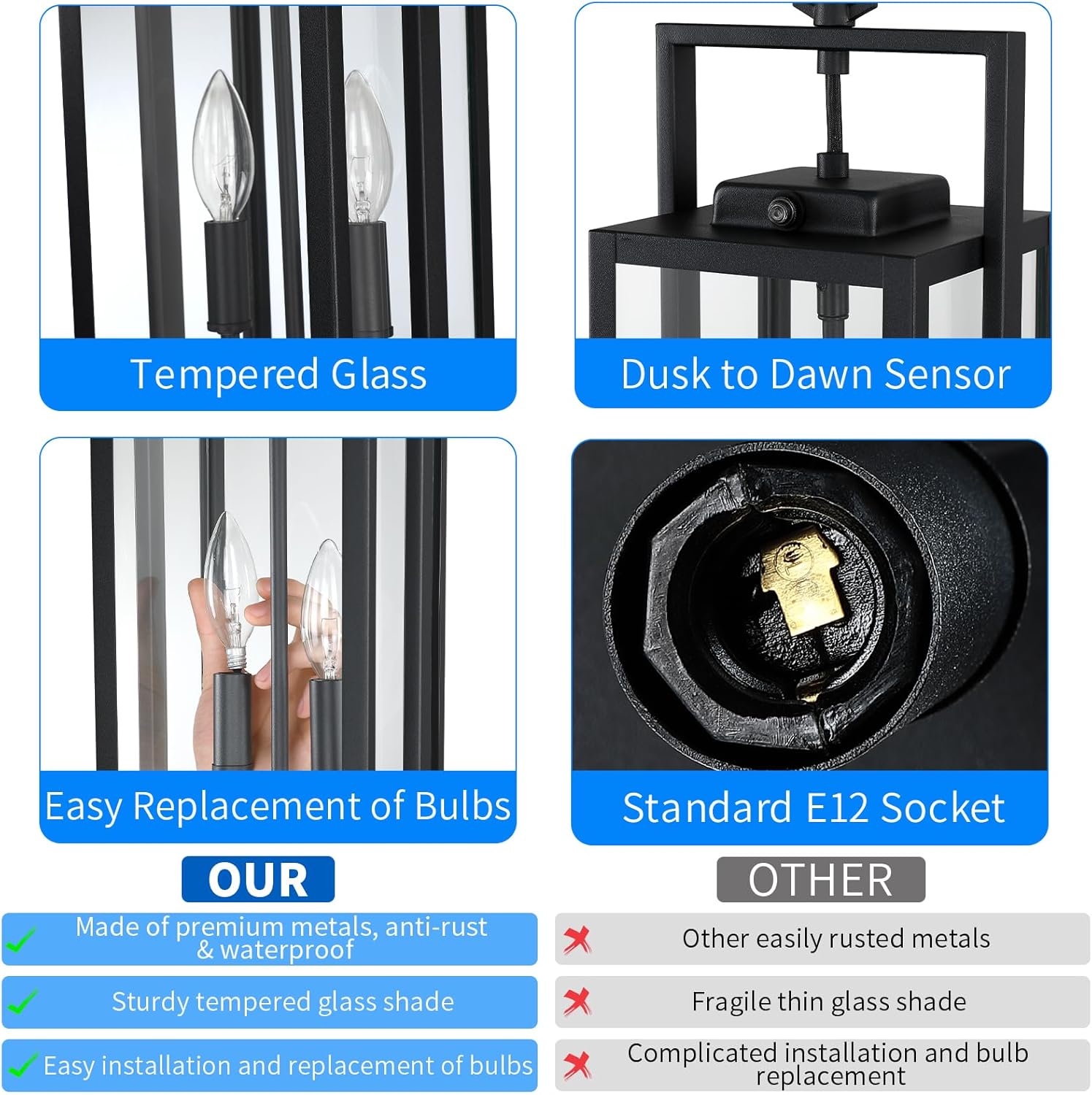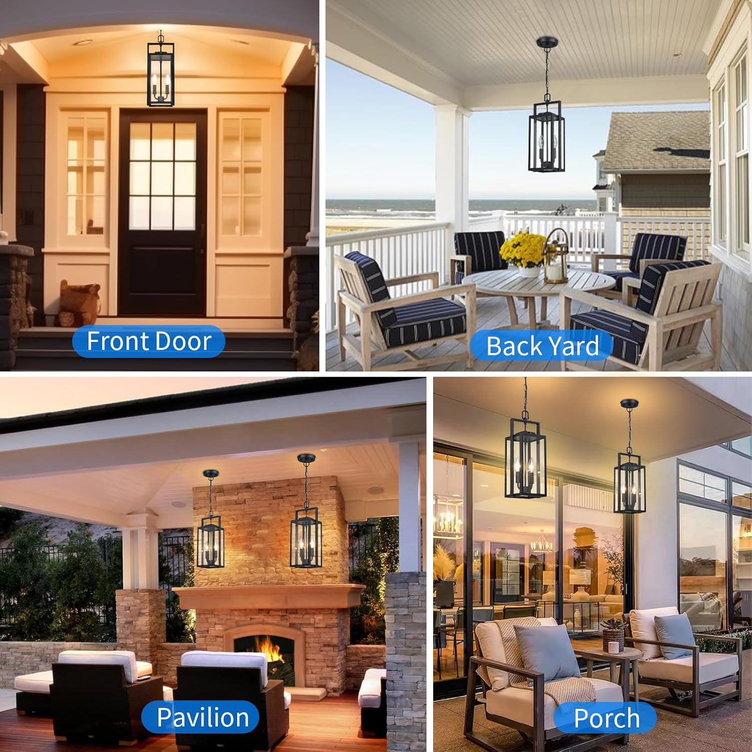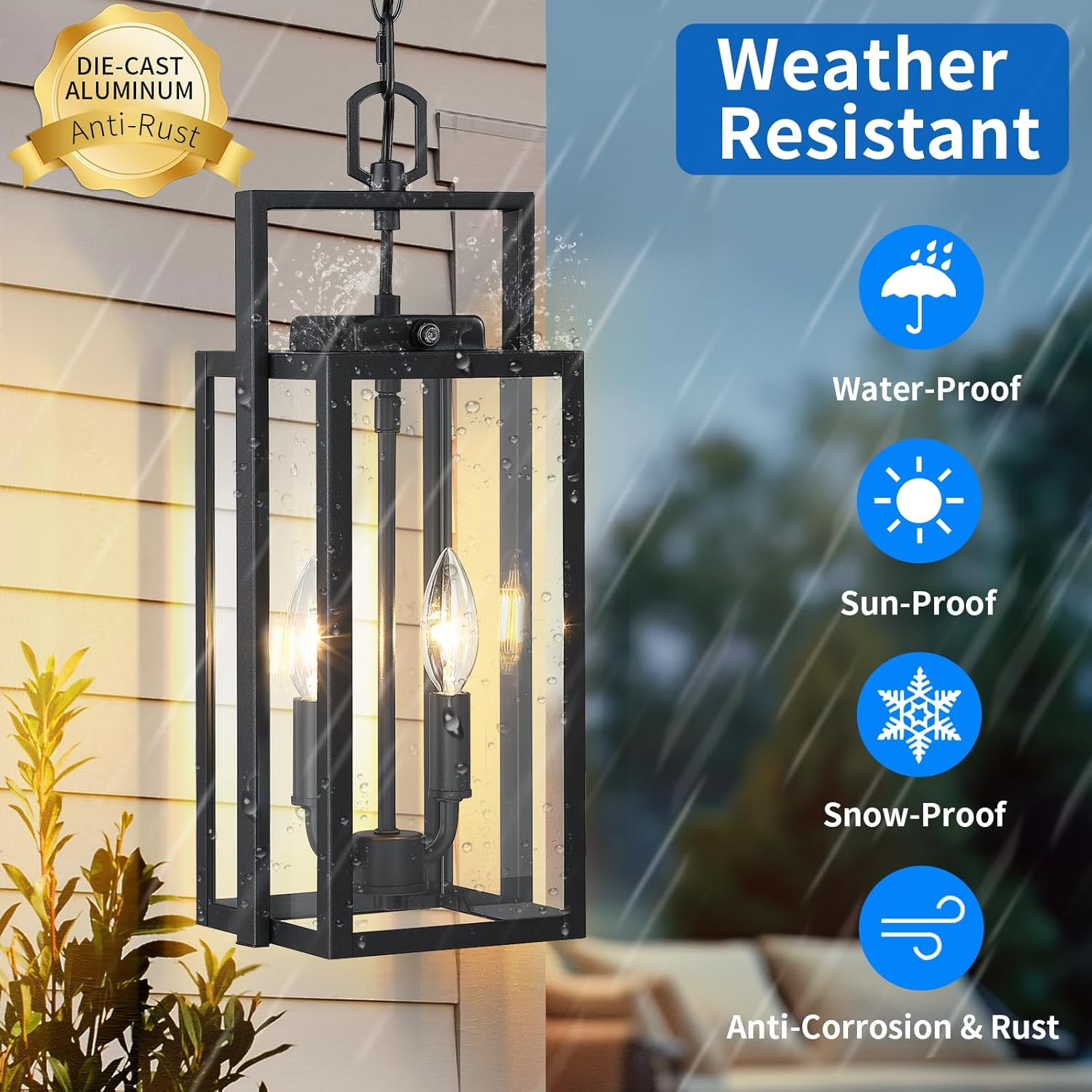 【Anti-rust & Waterproof & Wide Applications】Our outdoor chandelier are made of Die-cast aluminium, This outdoor lights pendant are waterproof, anti-rustic, anti-corrosion. With its superior weather-resistant capabilities, it can perfectly match your front porch, garden, backyard, patio and overnight security entryway welcome light, etc.