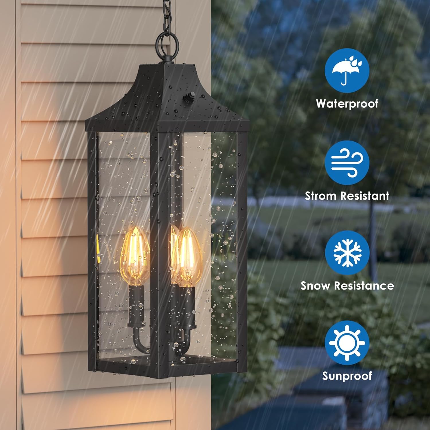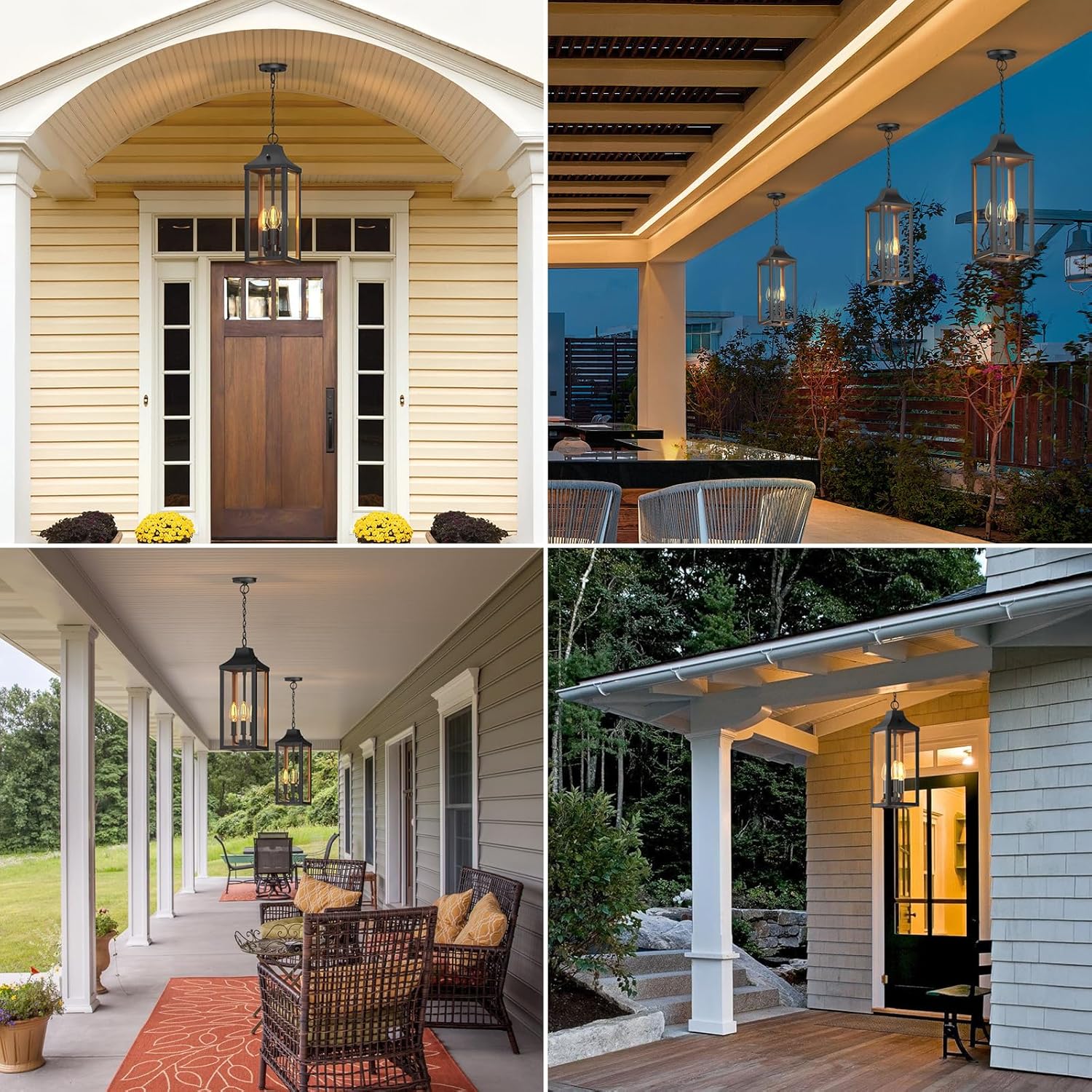 Premium Durability: Constructed from high-quality die-cast aluminum, hanging outdoor light fixture is water-resistant, rust-proof, and corrosion-resistant. It can withstand all types of outdoor weather conditions, making it suitable for front porches, gardens, backyards, and patios