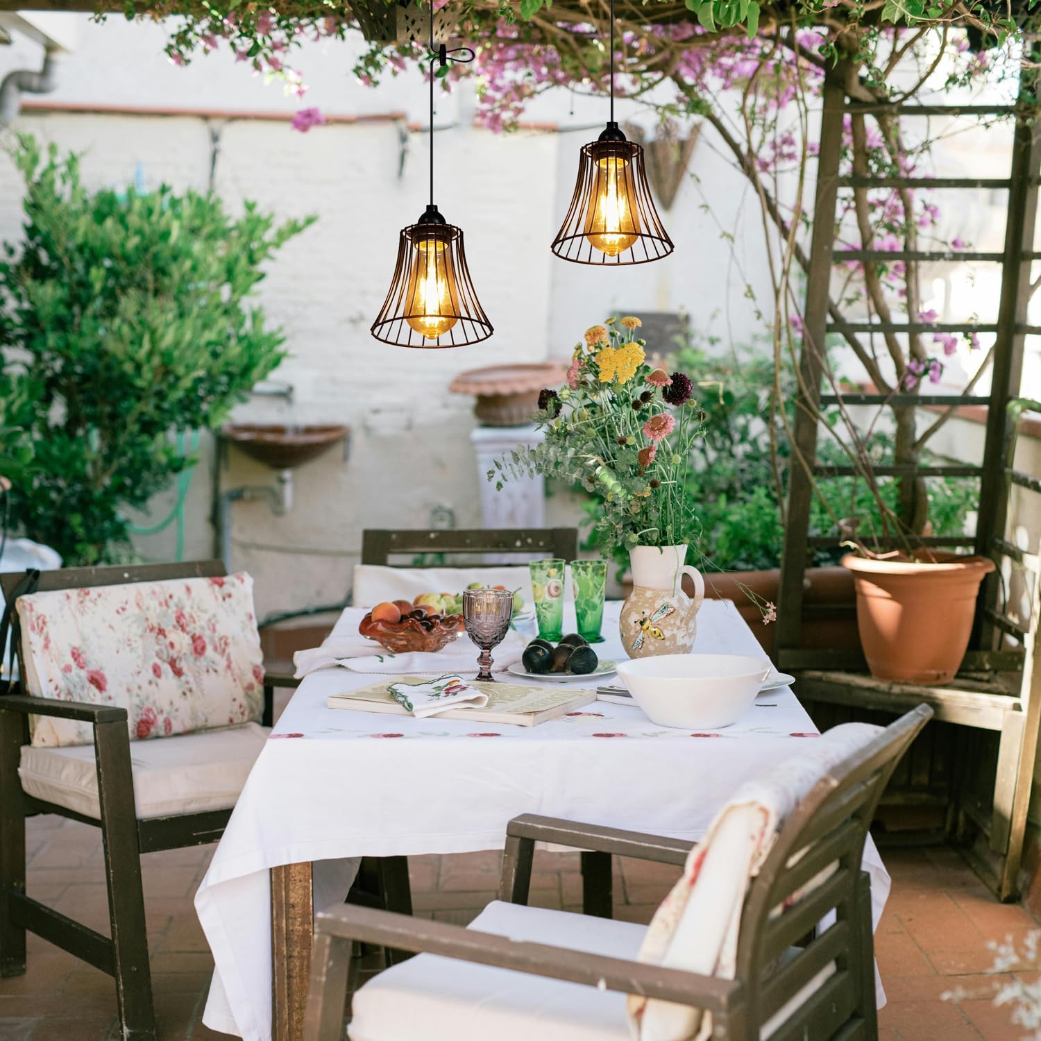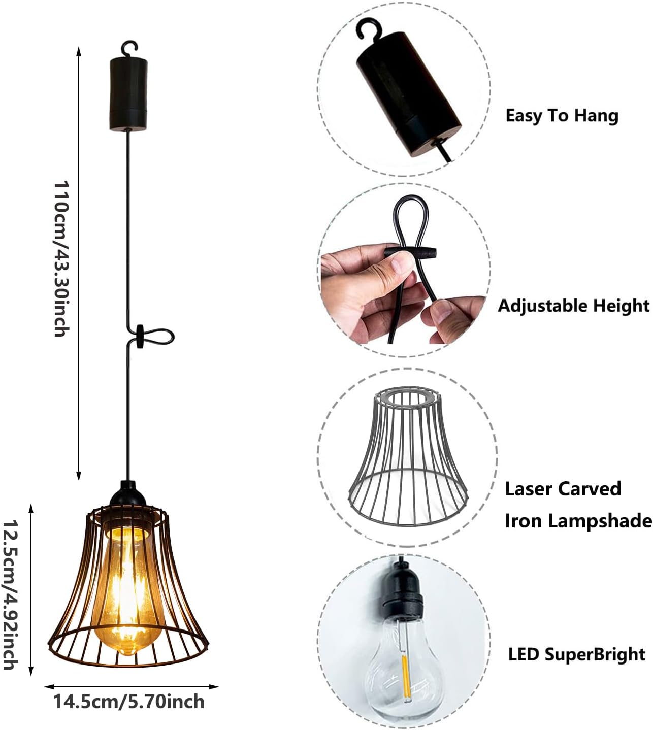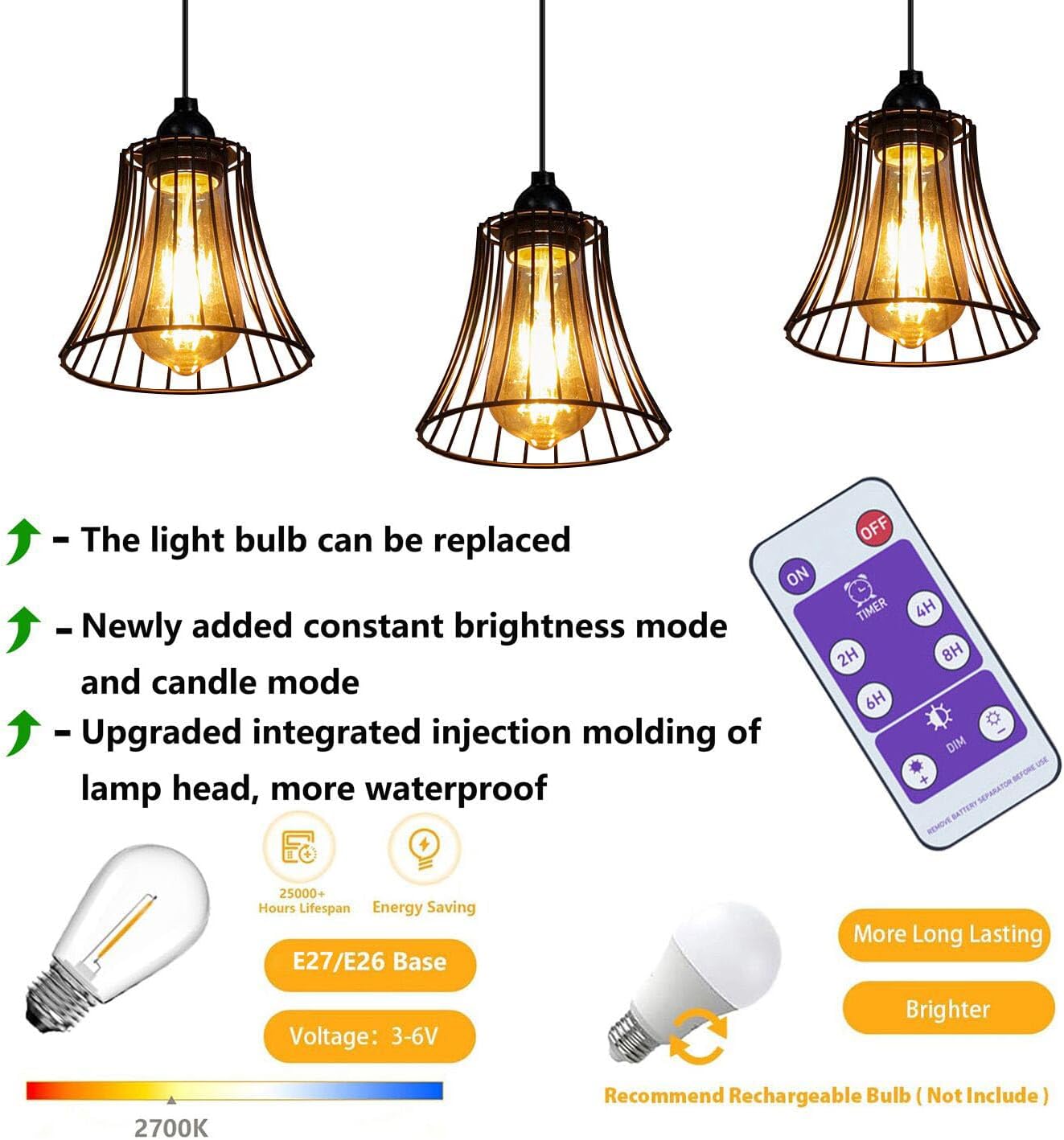 Battery-Powered Outdoor Pendant Light – This battery operated outdoor chandelier is powered by 4*AA batteries (not included), providing up to 120 hours of soft, cool white decorative ambient lighting. The product includes an energy-efficient Edison LED bulb with a service life of over 30,000 hours. You can also replace any E26 light bulb that can be charged according to your needs, or purchase low-voltage E26 light bulbs.