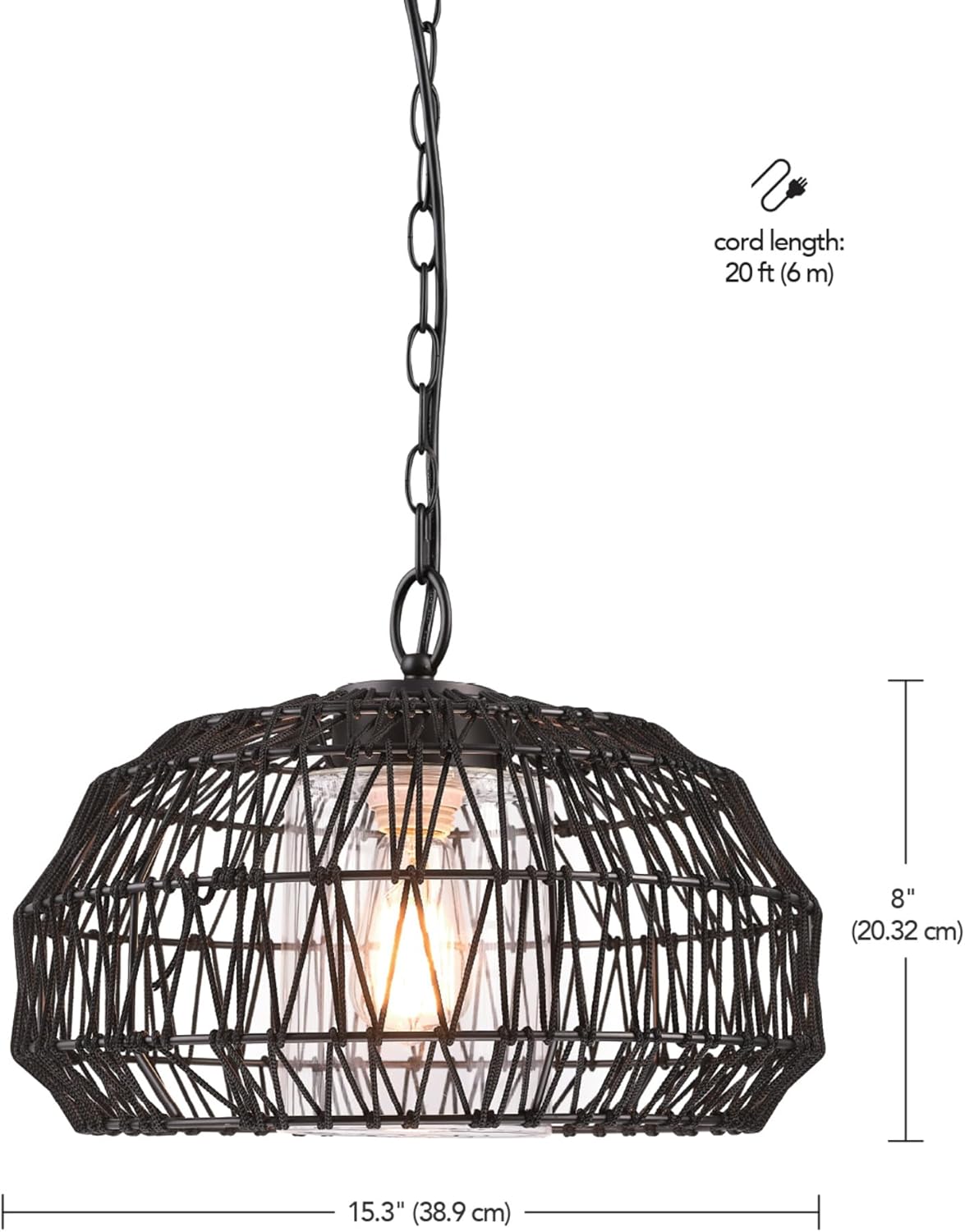 PLUG-IN FLEXIBILITY: 9-foot hanging chain paired with a 20-foot designer cord offers adjustable length and easy installation without hardwiring.