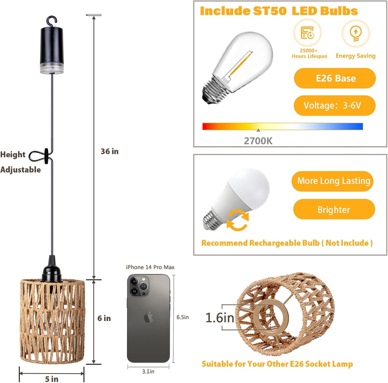 【Customer Support】Each battery powered pendant lightt is carefully tested to ensure quality. Our customer support team is ready to help for any inquiries or assistance, providing a positive experience with your purchase.