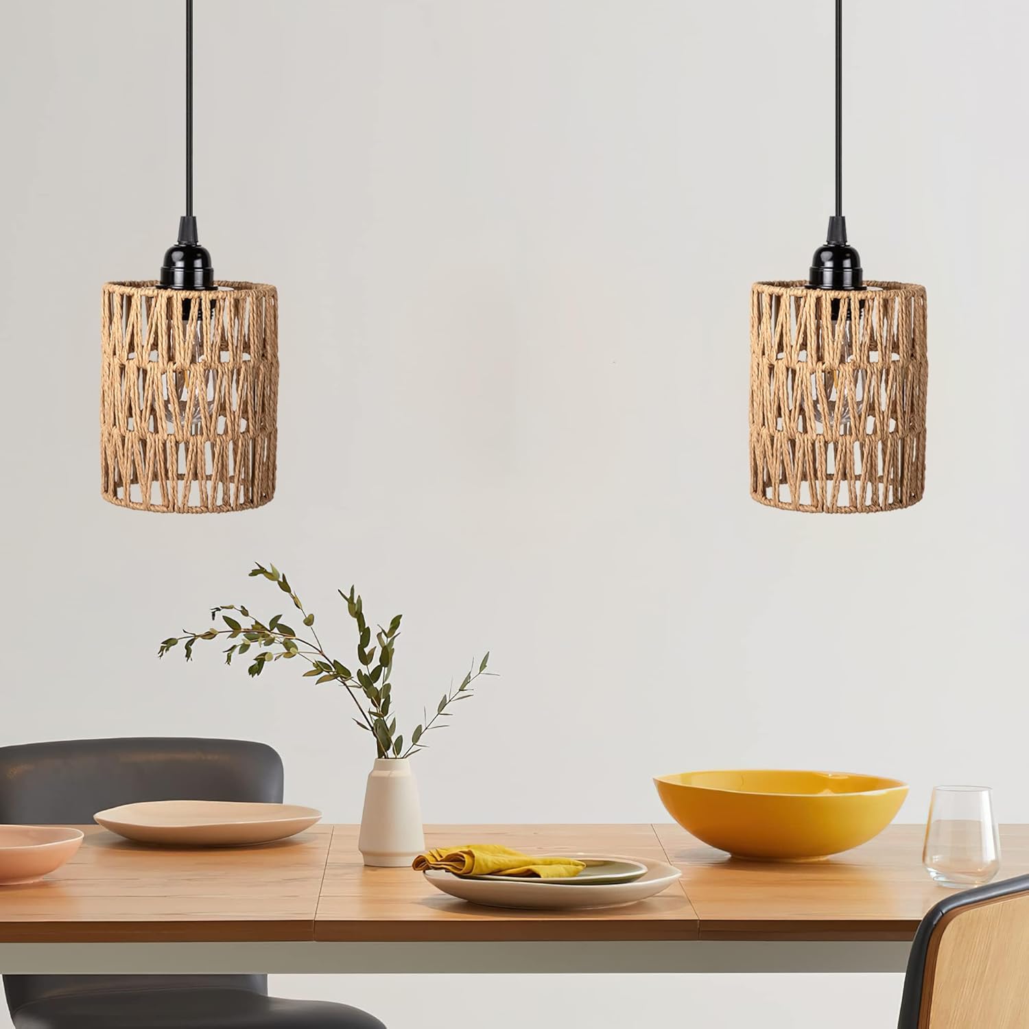 【Bohemian Rattan Lampshade】 The boho rattan battery operated hanging light features a unique hollow design, which makes it more beautiful and eye-catching. Whether used as a replacement lampshade or a standalone decor piece, the battery chandelier fits seamlessly into any bohemian-inspired home.