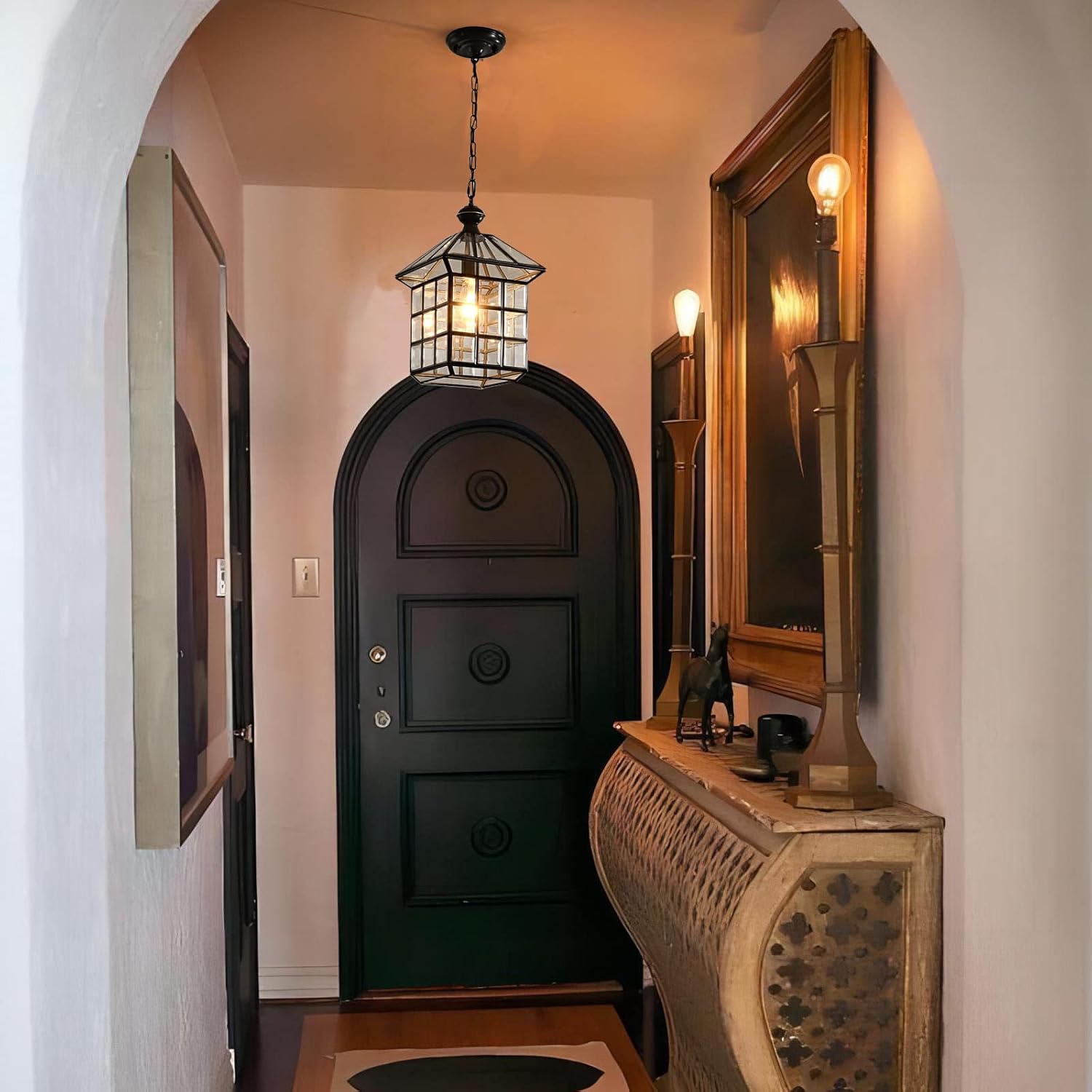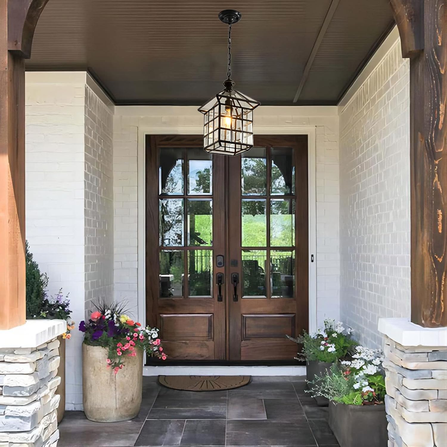 Unique Home Design: This outdoor hanging light features a classic bronze finish, clear glass panes, which make this bronze outdoor hanging light a art decoration daytime, and a warmly brightened up exterior light fixtures at night
