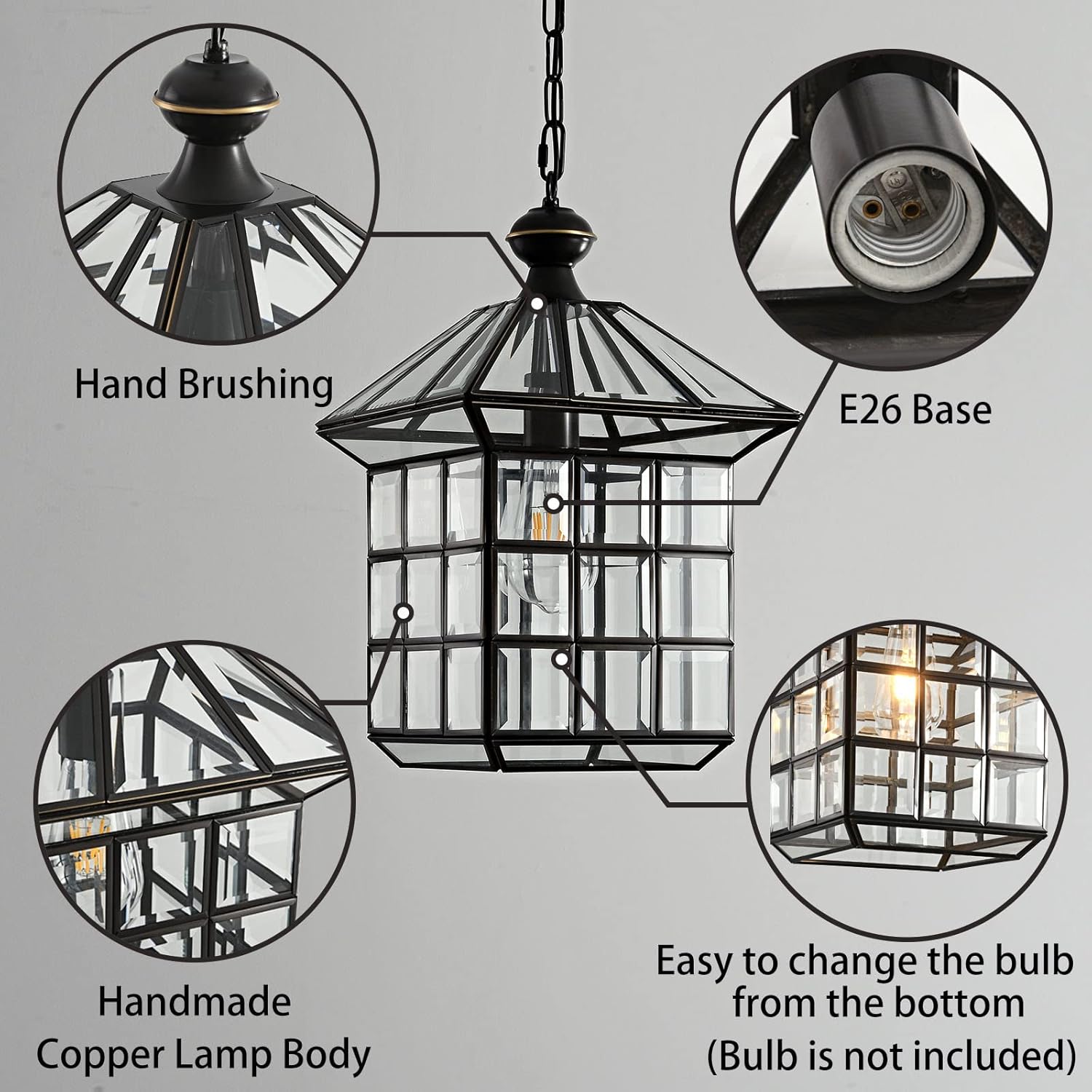 Compatible with E26 Bulbs: The outdoor light fixture requires 1 x E26 base bulb (60W, Max 100W). Compatible with E26 LED, Incandescent, Edison, Halogen or CFL bulbs. Easy installation, just screw an E26 bulb from the bottom of this exterior hanging lamp, then you will get a warm pendant light or chandelier, ideal for using indoor or outdoor