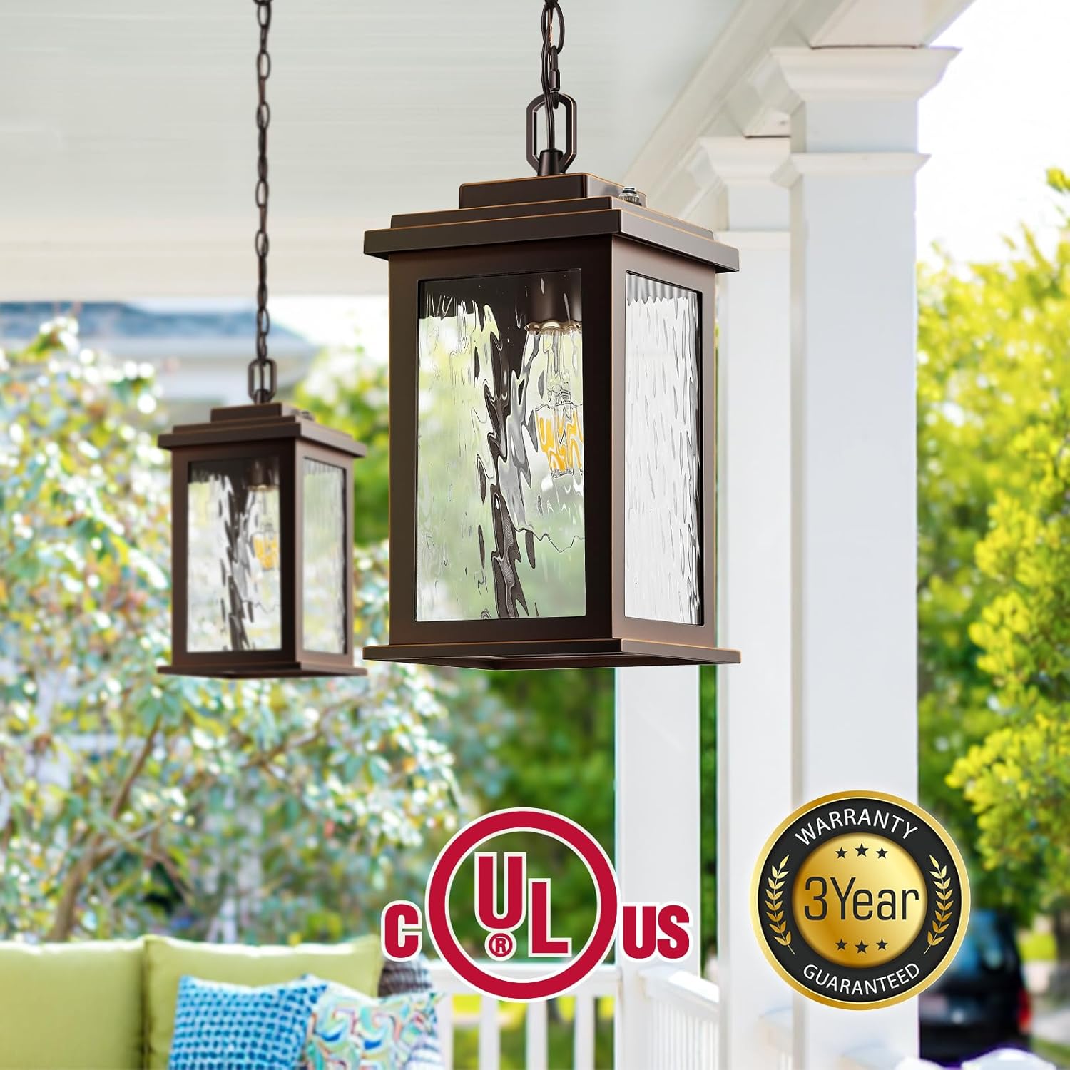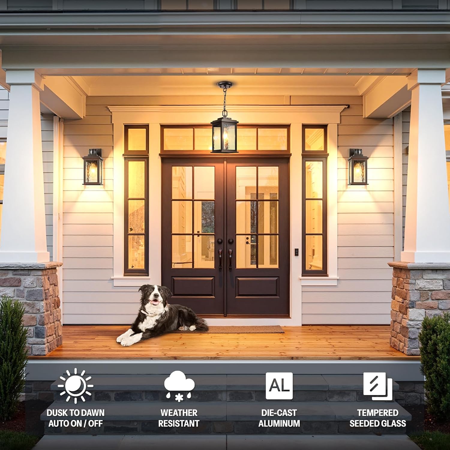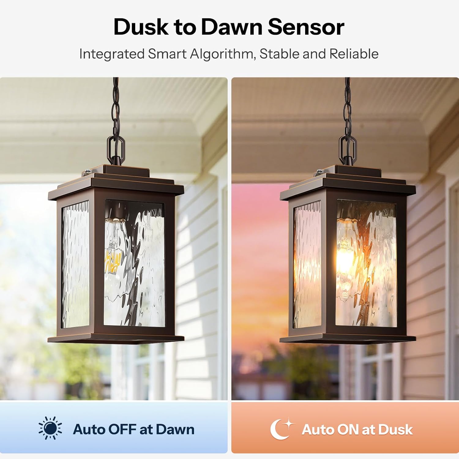 Advanced Dusk to Dawn Sensor: Enjoy hands-free lighting every night. Our built-in light sensor automatically turns the light on at dusk and off at dawn—no timers, switches, or forgetting to turn it off. This outdoor hanging lights fixture is perfect for lighting your porch, garage, or entryway after dark. It offers practical lighting for safer evenings and smarter energy use.