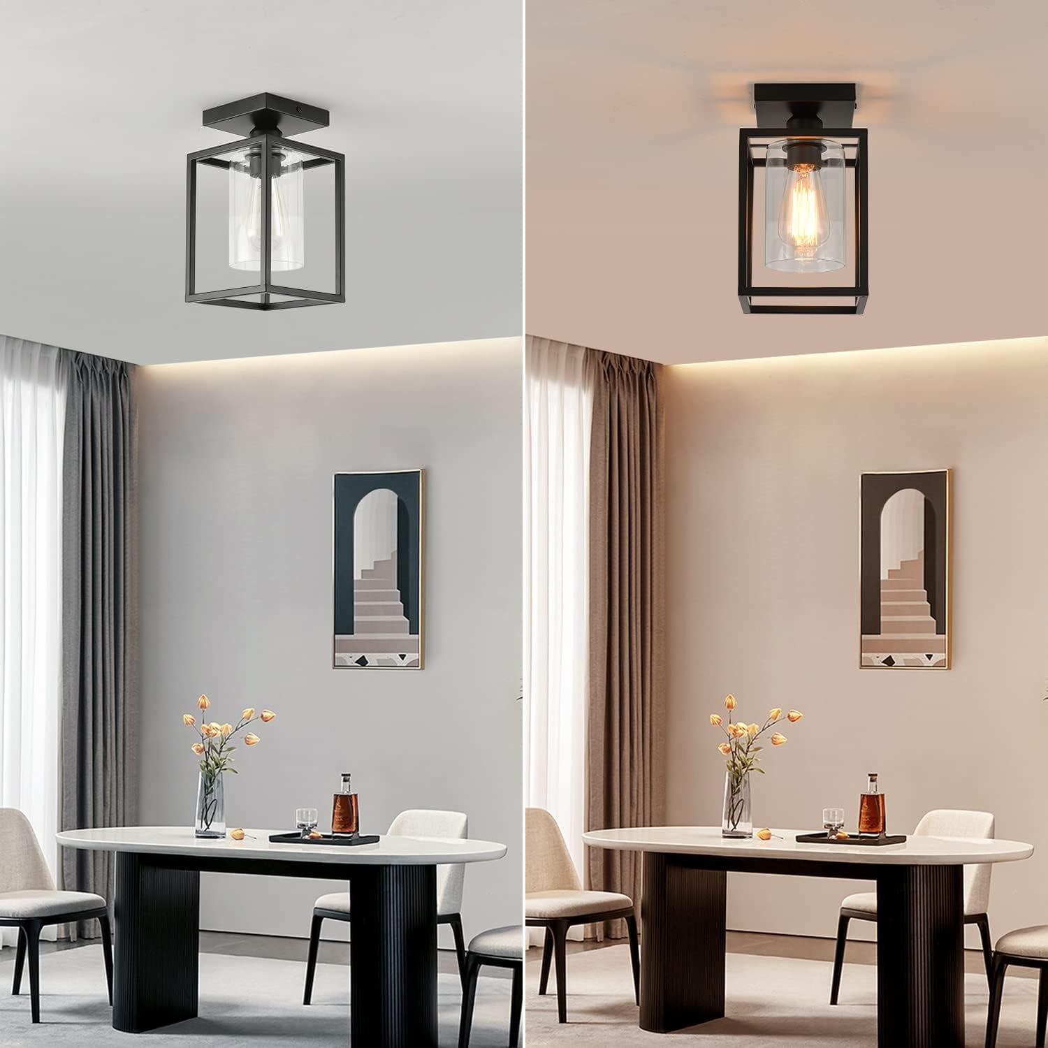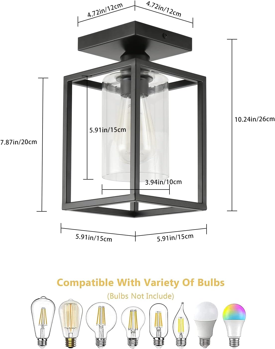 【E26 Standard Base & Timely Sales Service】Works well with any E26 base bulbs (bulbs NOT included). Compatible bulbs type: incandescent, LED, or CFL bulb. Choose different bulbs to bring different atmospheres to your house. If you prefer more vintage and cozy atmosphere to your house, we recommend Edison bulbs. 12 months warranty is provided, if you have any problems with the modern flush mount light fixtures please feel free to contact us.