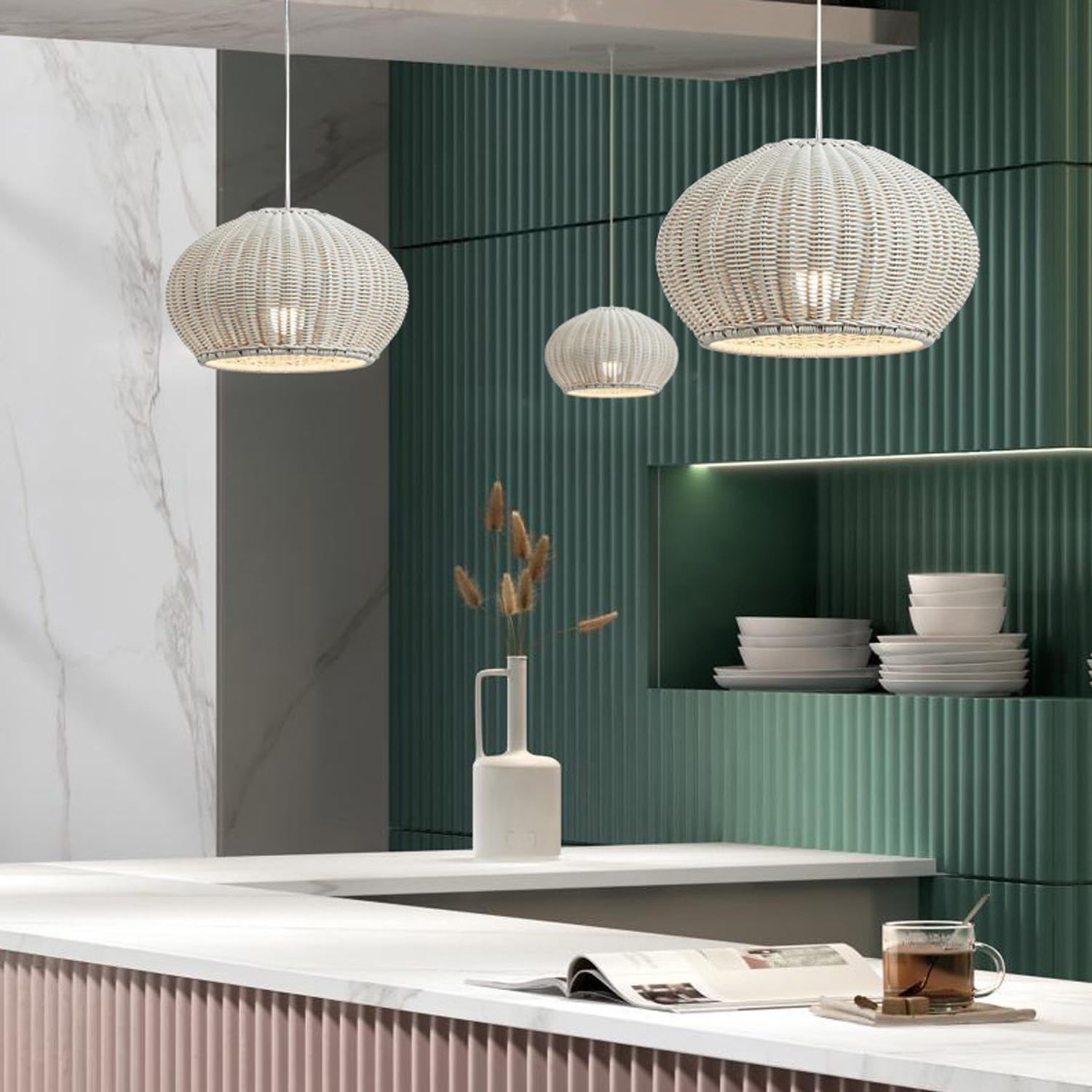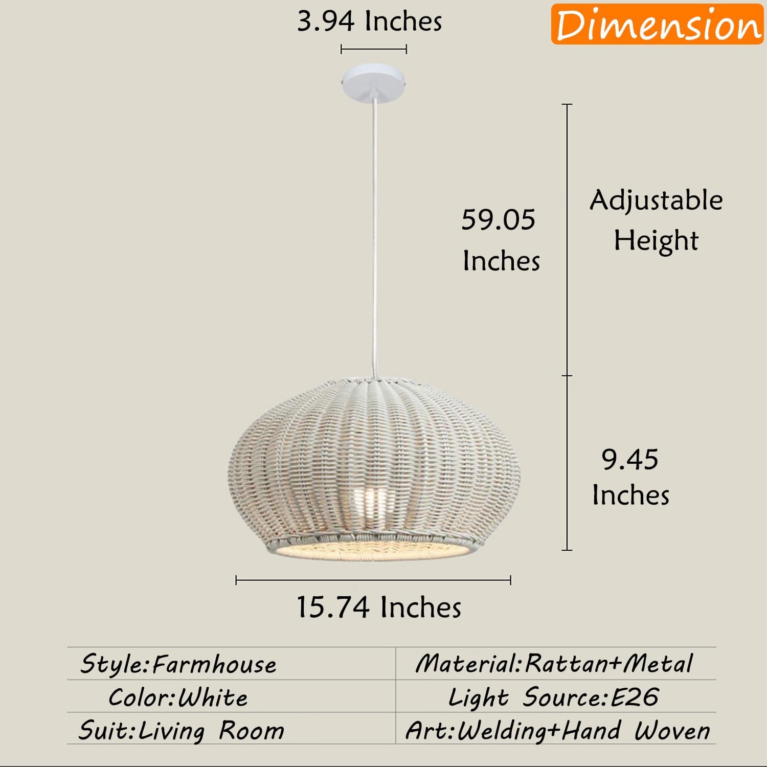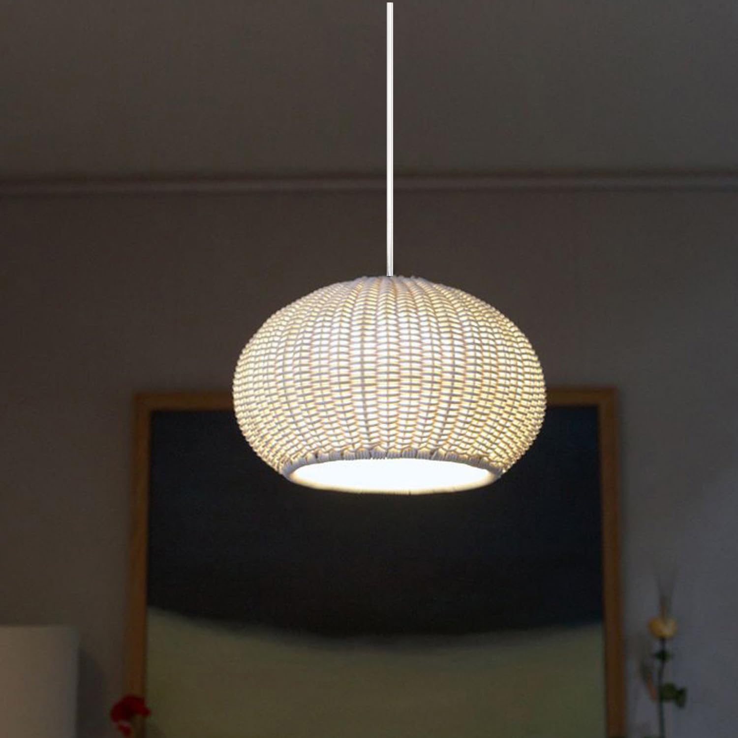 Weave Rattan Pendant Light Design:Handwoven white rattan forms a rounded, textured silhouette, infusing rustic-vintage charm into any space. Seamlessly complements modern, bohemian, or farmhouse styles, becoming an instant visual focal point