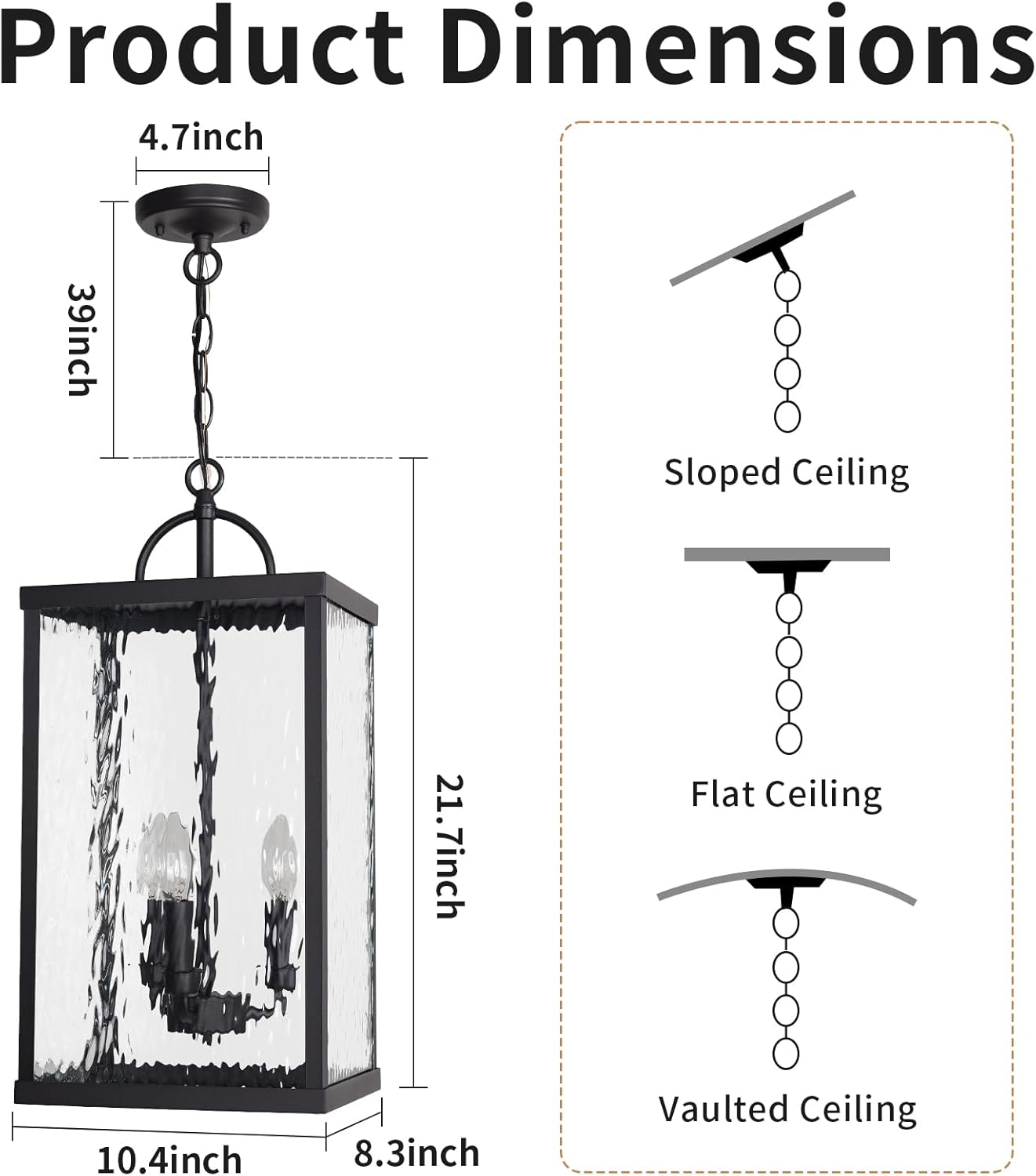 Adjustable Chain for Flexible Installation: This hanging lantern light fixture includes an adjustable chain, allowing you to customize the hanging height for any space. Compatible with both flat and sloped ceilings, it delivers a balanced, secure, and stylish installation for patios, gazebos, and entryways