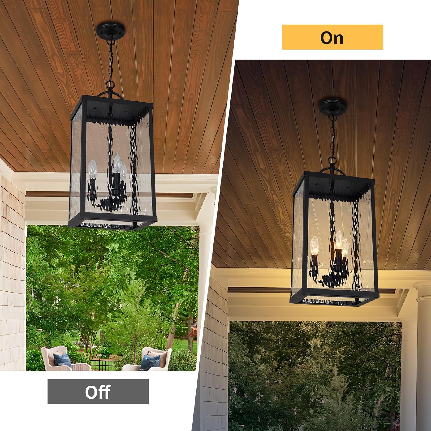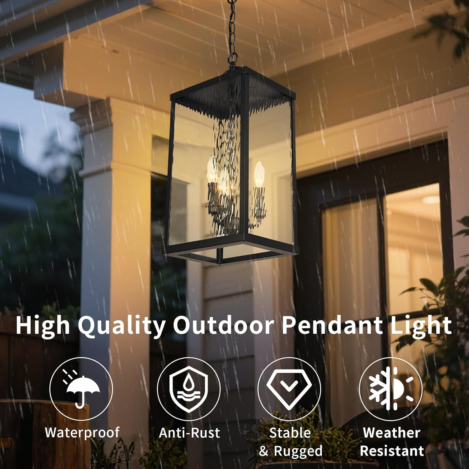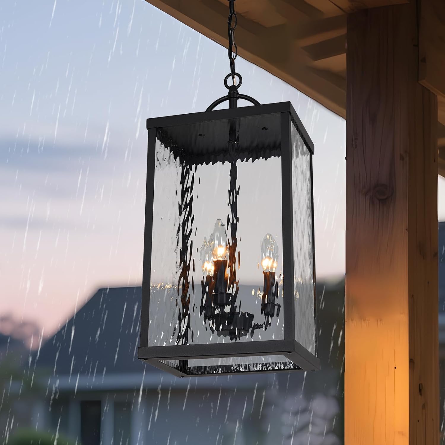 Durable & Weather-Resistant Construction: Crafted from heavy-duty anti-rust metal and thick, waterproof ripple glass, this outdoor chandelier is built to withstand rain, snow, wind, and heat. Its weather-resistant coating ensures long-lasting beauty and reliable illumination, making it ideal for wet or covered outdoor areas such as gardens, barns, and backyards