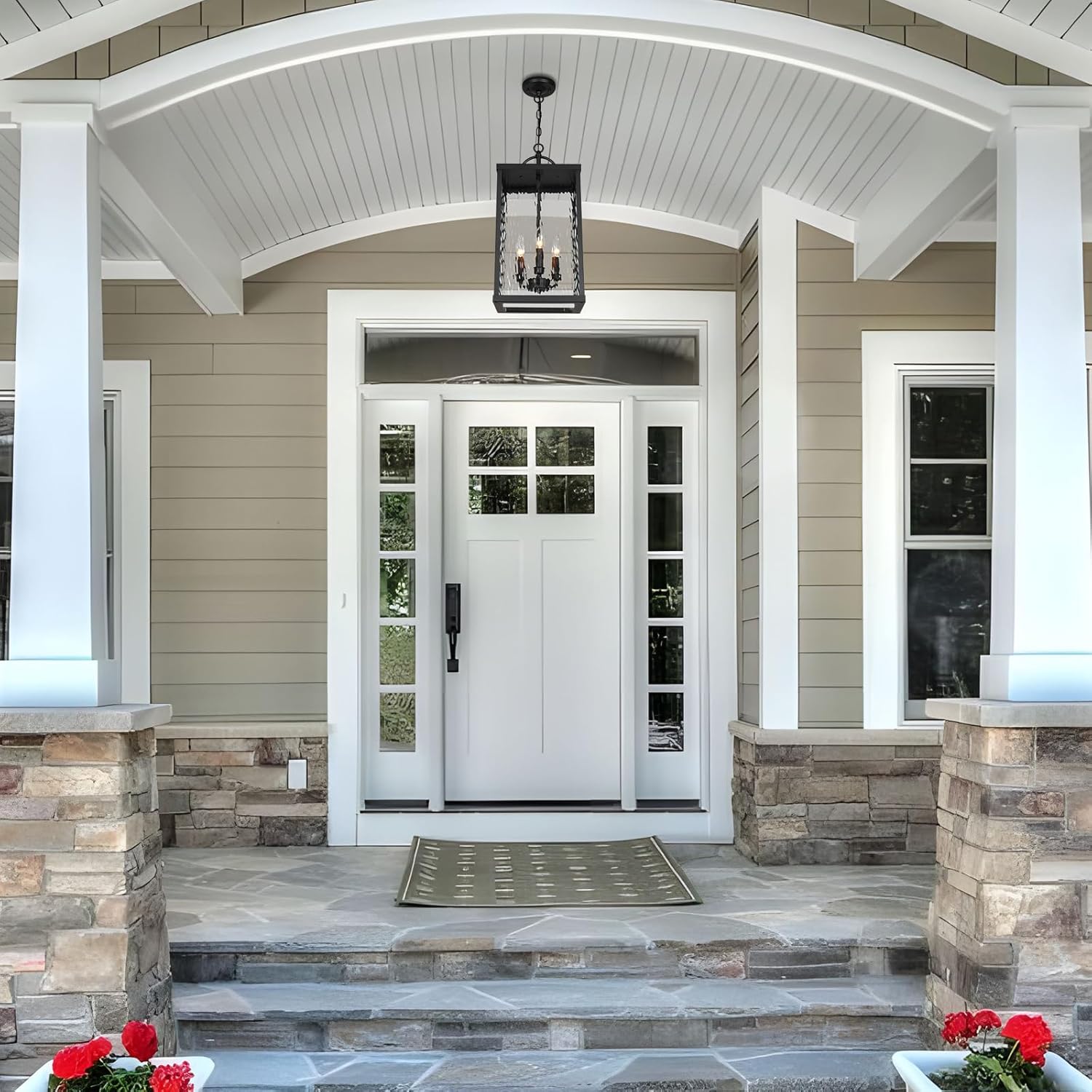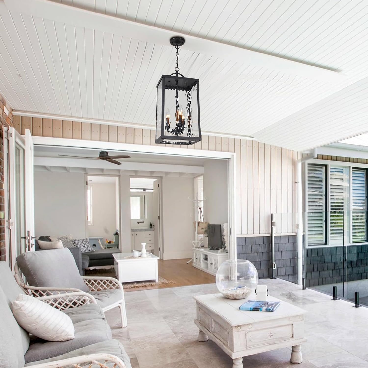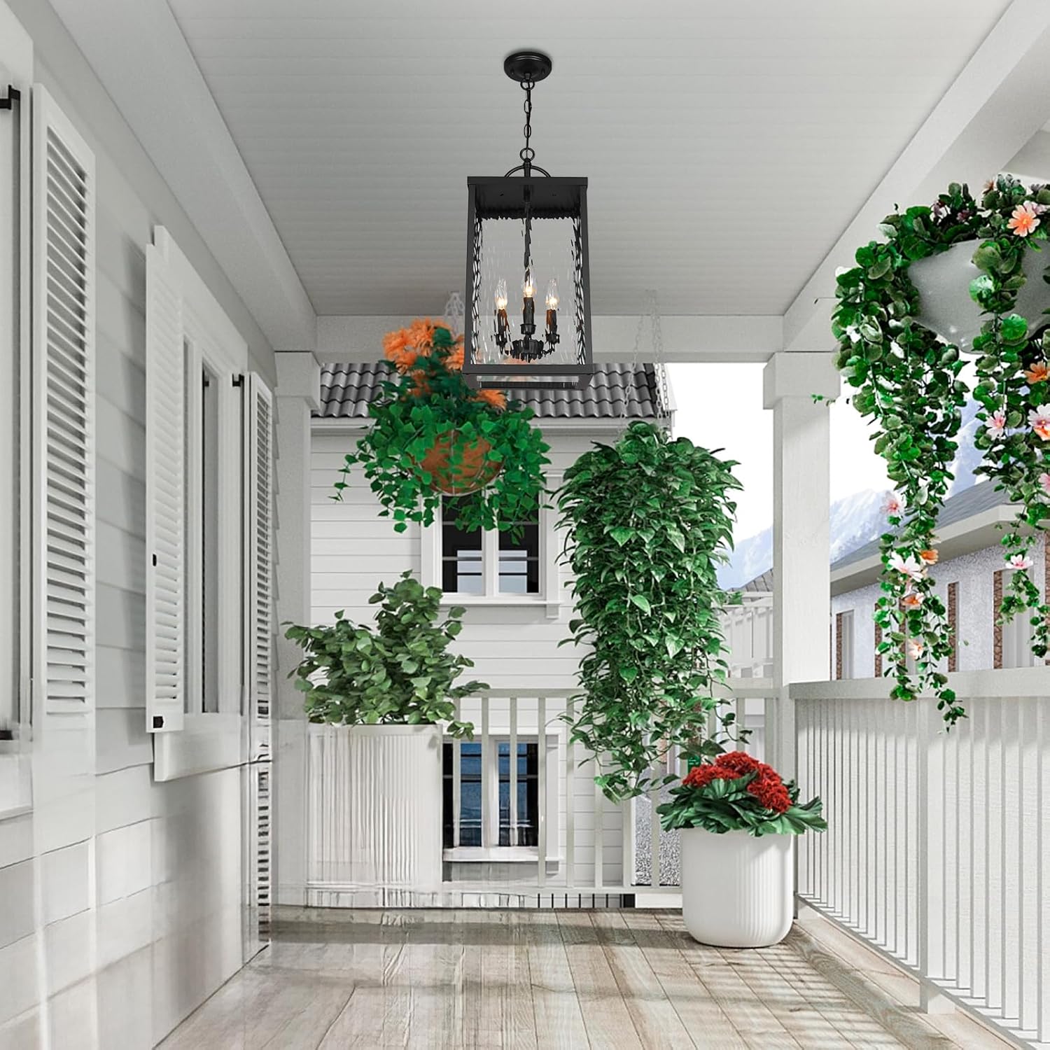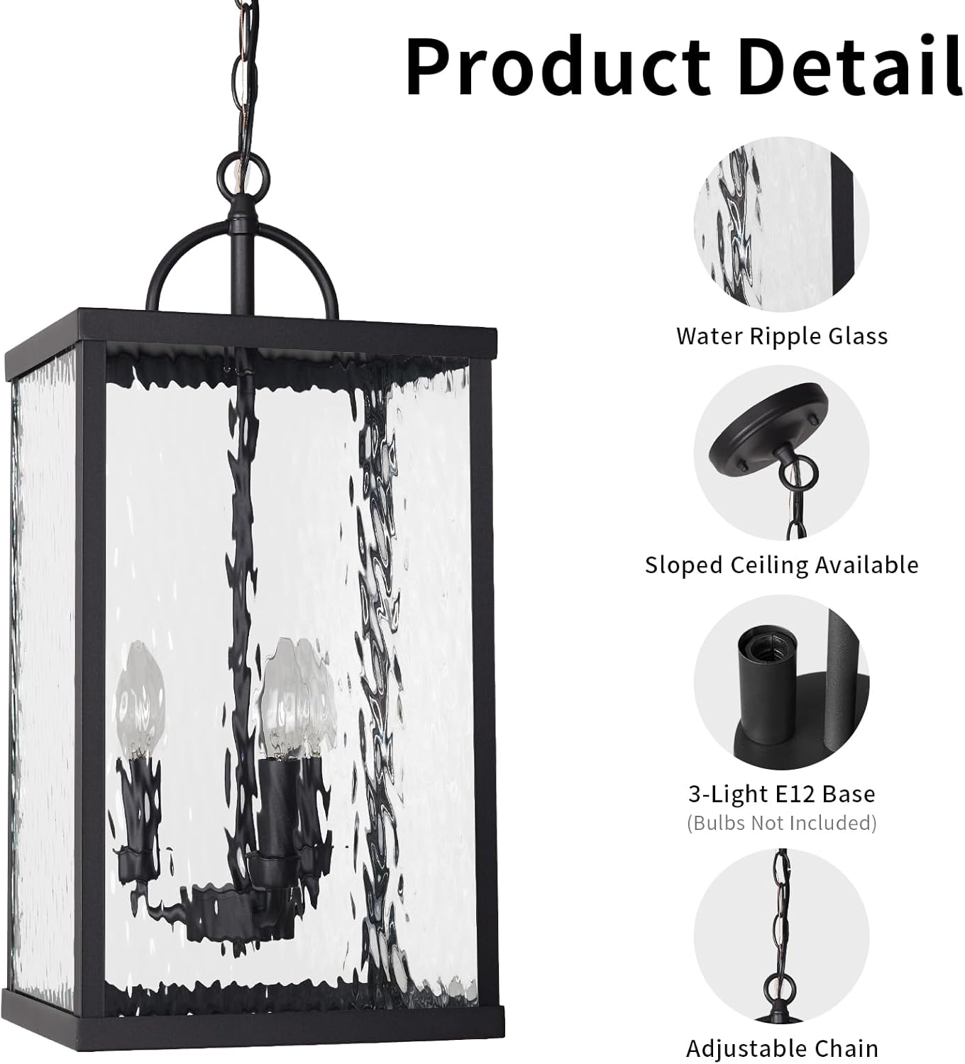 Durable & Weather-Resistant Construction: Crafted from heavy-duty anti-rust metal and thick, waterproof ripple glass, this outdoor chandelier is built to withstand rain, snow, wind, and heat. Its weather-resistant coating ensures long-lasting beauty and reliable illumination, making it ideal for wet or covered outdoor areas such as gardens, barns, and backyards