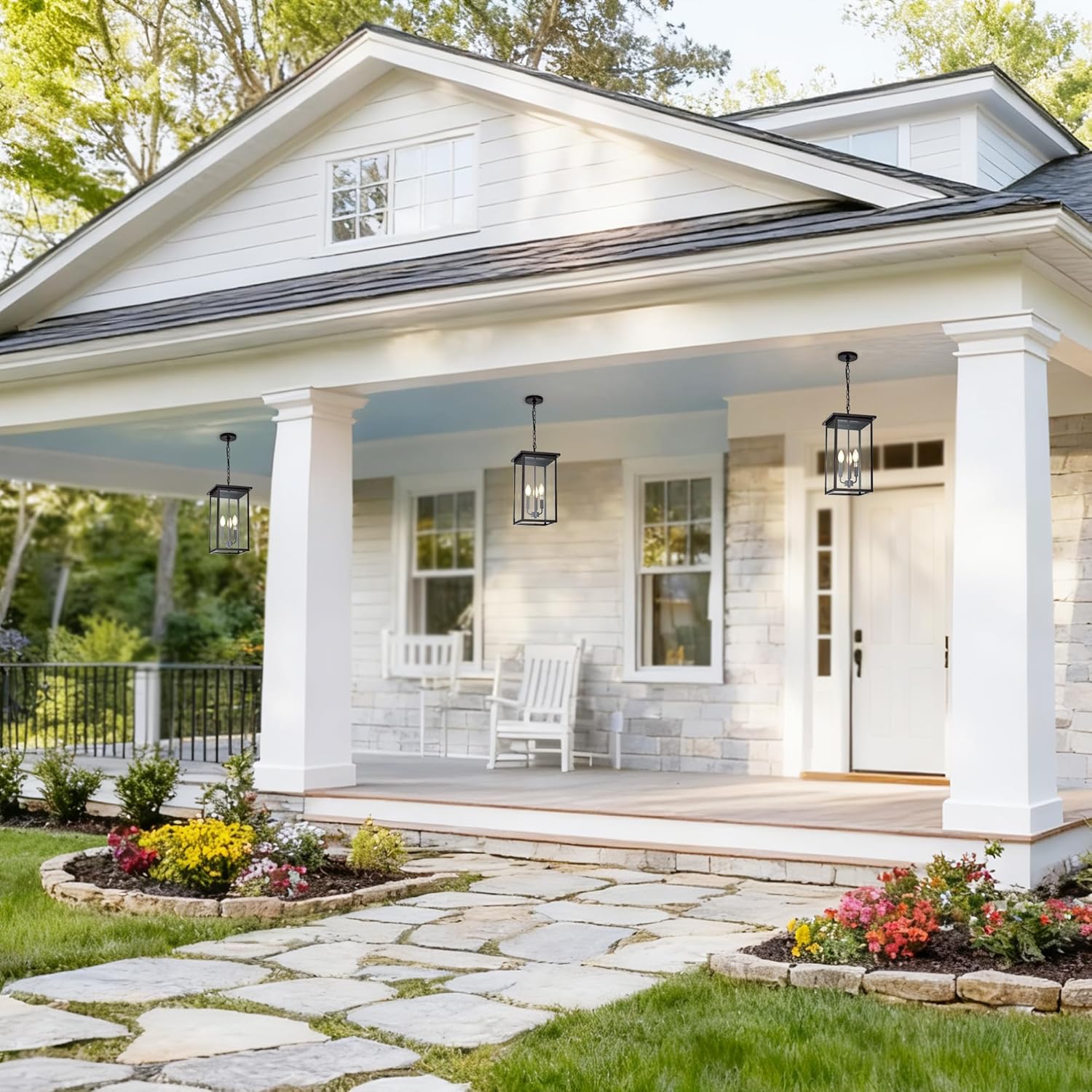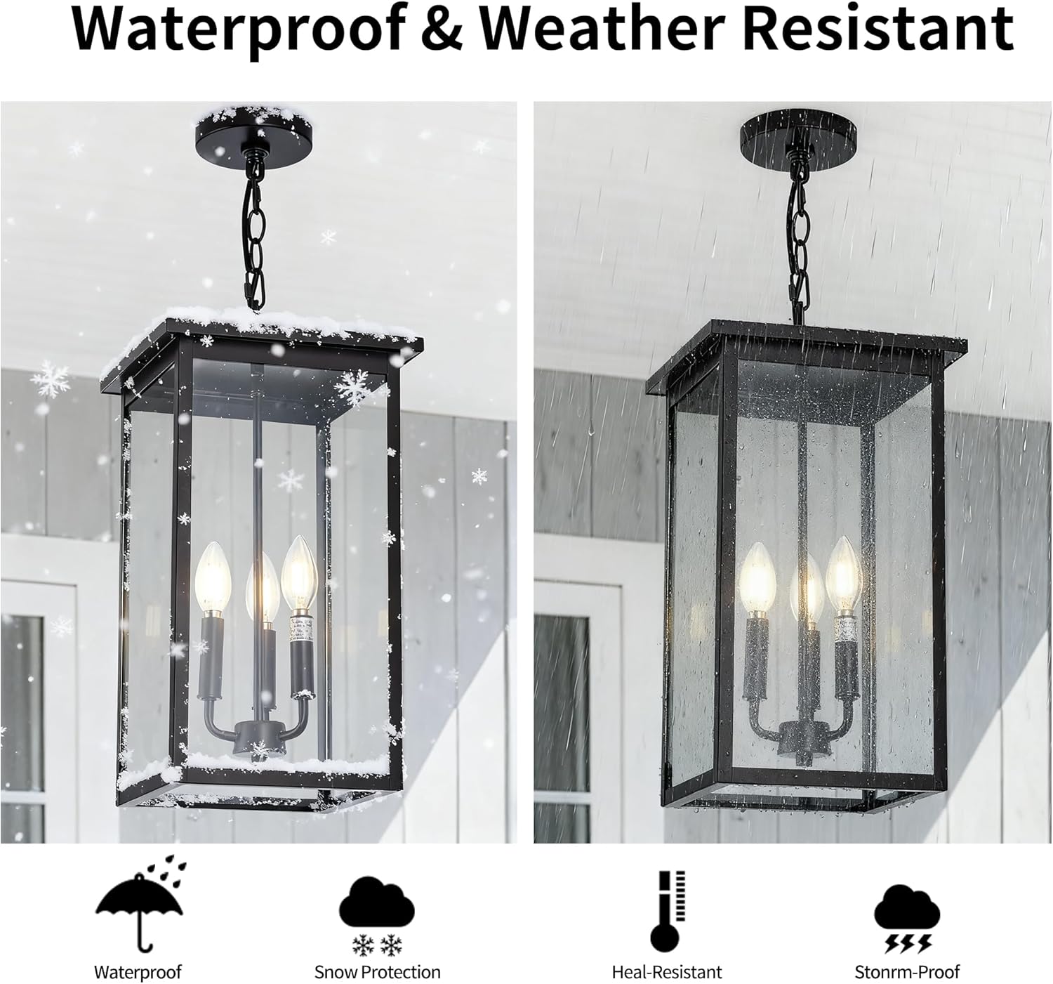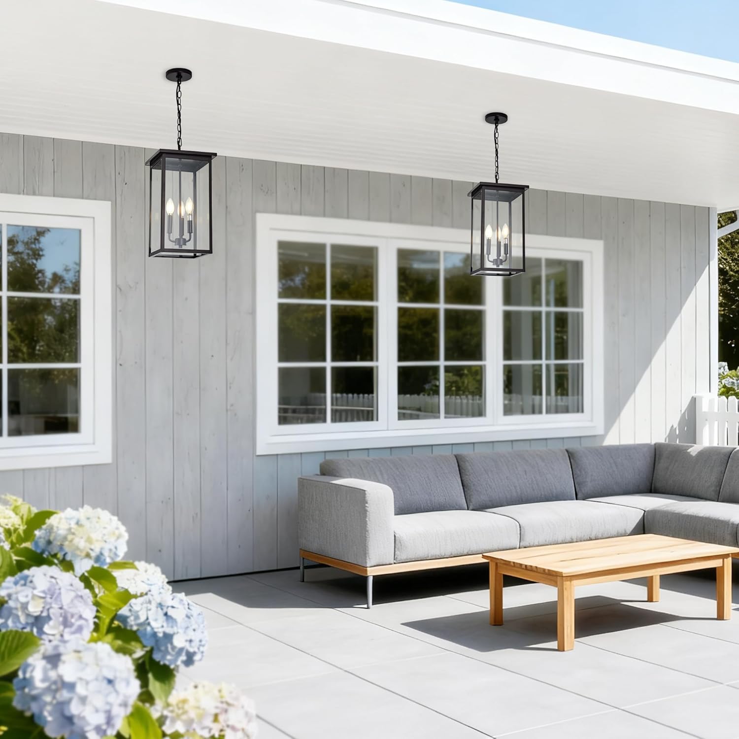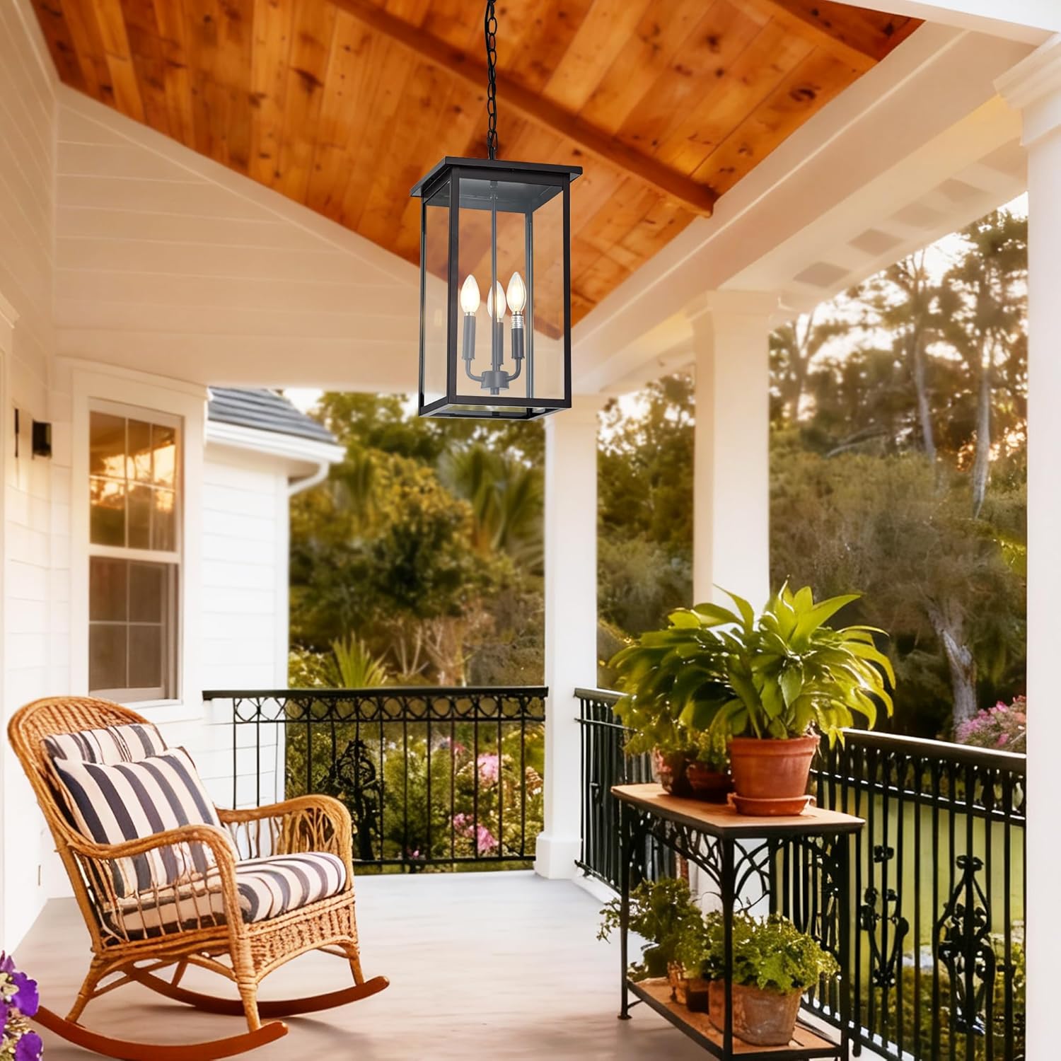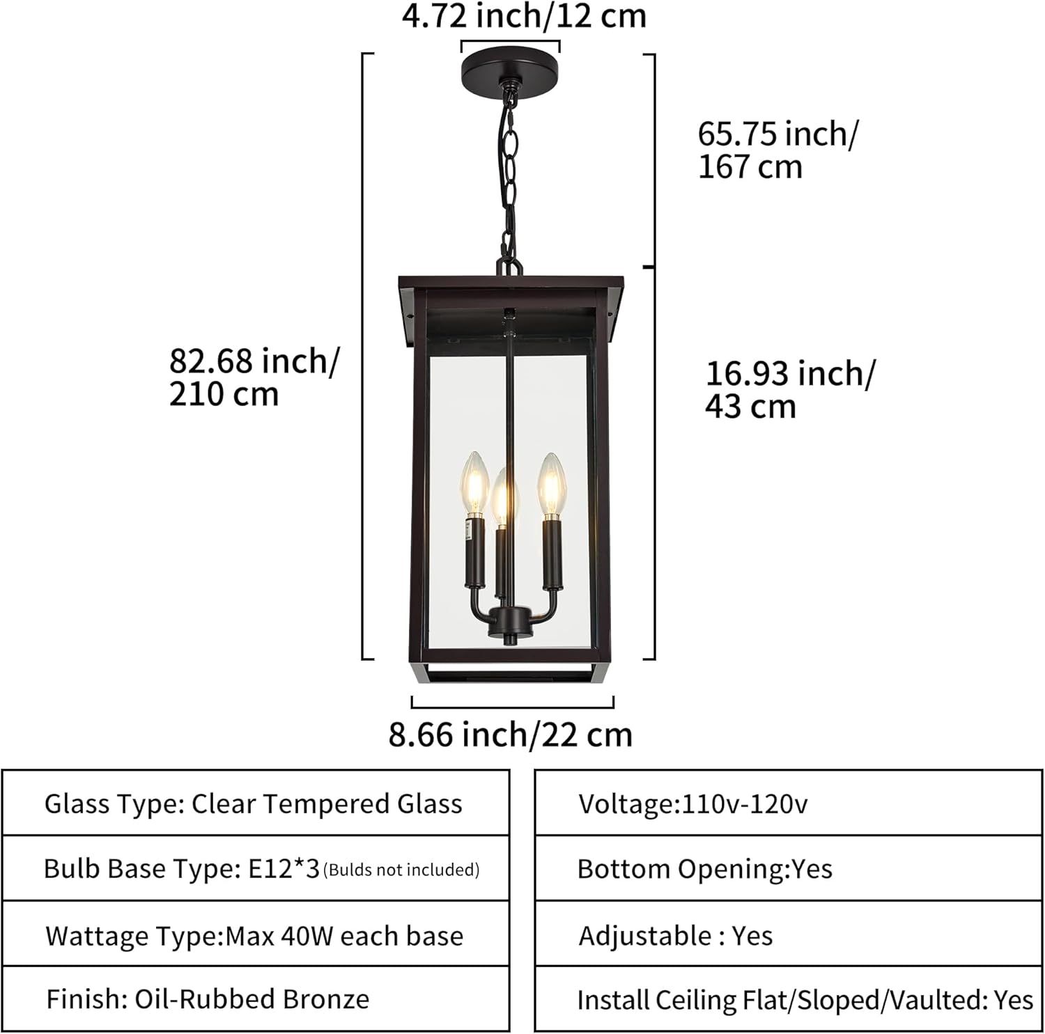 Easy to Install & E12 Bulb: Follow the steps in the manual and the installation will be completed in a few minutes. It is compatible with various E12 bulbs(max 40W, bulb not included). This hanging porch light is suitable for patio, backyard, garden, etc