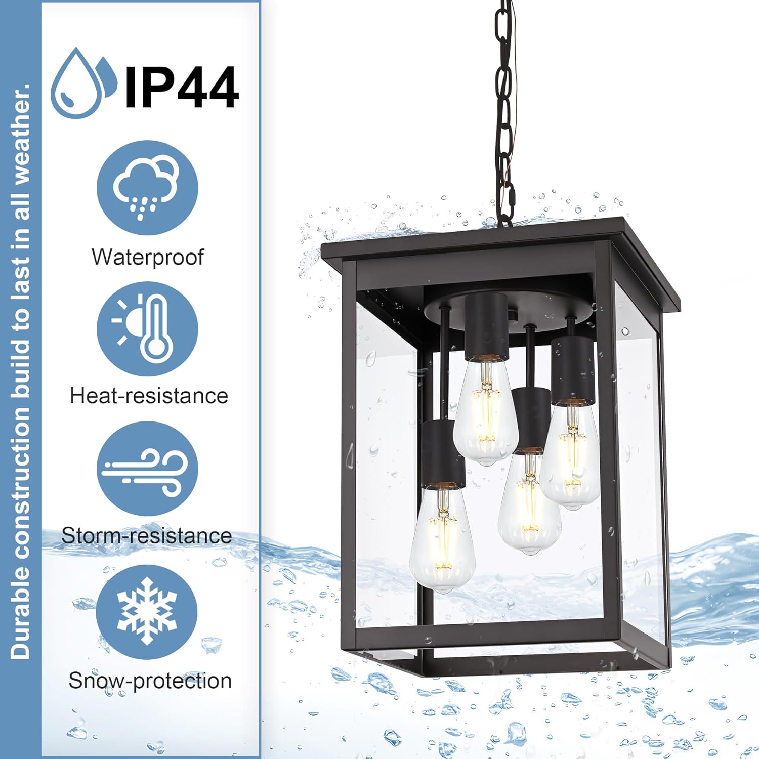 WEATHER RESISTANCE – Made of sturdy iron, toughened glass and finished with waterproof coating, this outdoor pendant light has excellent weather resistant and rust resistant, no restriction of where you set it up