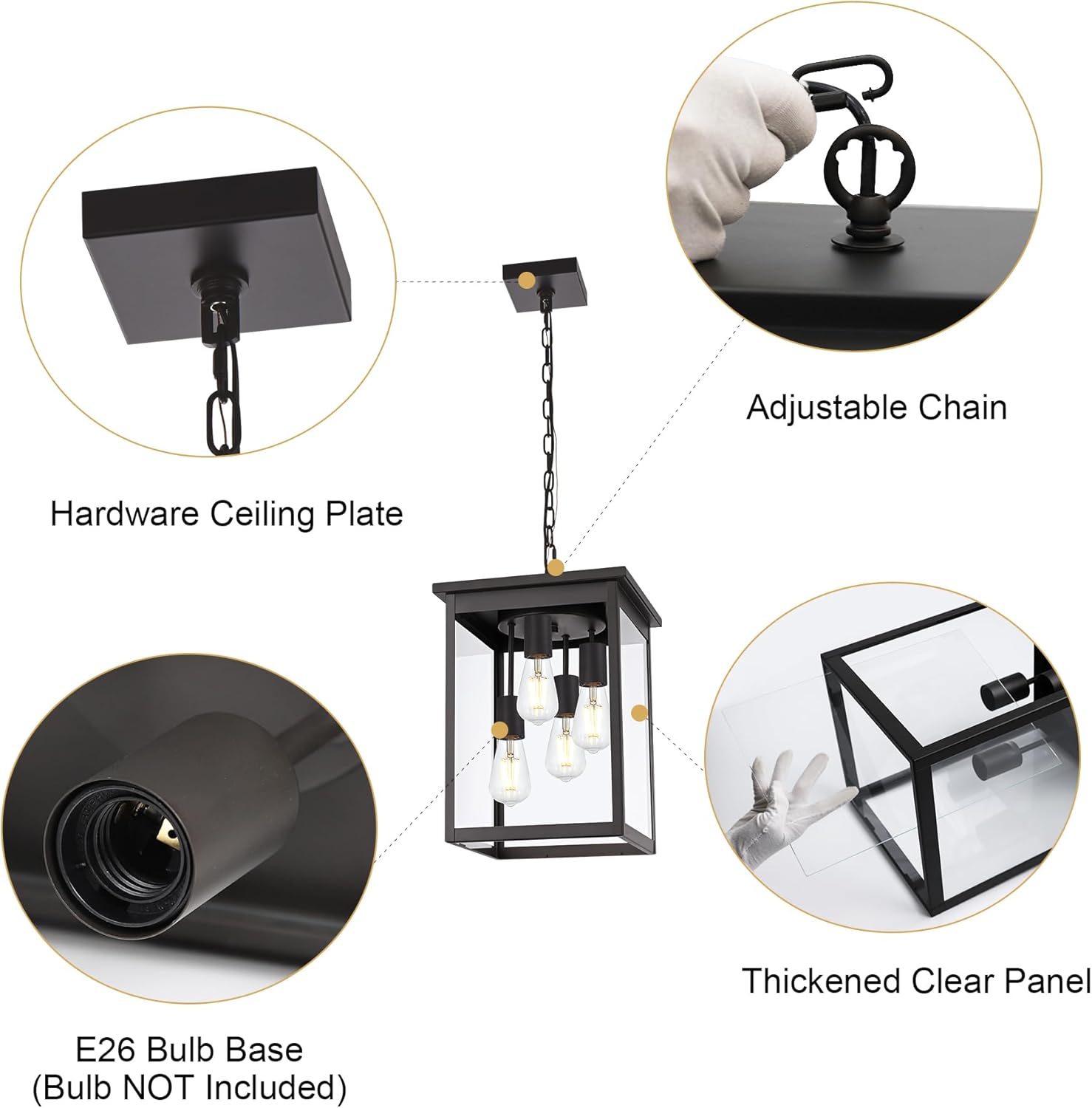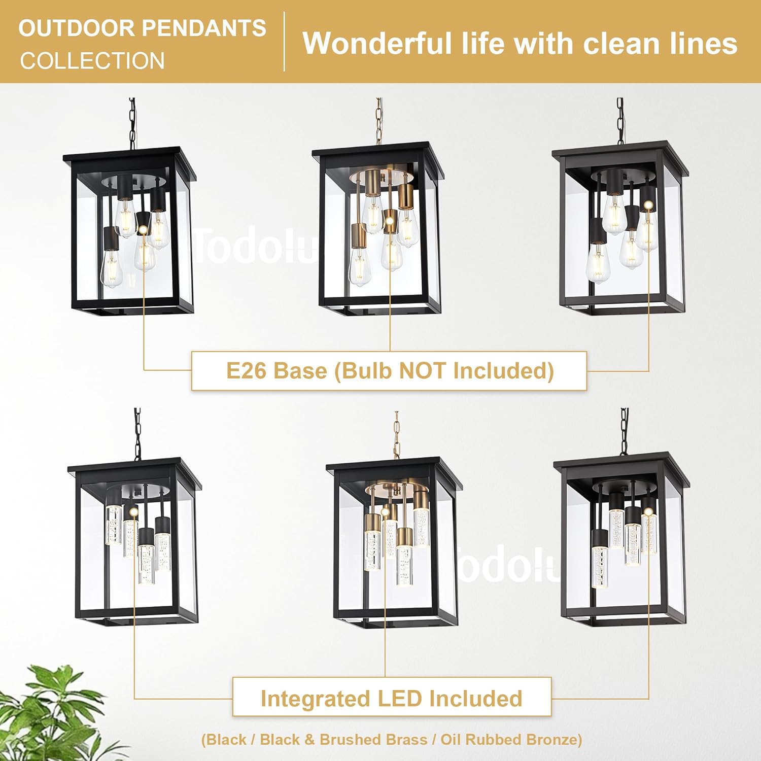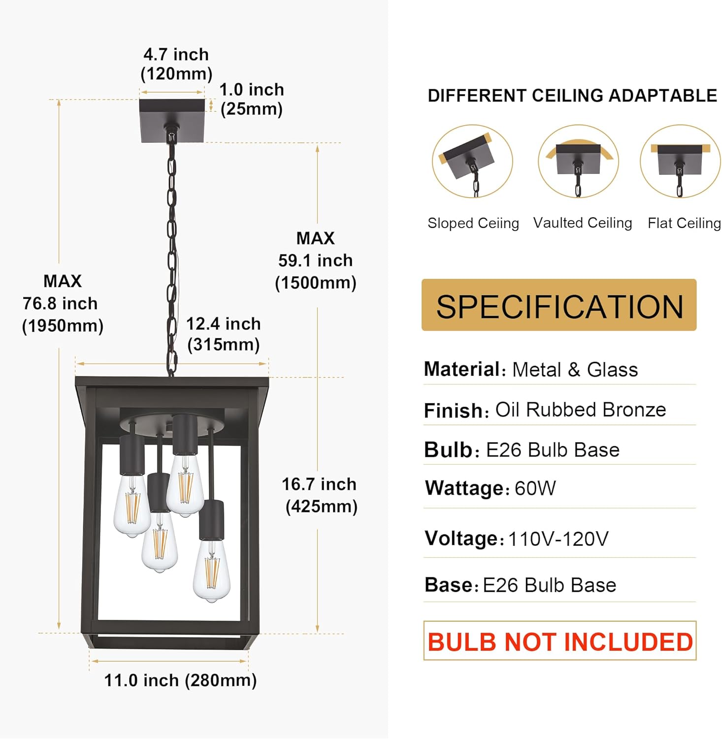 BULB REQUIREMENT – This outdoor pendant light is fully compatible with various E26 bulbs, such as LED, Incandescent, CFL Bulbs, etc. (Max 60W, Bulb NOT Included)
