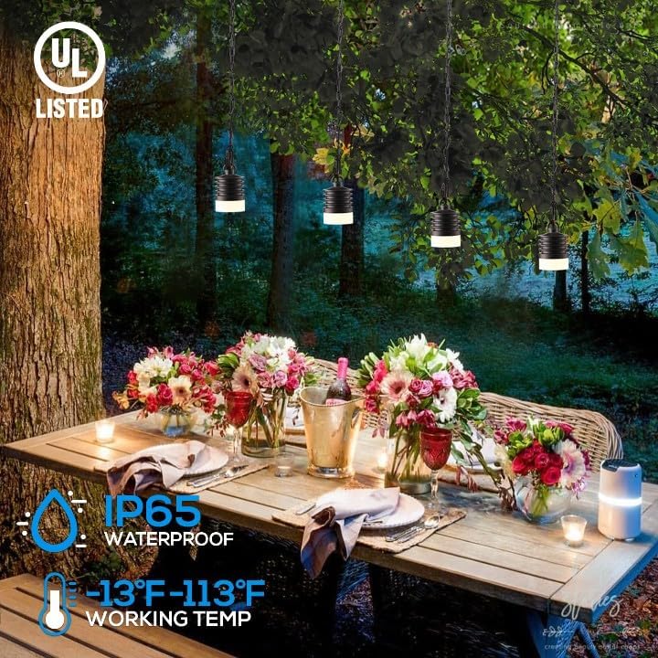 Low-Voltage Design: This 12V pendant light provides safe, steady lighting for gardens and courtyards. It operates in temperatures from -13℉ to 113℉, offering a 2700K soft white glow. Ideal for outdoor use, it withstands harsh weather conditions effectively