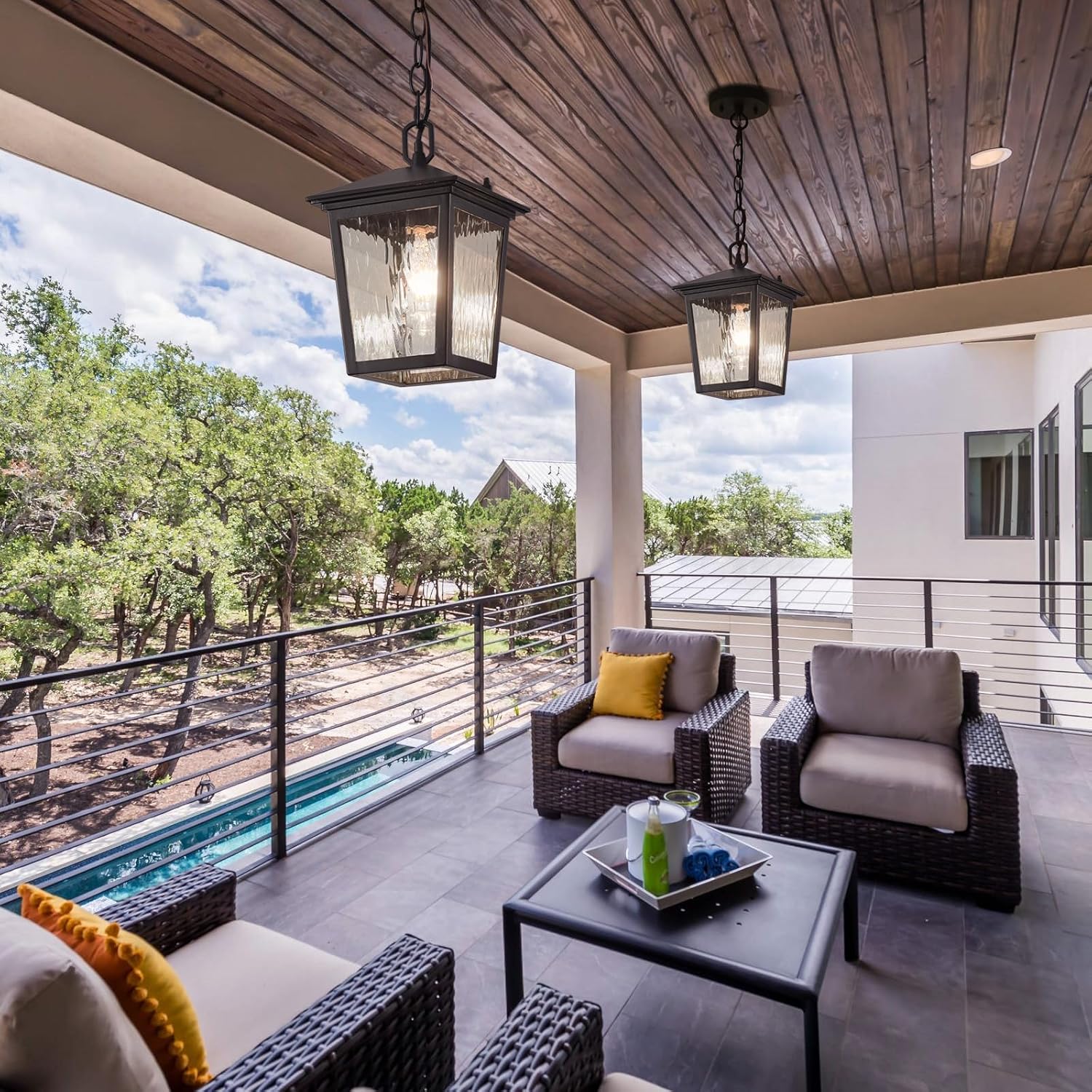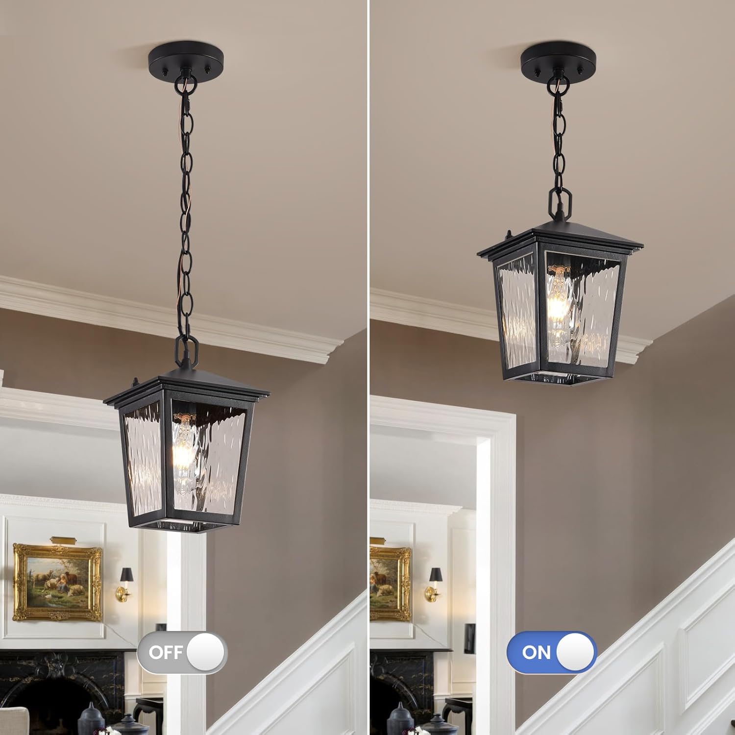[ Height Adjustable & Slope Outdoor Lantern]: Our outdoor pendant light fixture has a 59-inch adjustable chain for you to choose the appropriate size. It allows you to customize the desired length of the outdoor hanging lights to adapt to different environments and personalized styles, Compatible with sloping ceilings