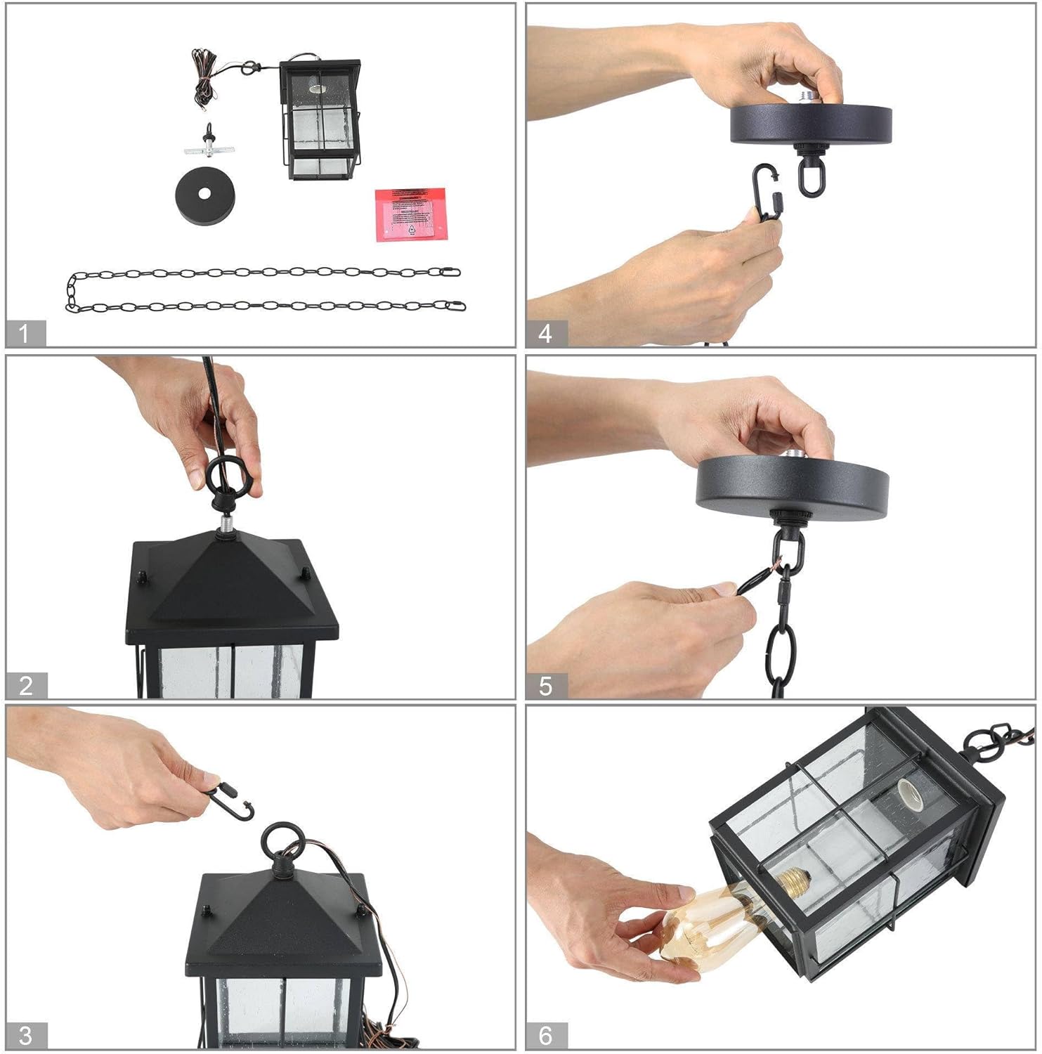 Easy Installation & Bulb Requirement: Open bottom design for easy bulb replacement. Comes with an assembly kit and detailed user manual, and the exterior hanging lanterns can be installed easily. The outside light fixtures need 1 x Max 60W bulb with an E26 base. Compatible with LED, CFL or Sensor Bulbs.