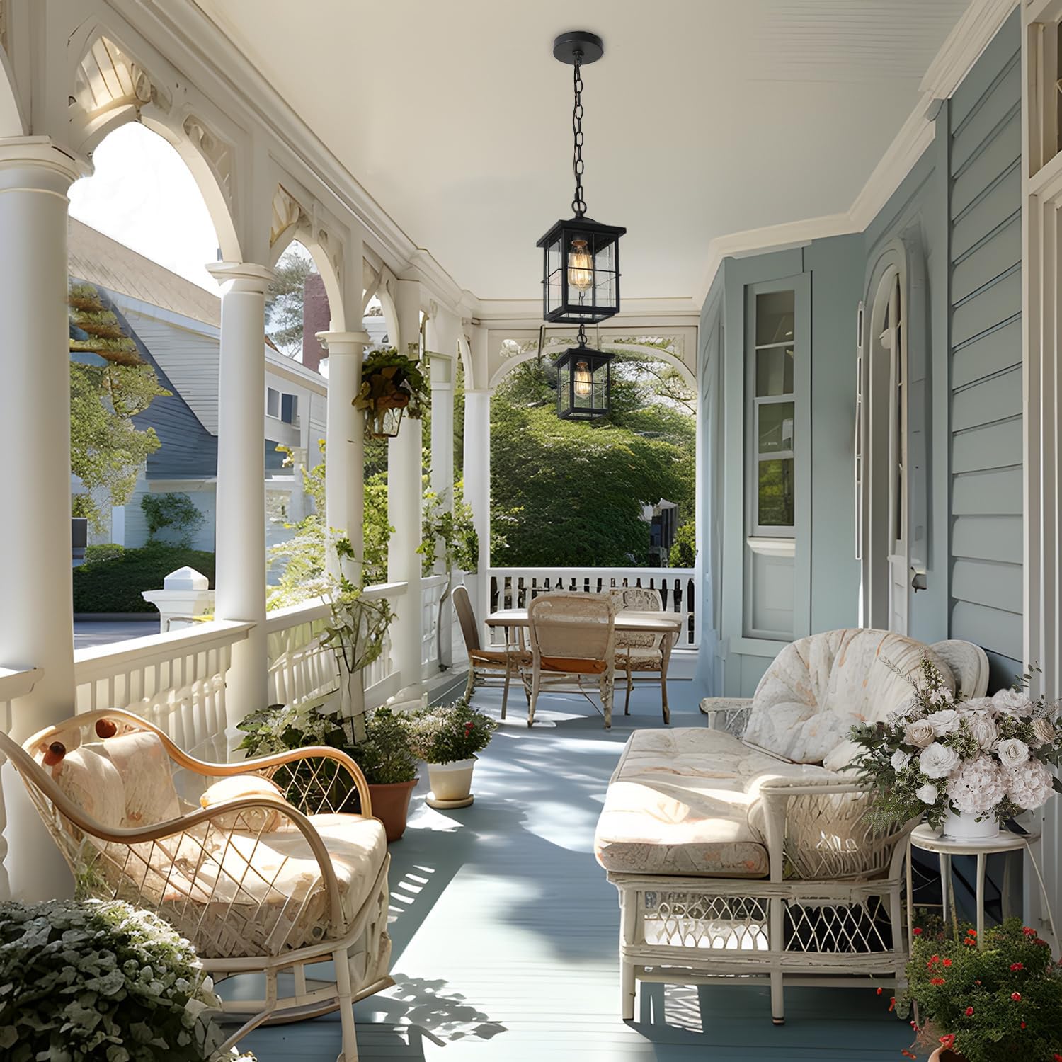 Notable Outdoor Performance: The outside pendant lights are made of premium anti-rust metal, finished with special corrosion-proof coating, and designed to brighten your outdoor life for decades. Multiple weather element tests have been passed by the outside light fixtures, like rain, snow, fog, or storm, enabling it to perform superbly in dry, wet, high, or low temp situations for a long time without worry.