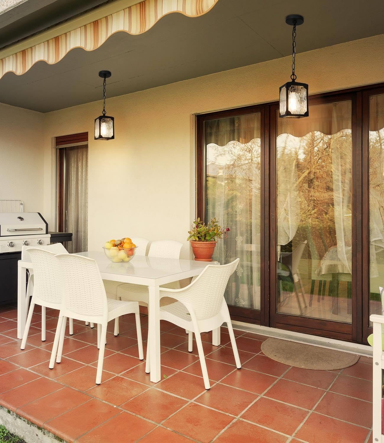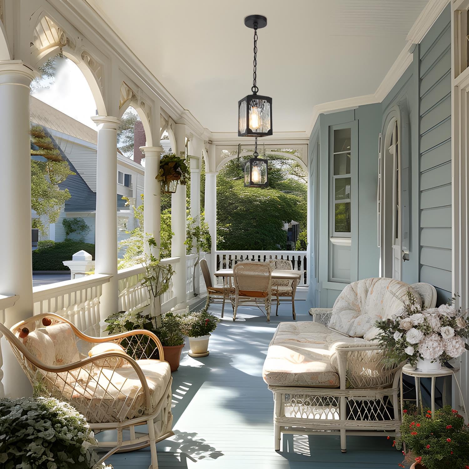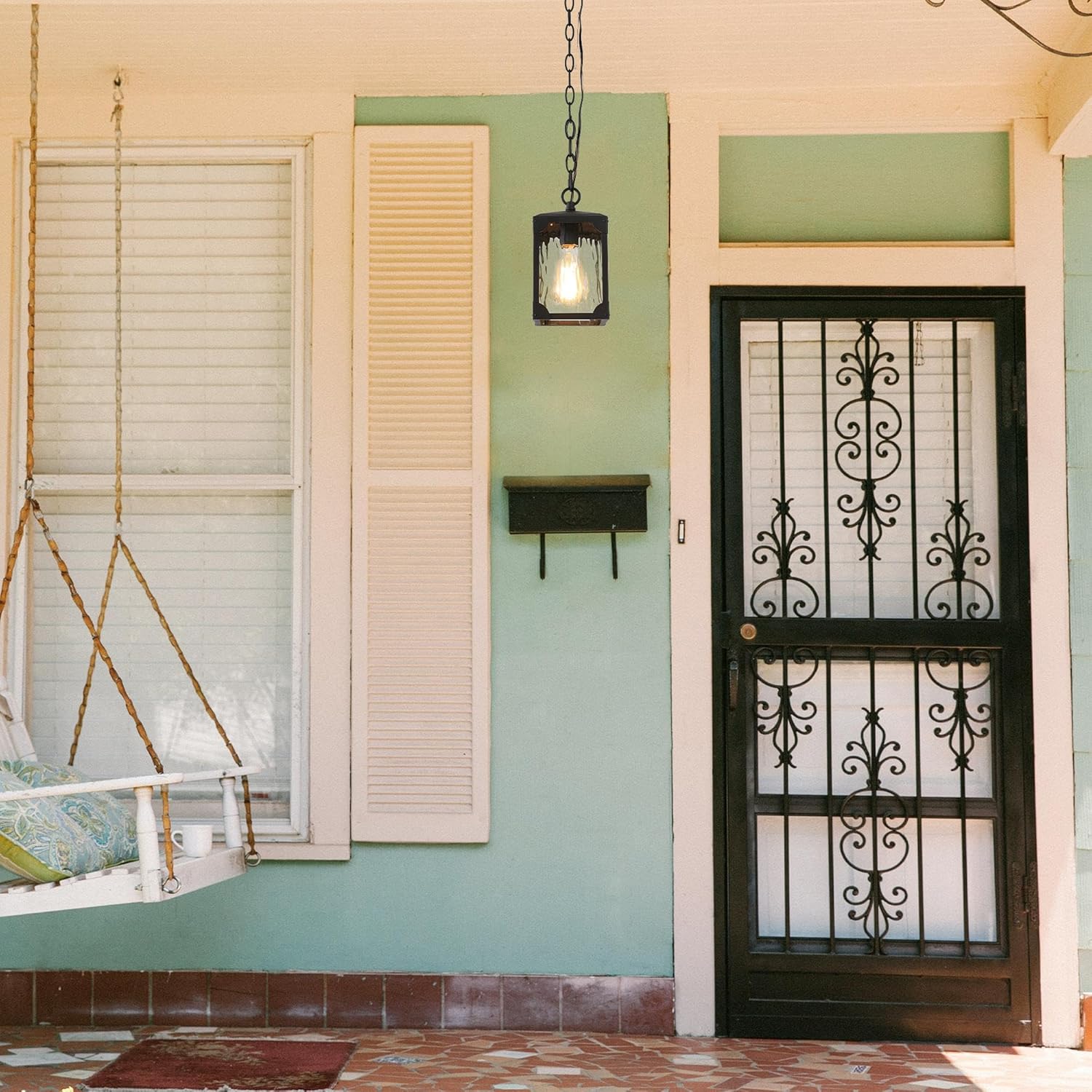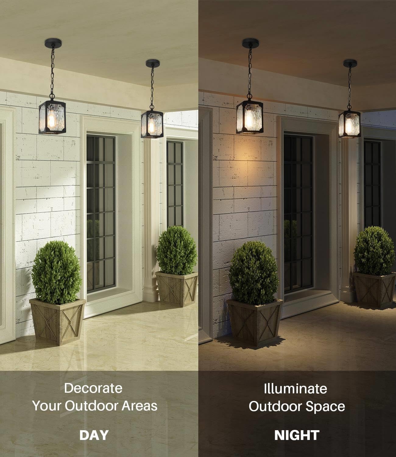 Rust-proof and Weather-proof: Made of high-quality metal and premium solid glass, the outside hanging lights can withstand all types of weather and are perfect for outdoor use. Through a multi-step high-temperature painting process and strong paint adhesion, no matter if it is rain or snow, high or low temperatures, the outside lights, will ensure good rust & water prevention and not easy discoloration for years.