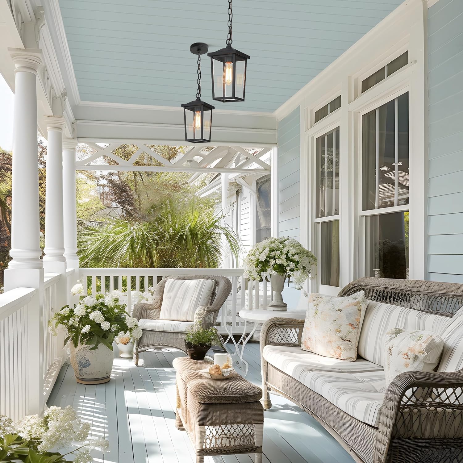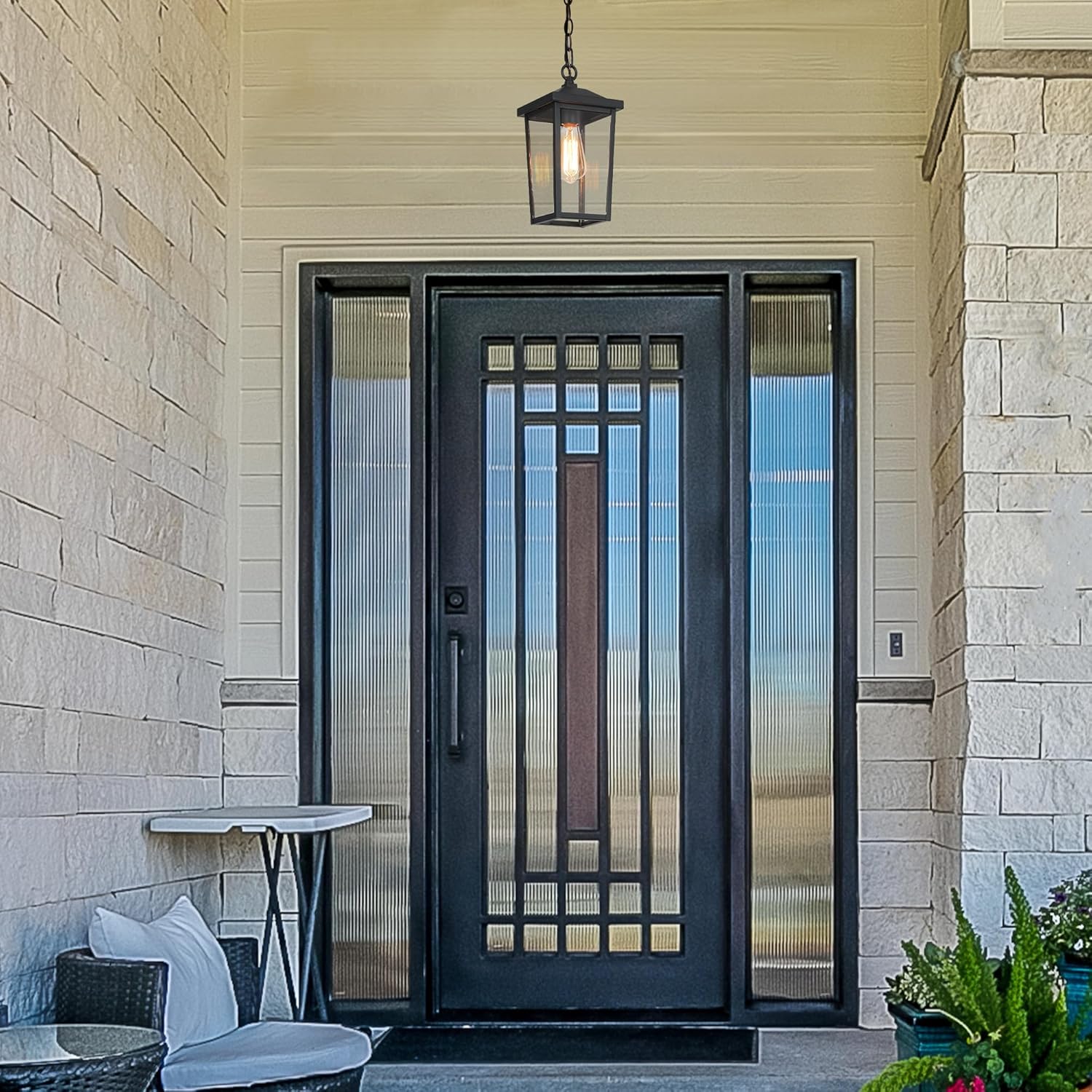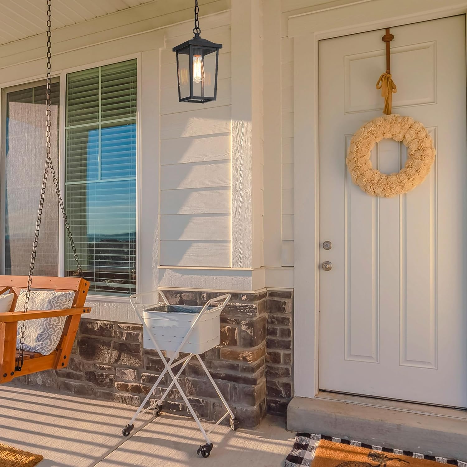 Notable Outdoor Performance: The outdoor hanging lights are made of high-quality metal material with a special corrosion-proof matte black coating and can withstand wind and sun, humidity, and darkness without rusting easily.