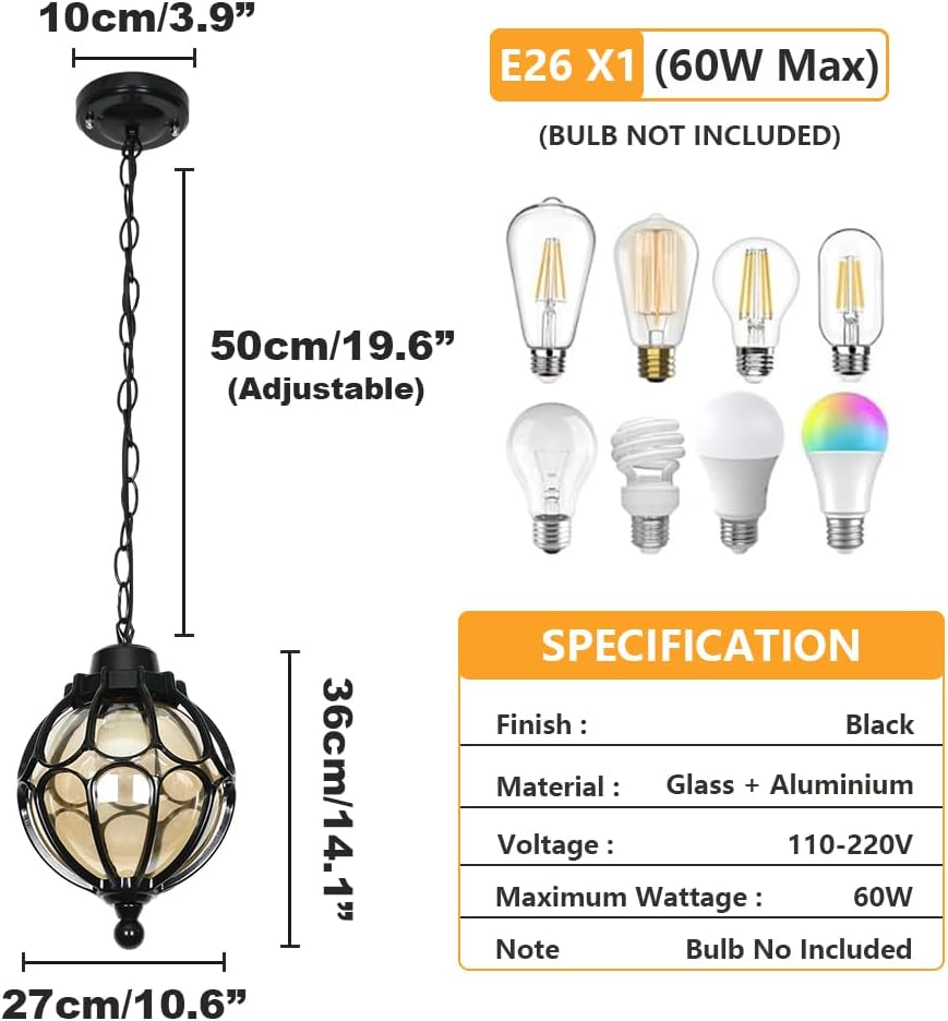 Easy Installation & Wide Application: Hard connection, can be safely installed on the ceiling. Essential mounting accessories included.Outdoor pendant lighting can be a great addition to your house, such as porch, patio, farmhouse, garage, courtyard, front door, backyard, hallway, balcony, garden, corridor, even indoors etc.