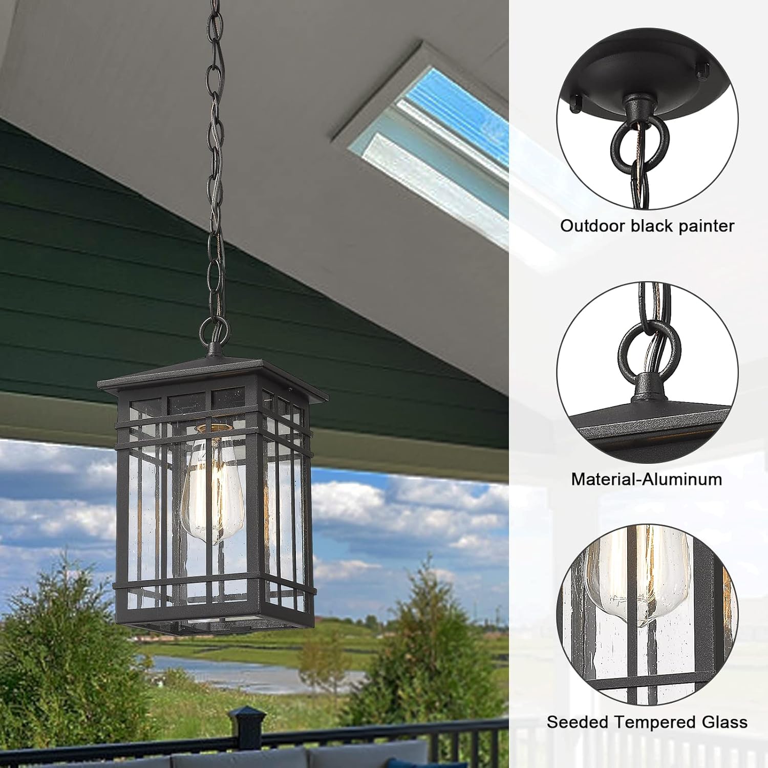 [Weather-Resistant and Durable Design]: Designed for outdoor & indoor use, this outdoor pendant light is completely weather-resistant, making it ideal for use in your front door, porch, patio, entryway, garage, and more. Its sturdy construction ensures long-lasting use in any weather condition.