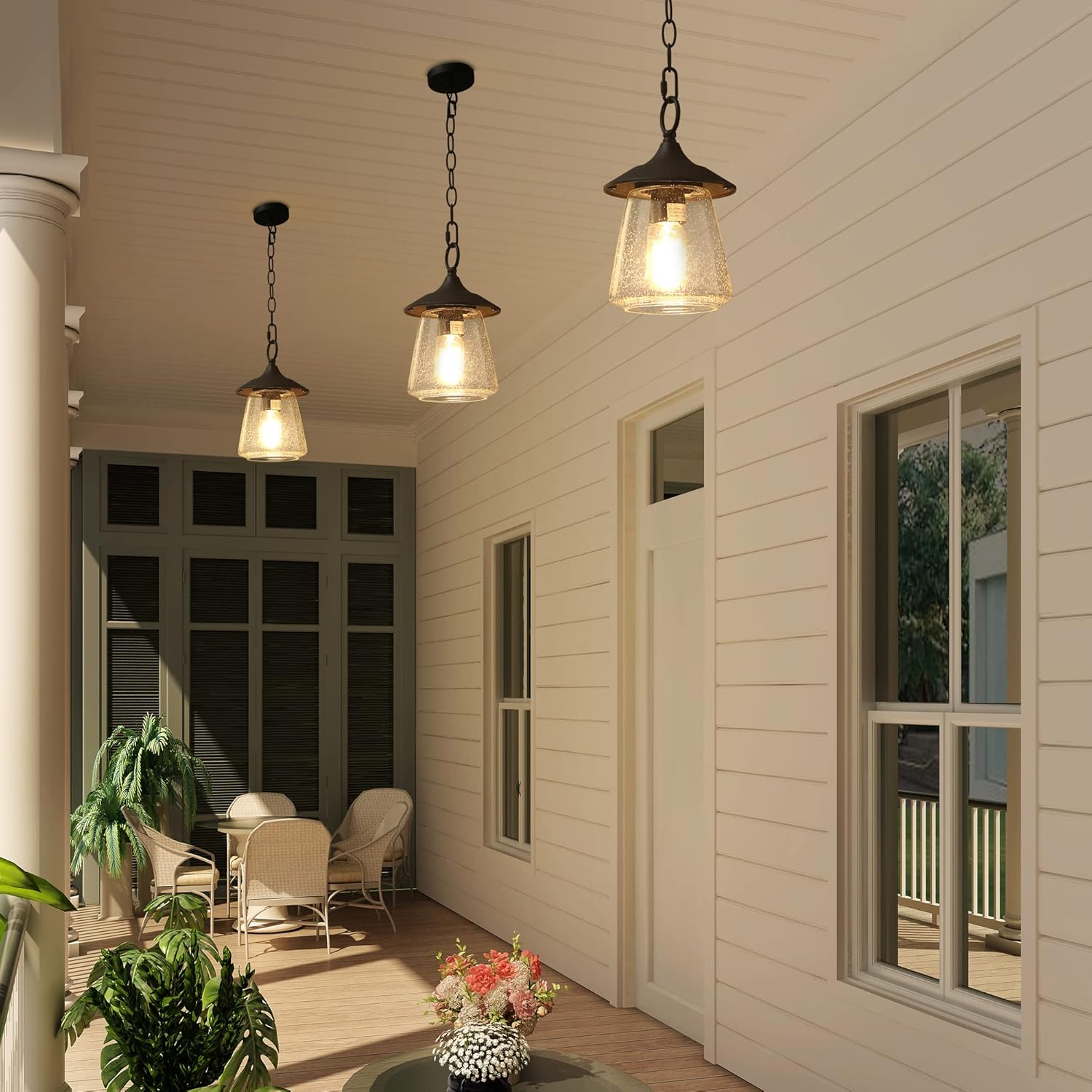 ❃ [FARMHOUSE HANGING PORCH LIGHT] – Farmhouse-look outdoor lights have tiny bubbles in the glass softly diffuses the light and gives you the look of old glass while the black metal is appealing it, just like what would be in an old farmhouse.