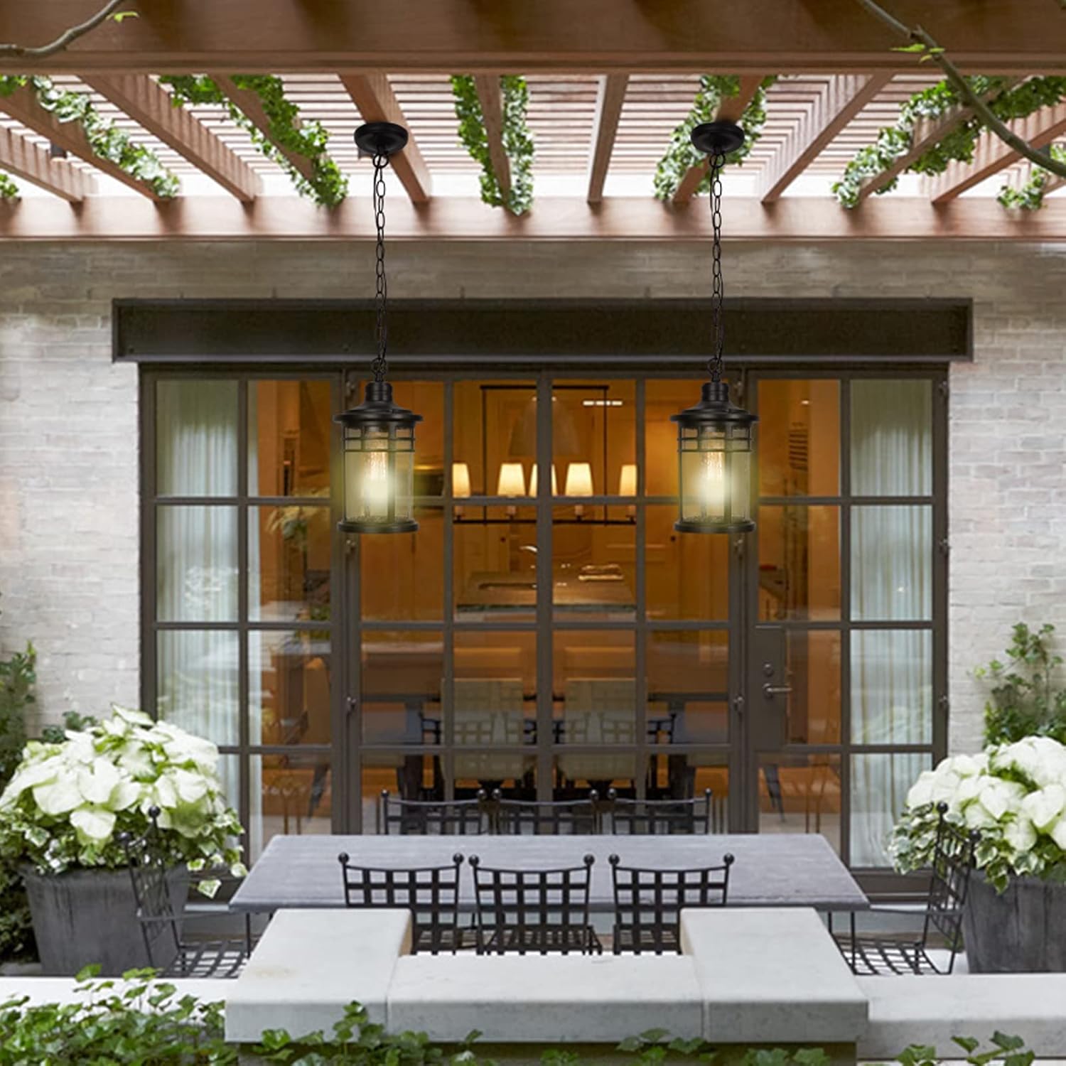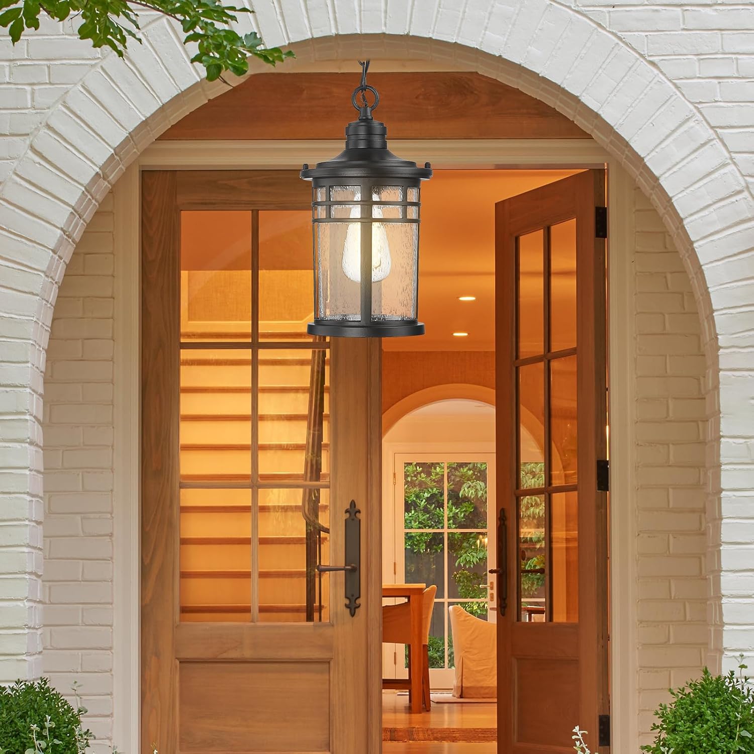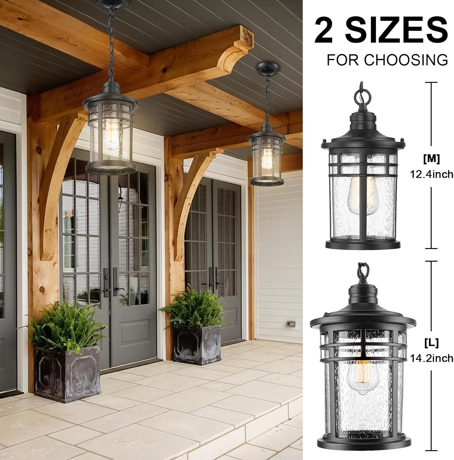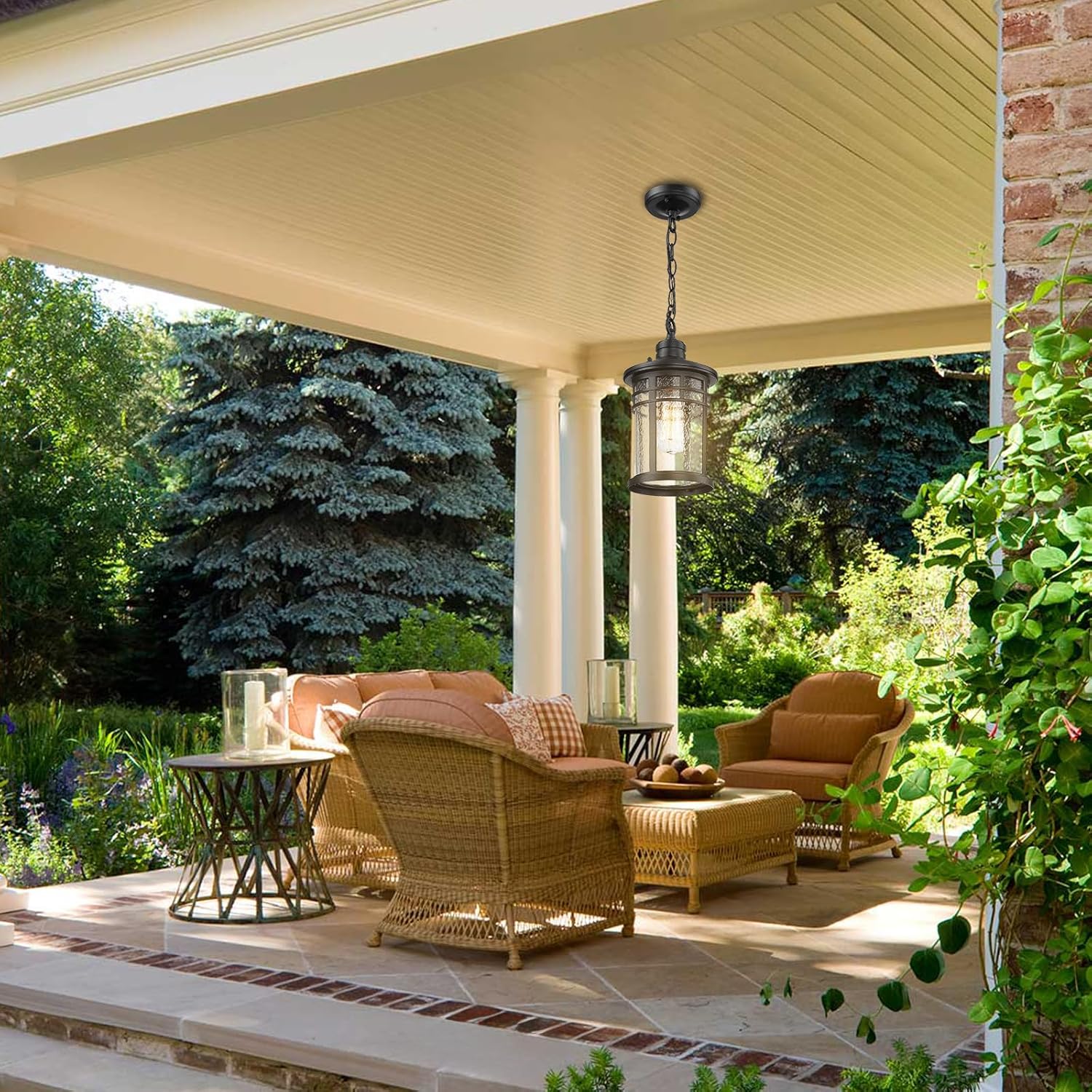 WEATHER RESISTANT – This outdoor pendant hanging lantern crafted of durable aluminum metal and seeded glass, require little to no maintenance. Rust-proof, waterproof, shock-resistant and thermally stable, don’t worry about any bad weather.
