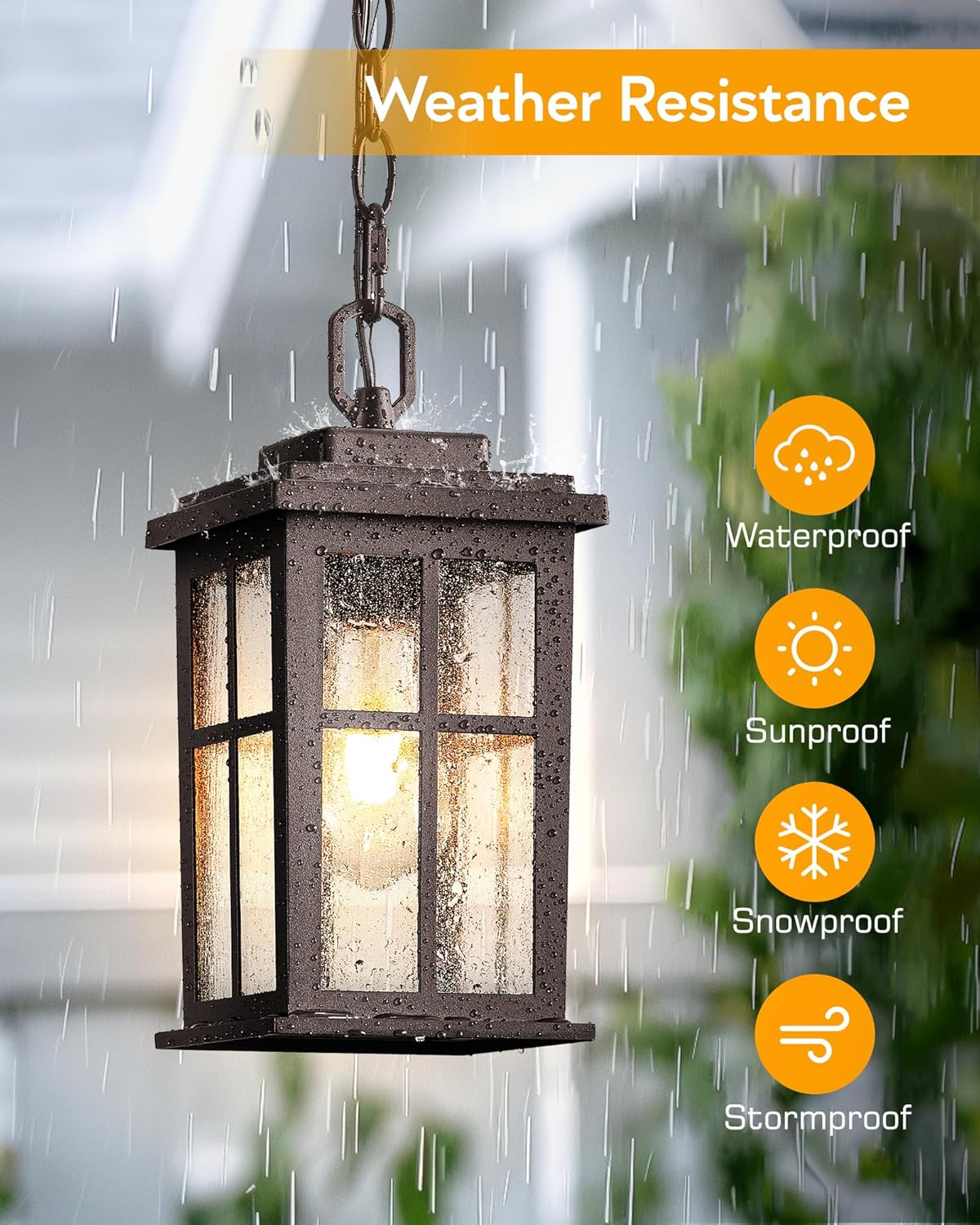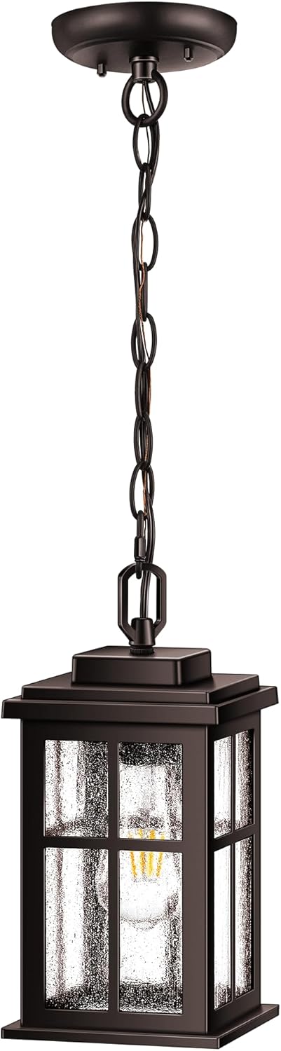 Anti-Rust & Seeded Tempered Glass:Our porch lights outdoor chandelier is 100% Aluminum with a black matte finish. These outdoor hanging light fixture are waterproof, anti-rustic, and weather resistant. Unlike other fragile glass panels, our ceiling mount outdoor lights take high-strength tempered glass, sturdy enough and durable. These outdoor decorative outdoor chain light can provide light where needed most for outdoor steps and porch entries.