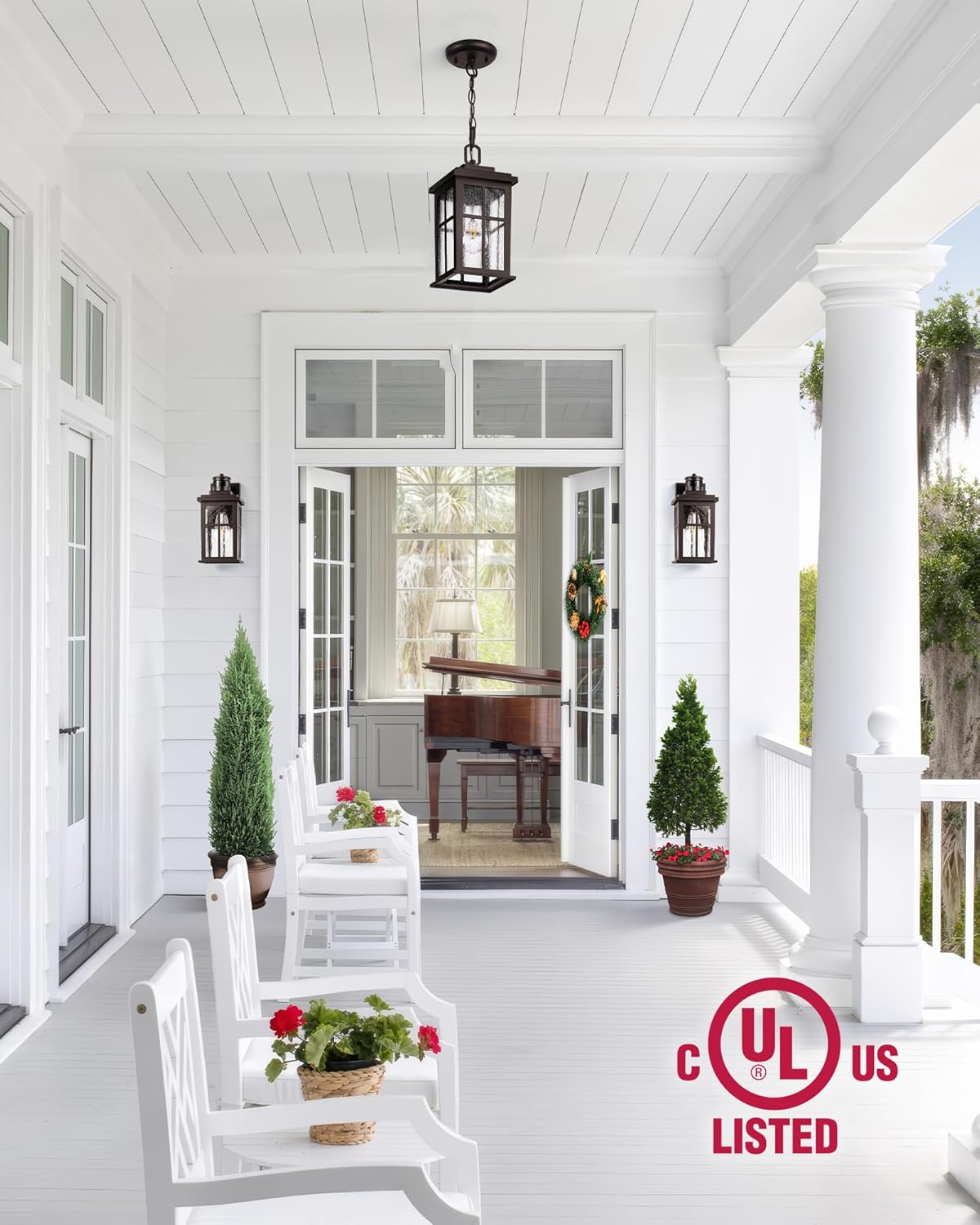 UL Certification listed & Premium Service:Our exterior lights are designed to meet strict UL safety standards, ensure your home and family stay safe. Our front porch hanging light fixtures are designed to meet strict safety standards, ensure your home and family stay safe. We prioritize the quality of our outdoor light fixtures and customer satisfaction. You can have complete peace of mind. If you have any questions or concerns, please feel free to contact us.