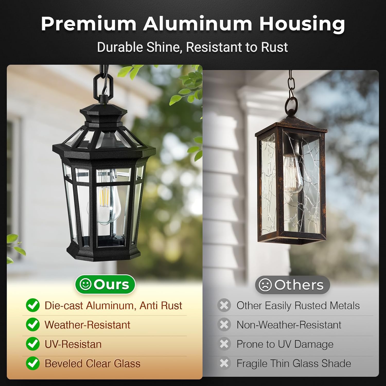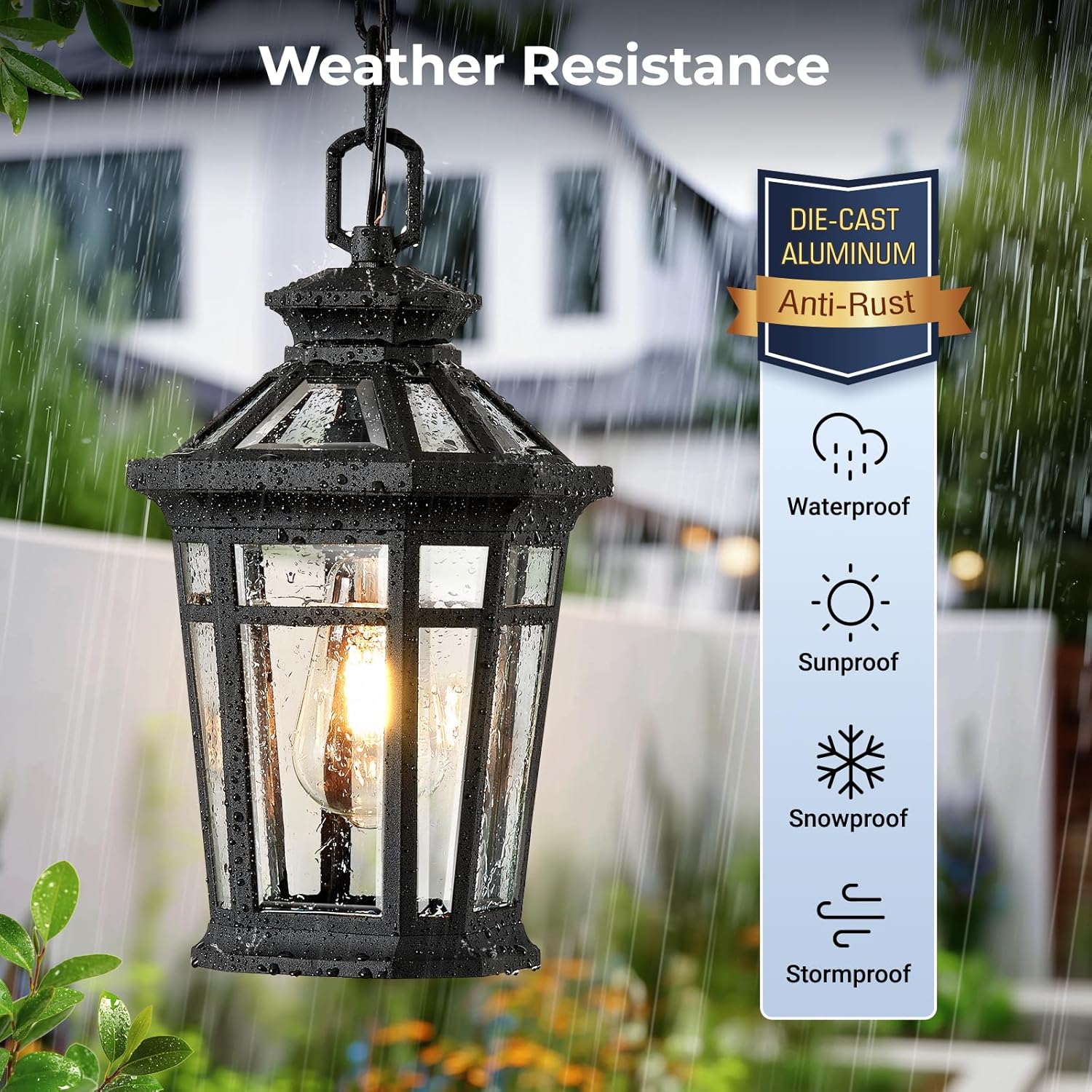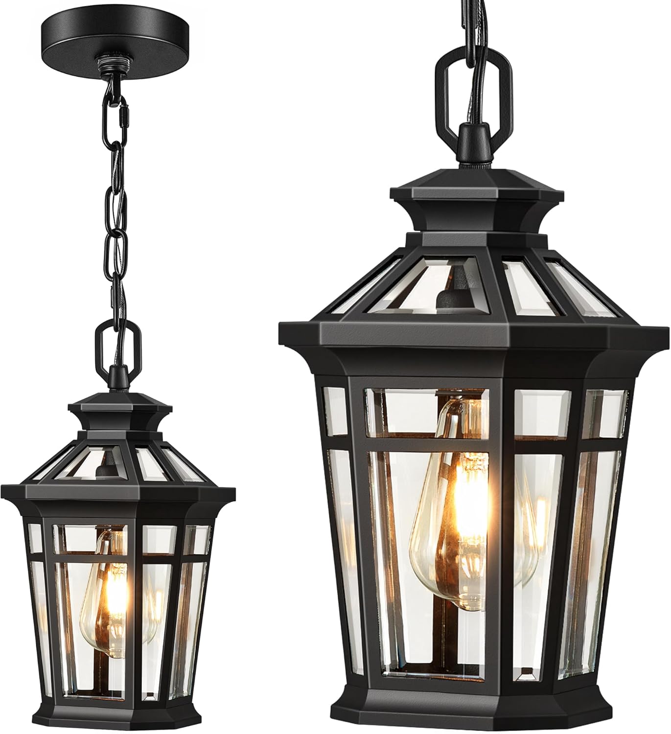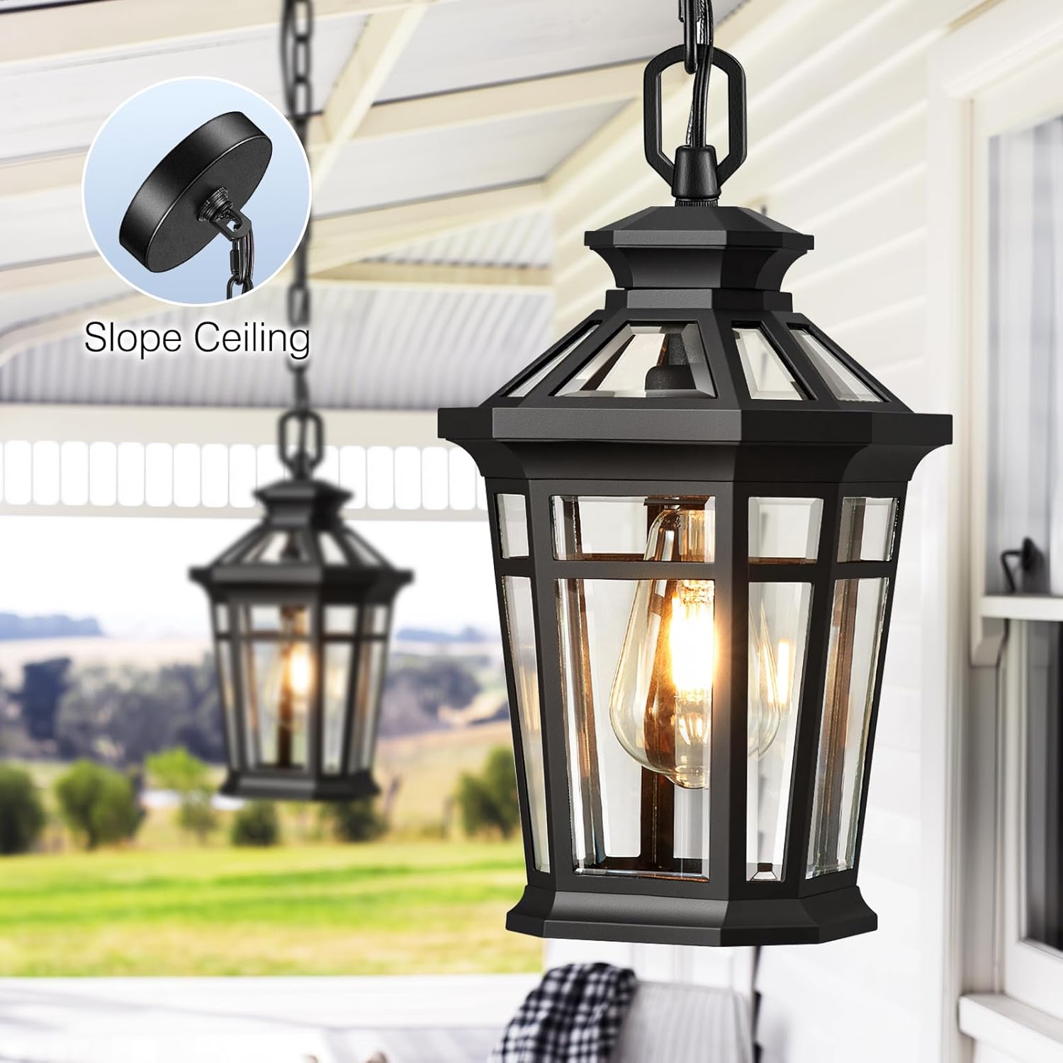 Easy to Install & E26 Bulb:Our hanging porch light is easy to install, no specialized skills or tools are required, follow the step by step instructions and the installation can be completed in minutes. The hanging lamp is highly compatible with a wide range of E26 bulbs up to 100 watts (LED bulbs up to 10w). (Bulb Not Included).