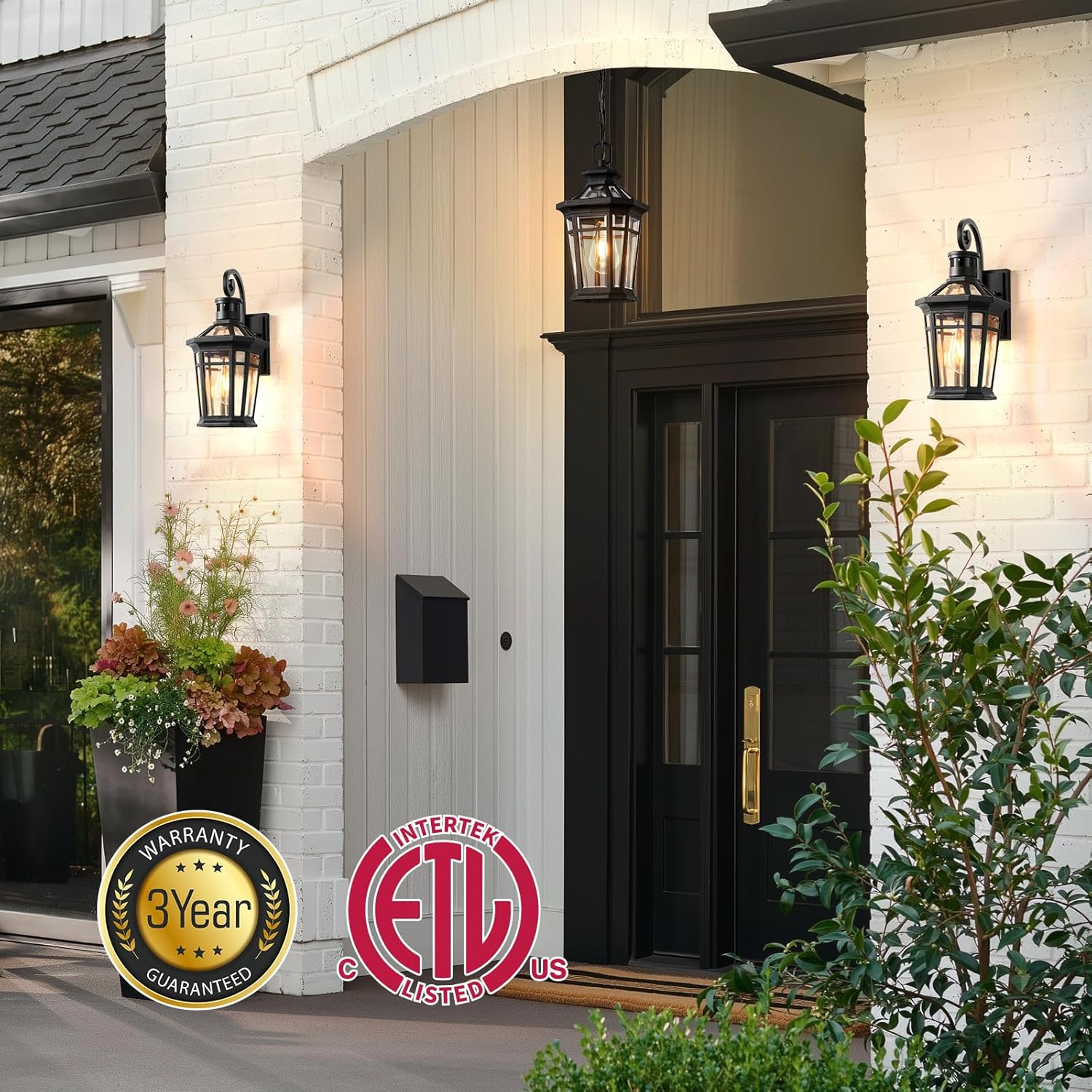 Distinctive Design: front entry light fixtures features a striking matte black finish and tempered beveled glass that blend seamlessly with a variety of decor styles. The beveled glass elegantly showcases the light, enhances the charm of the outdoor space. Perfect as an outdoor welcome or security light for lighting your porch, garden, yard, patio, garage, coach, driveway, entryway, carriage and more.