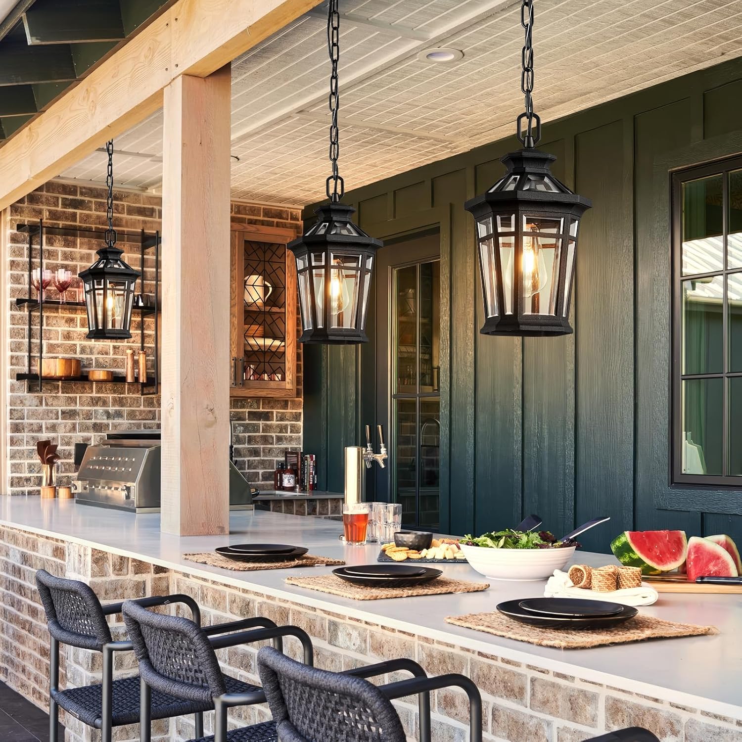 Adjustable & Versatile:Our pendant light fixtures come with an adjustable chain reaching up to 59 inches, allowing you to customize the hanging height to suit your ceiling height and personal design preferences. This flexibility allows the outside chandelier light to hang at the perfect height and adapt to flat or sloped ceilings, providing optimal lighting and visual appeal to any space.