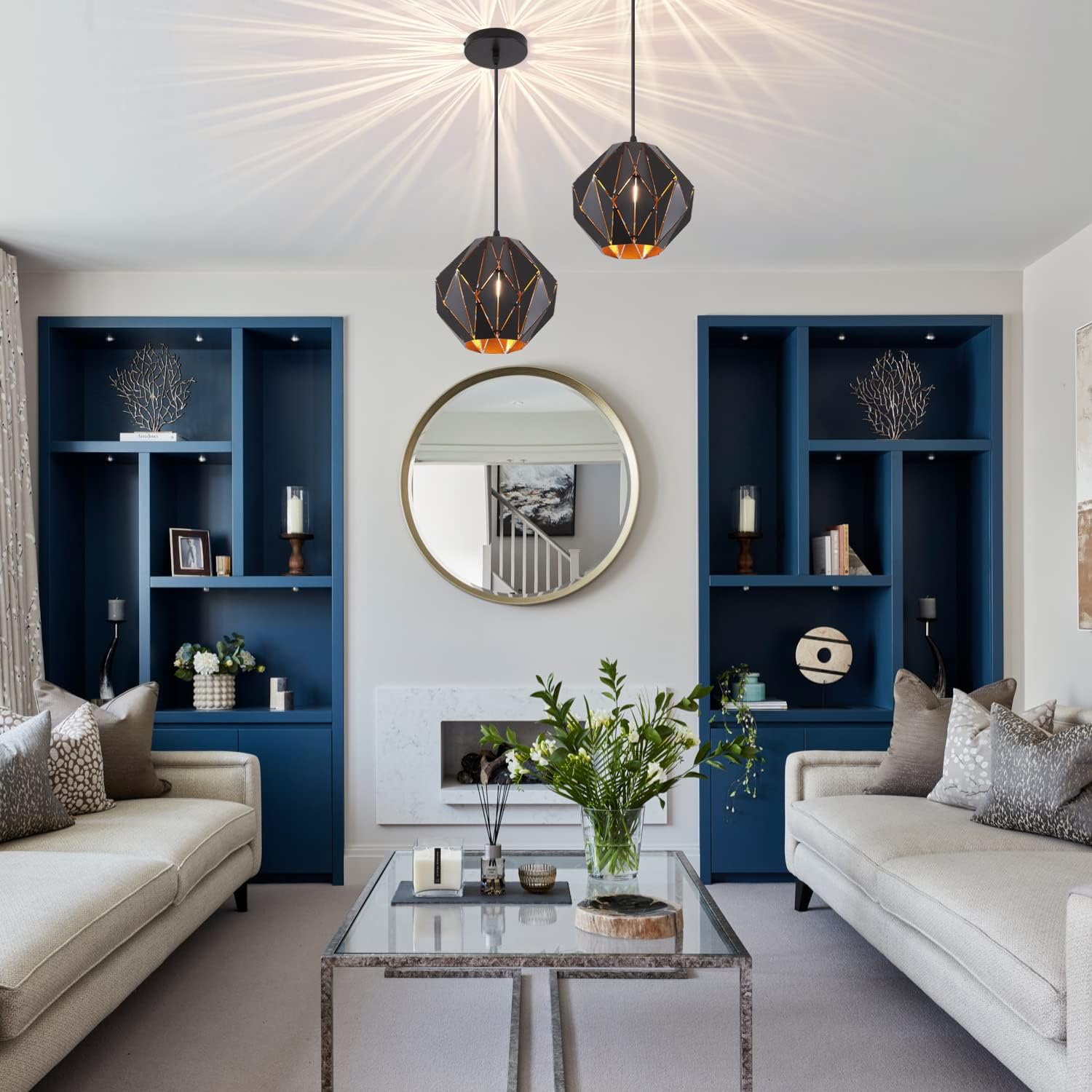 【Applicable Scene】The diamond-shaped geometric hanging light with retro industrial style brings unique charm to the home environment. The ceiling hanging lights are widely used in the living room, dining room, aisle, island, bedroom, kitchen, farmhouse, ideal for indoor and outdoor decoration.