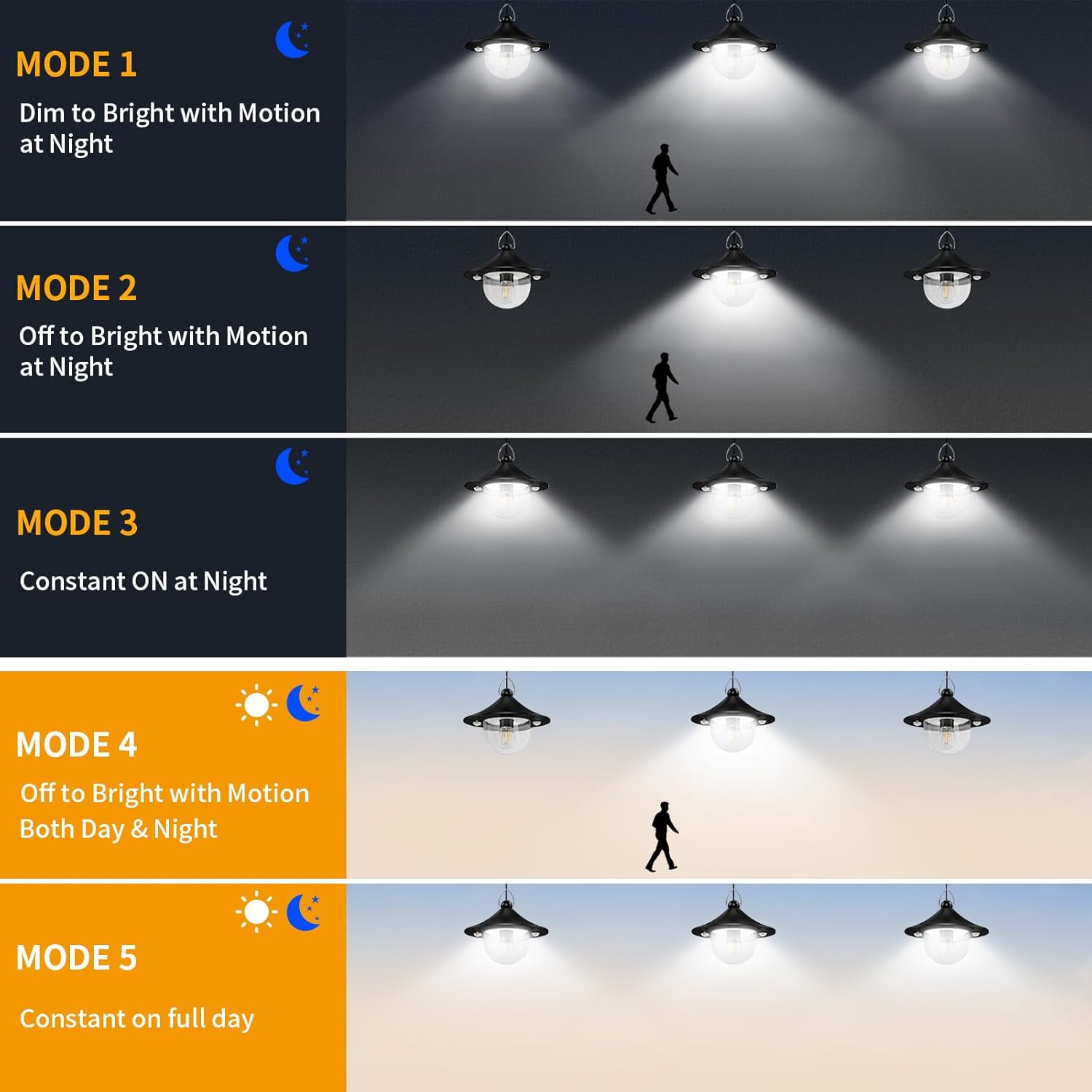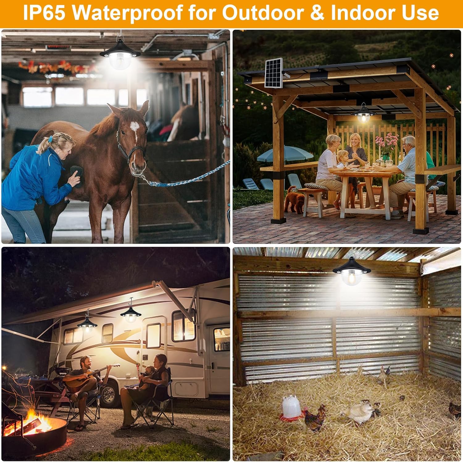 Use It Outdoors & Indoors: Built to withstand the elements, these solar pendant lights are sturdy and weather-resistant, perfect for year-round outdoor use. The 16.5 ft long wires provide flexibility in placement, ensuring you can achieve the perfect lighting arrangement for indoor space as well. You can effortlessly hang it anywhere, transforming your barn, shed, farmhouse, coop, livestock shelter, storage room, shop, garage, cabin, gazebo, container, van or porch into a picturesque setting.
