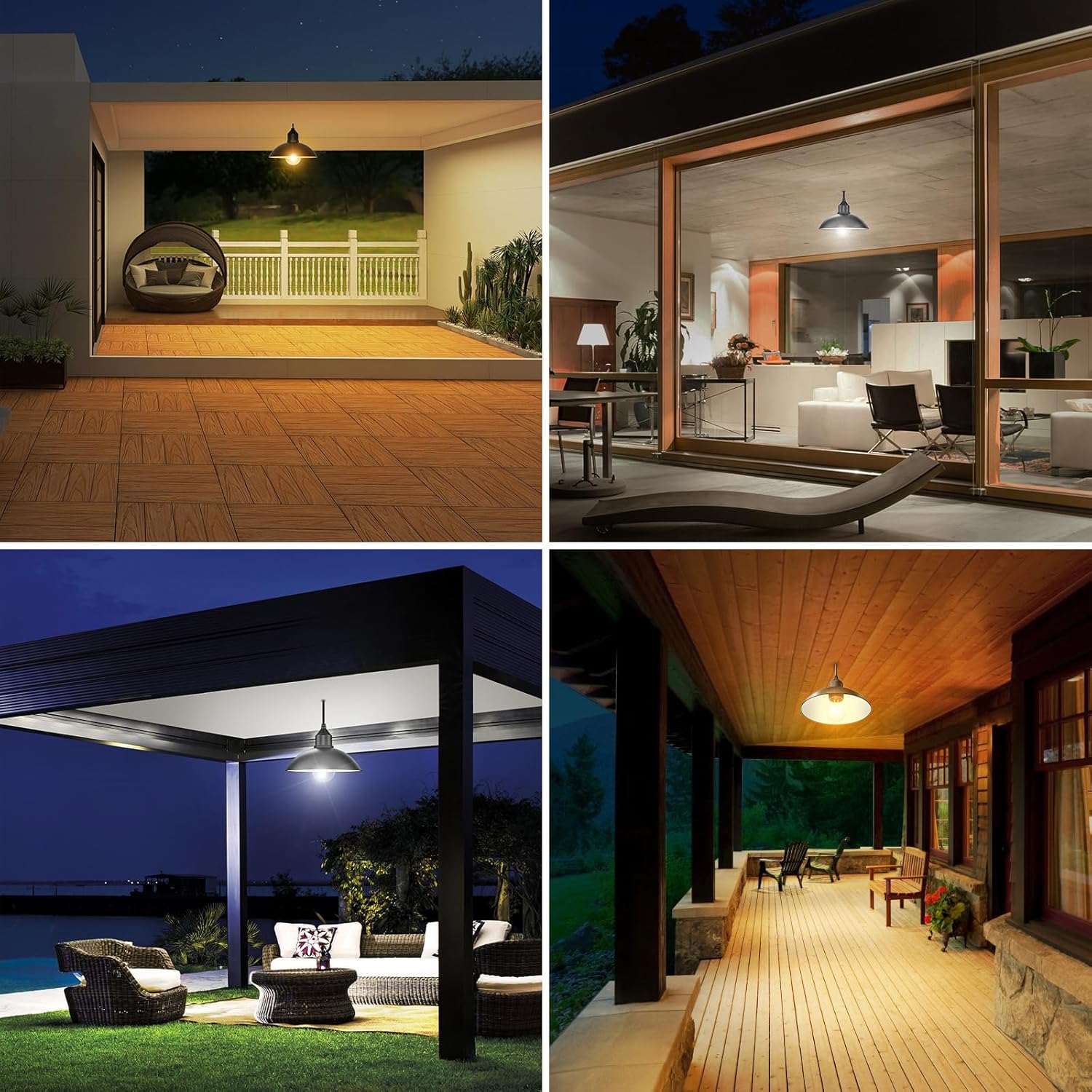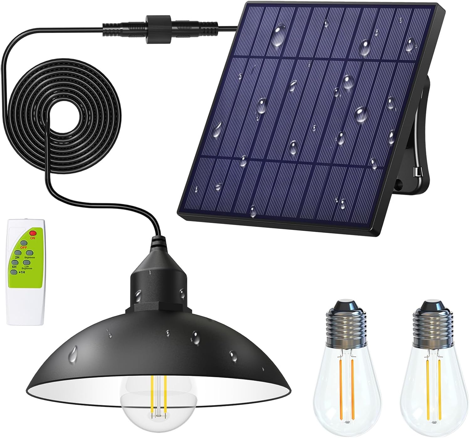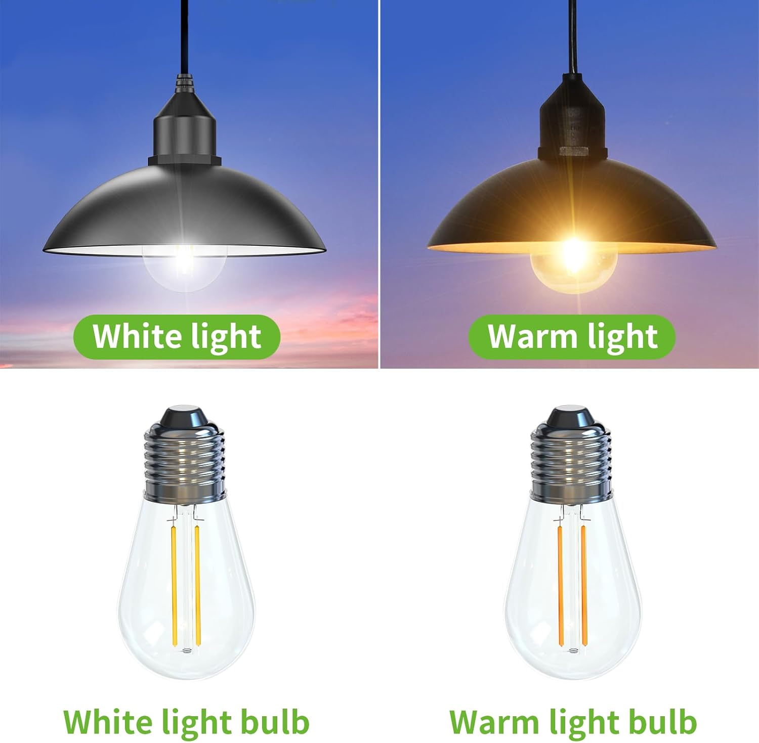 【Solar Pendant Lights】: You can easily use the remote control to implement the lighting method of solar shed light you need: our E26 light bulb offers two color temperatures (bright white light/warm light); 3 brightness (100% 75% and 50%) ; timing (2 hours, 6 hours or other)