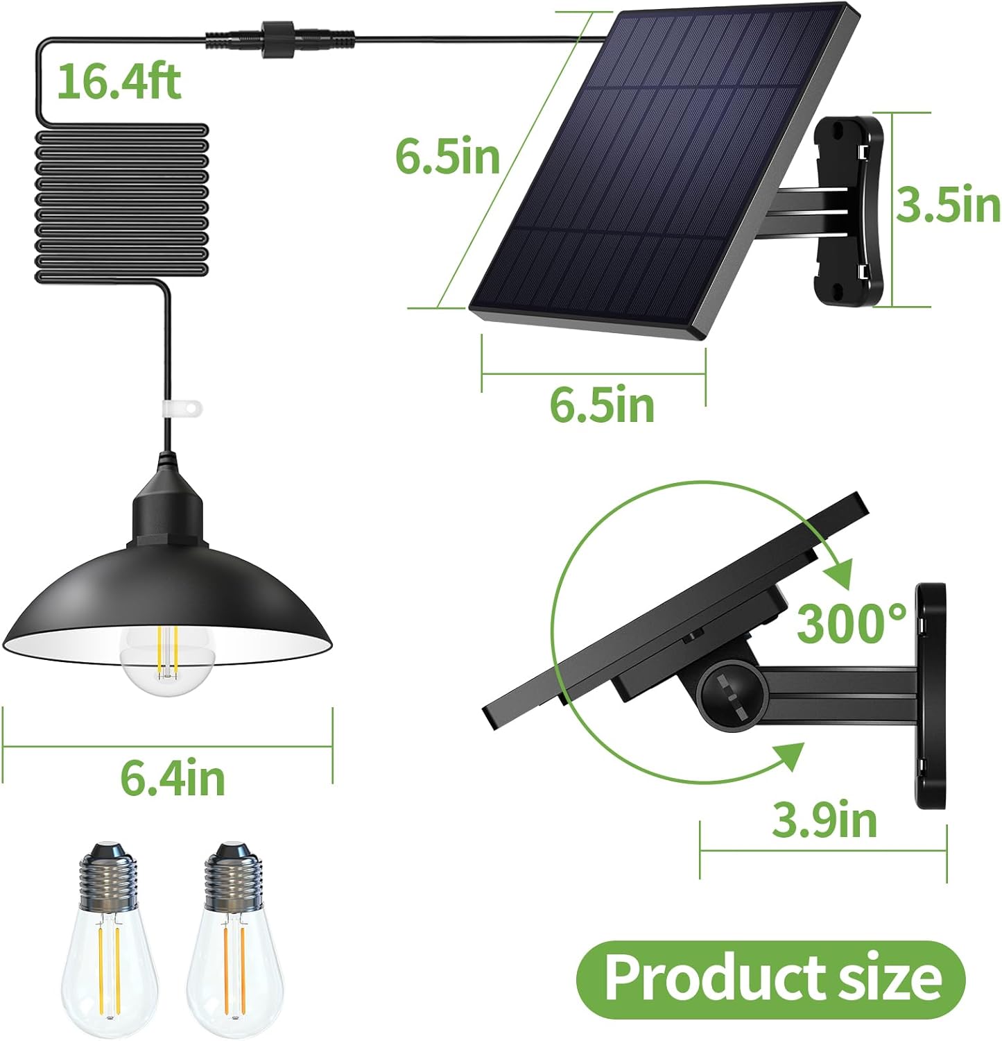 【Solar Pendant Lights with ON OFF Switch】The 300°rotatable solar panel provides wider light coverage. Please turn the solar panel by ON/OFF button, turn on the power storage function of the solar panel to start storing electricity. The 16.4FT waterproof cable is convenient for installation and connection anywhere. It is extremely suitable for patio, hallway, yard and shed, even indoors it will be a lovely pendant light