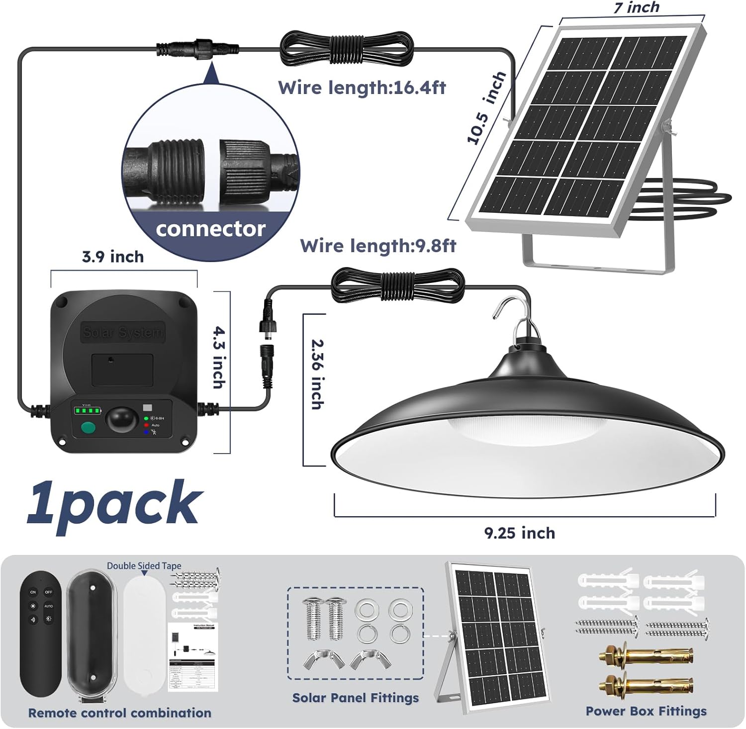 【Easy Installation & Cost-Effective】 No more complicated wiring or high electricity bills! The 16.4 ft + 9.8 ft waterproof cable lets you position the solar panel for optimal sunlight, while the pendant light can be hung anywhere indoors or outdoors. Perfect for sheds, barns, garages, patios, gazebos, and more. It even serves as a reliable emergency light during power outages.
